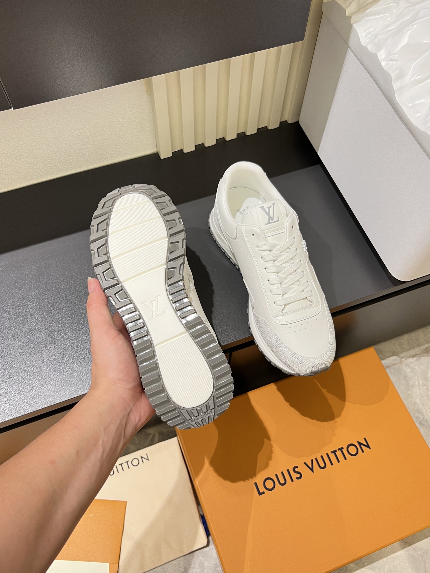 This shoes is AAAAA 1:1 quality (superb). Materials used are identical to the original ones. trademark marks are indistinguishable to the authentic. Photos take by actual shoes, what you receive will be 100% same with our photos.