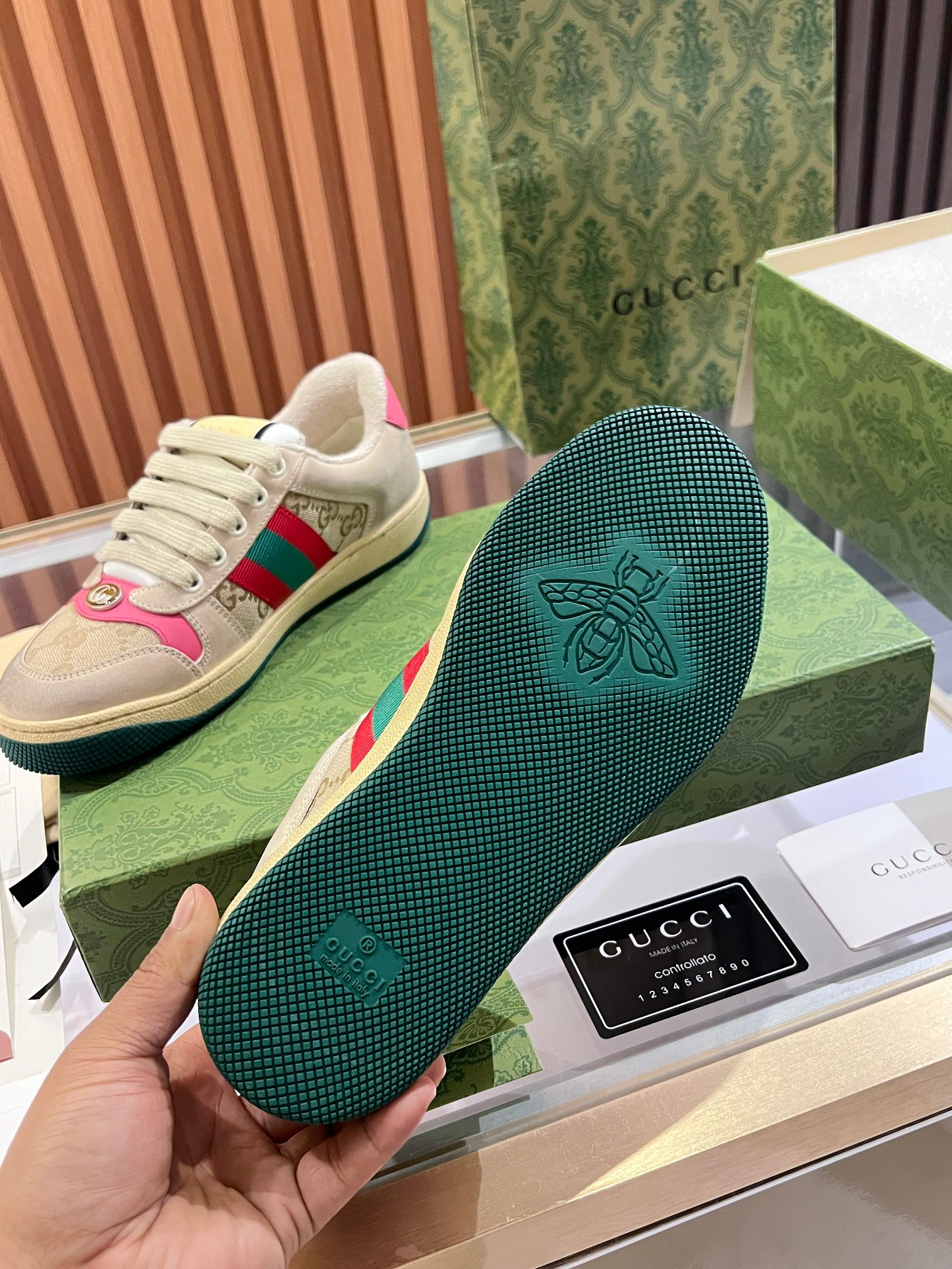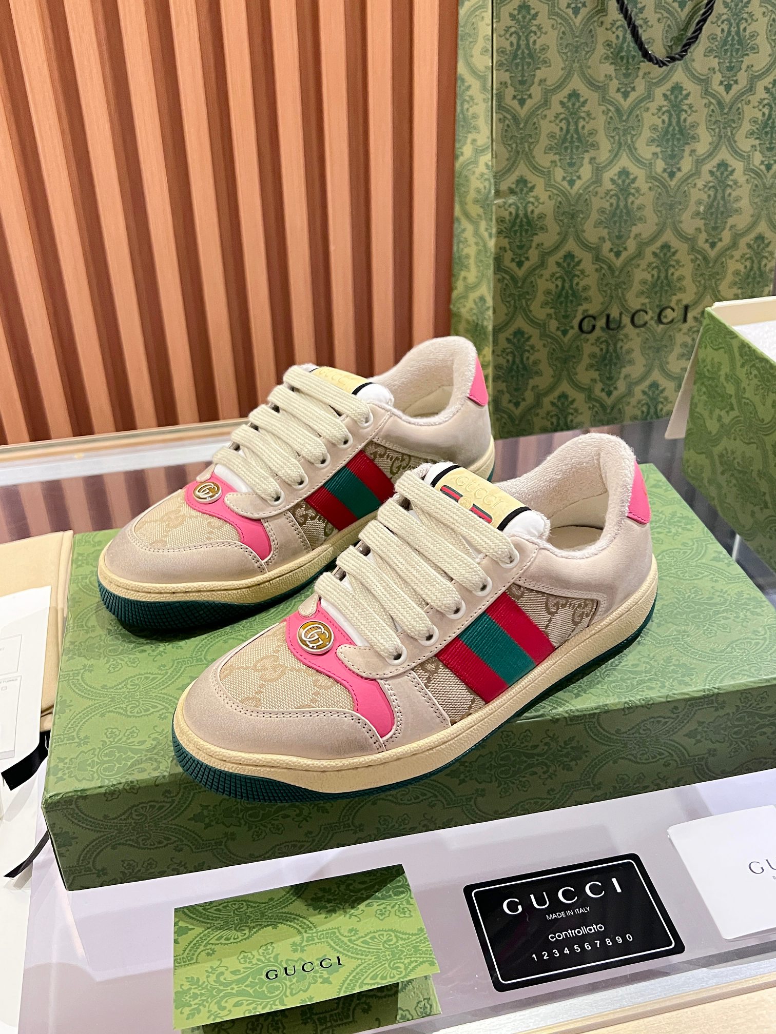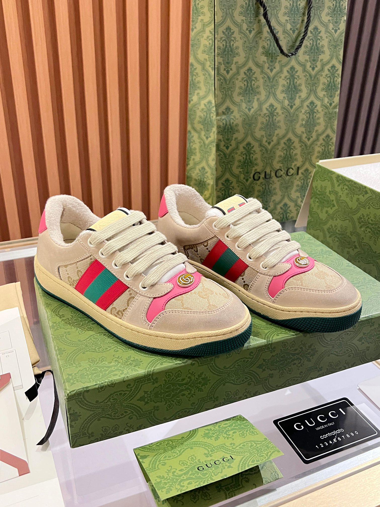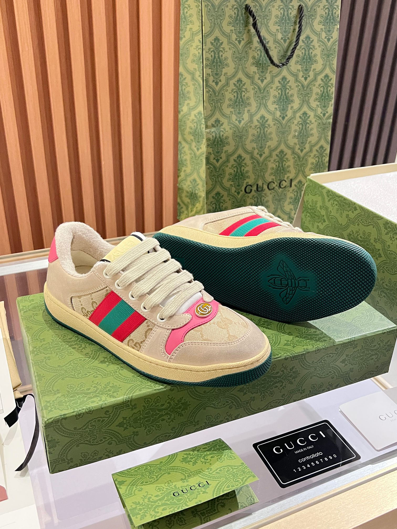 This shoes is AAAAA 1:1 quality (superb). Materials used are identical to the original ones. Gucci trademark marks are indistinguishable to the authentic. Photos take by actual shoes, what you receive will be 100% same with our photos.