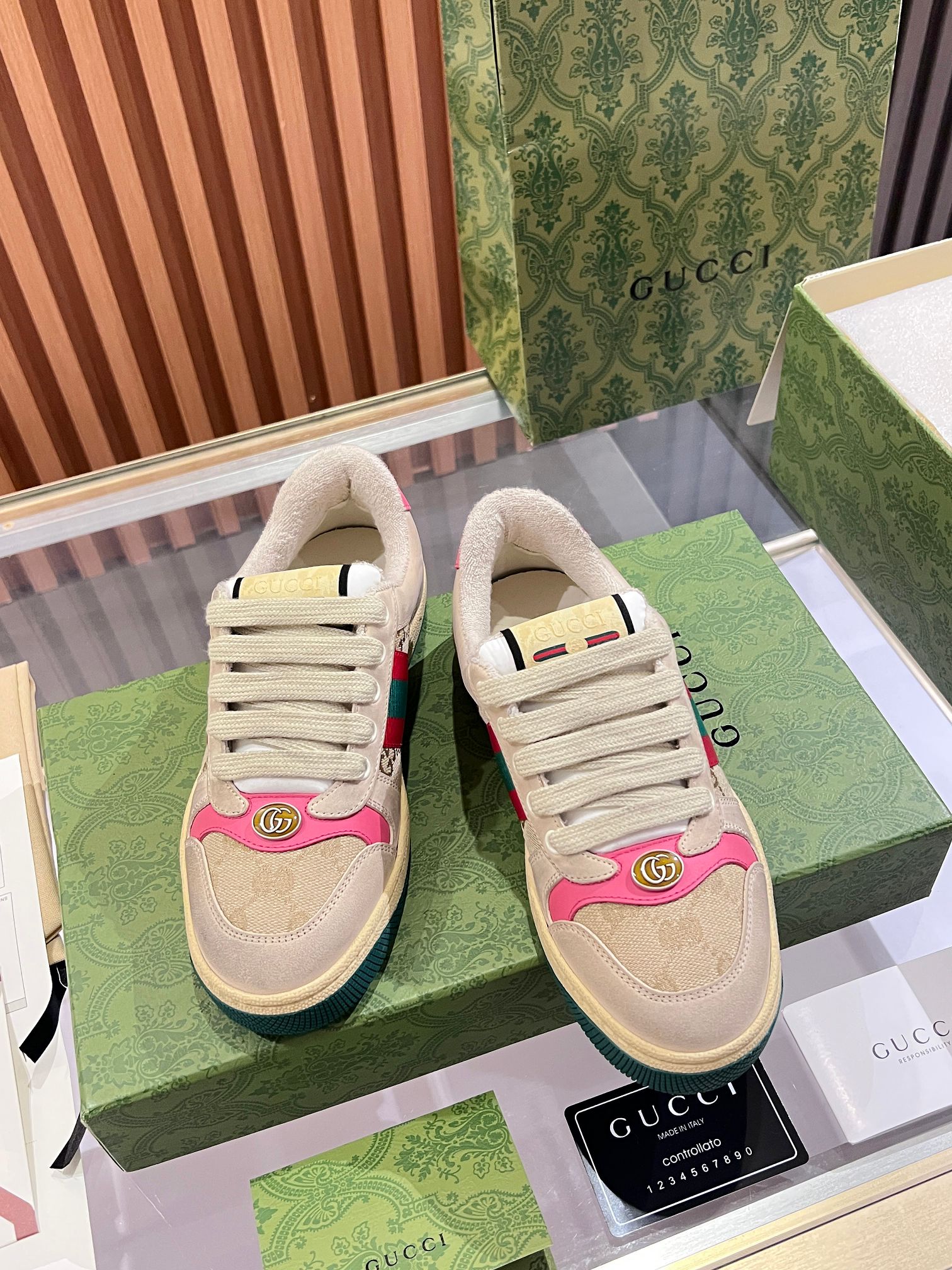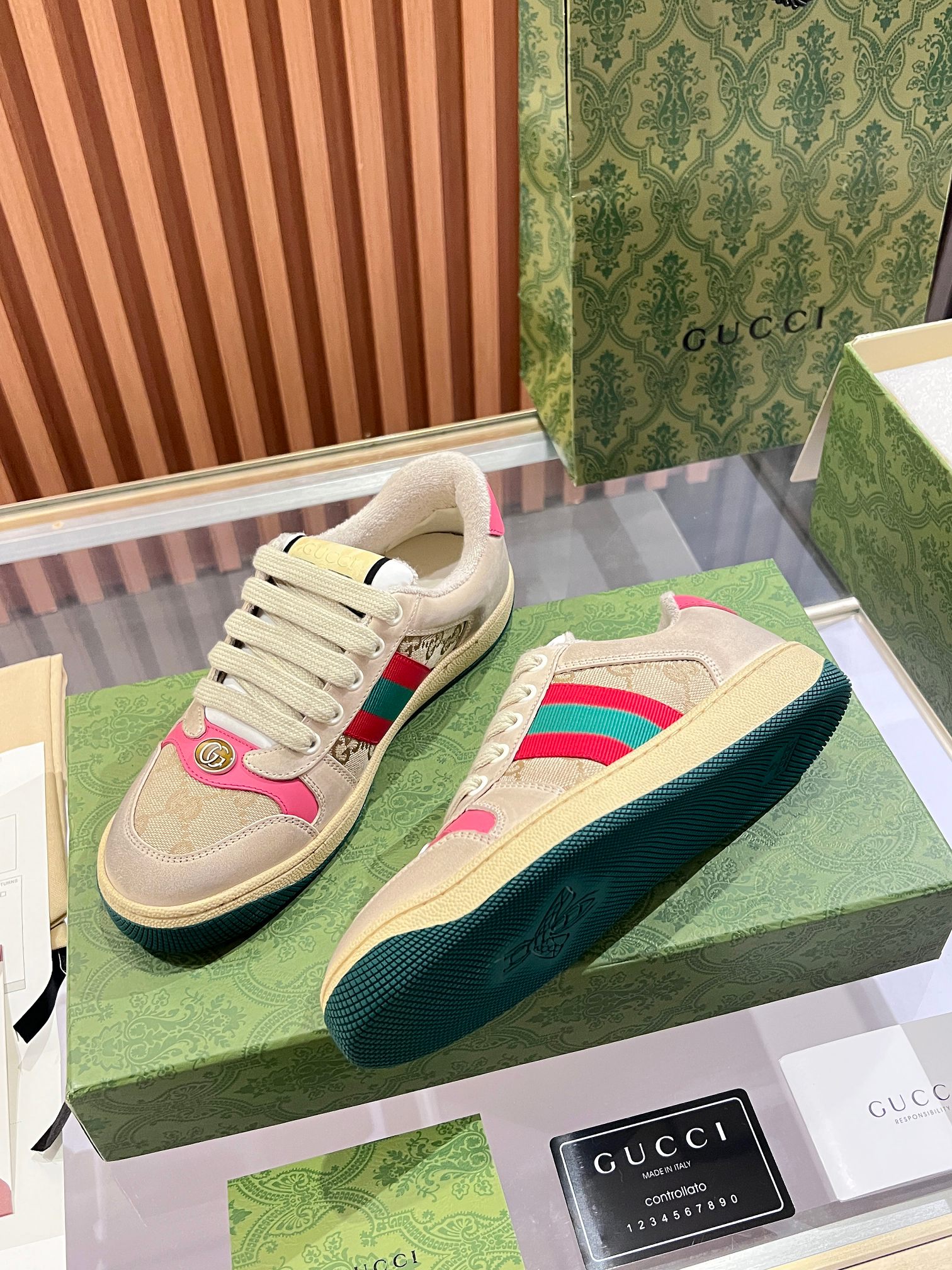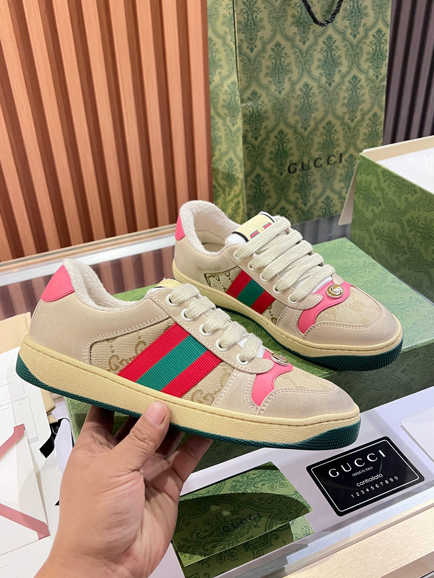 This shoes is AAAAA 1:1 quality (superb). Materials used are identical to the original ones. Gucci trademark marks are indistinguishable to the authentic. Photos take by actual shoes, what you receive will be 100% same with our photos.