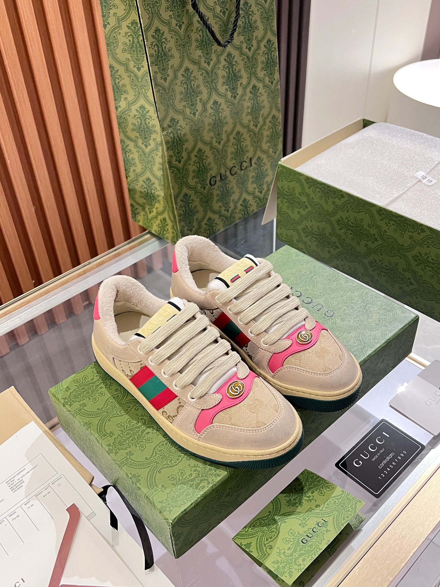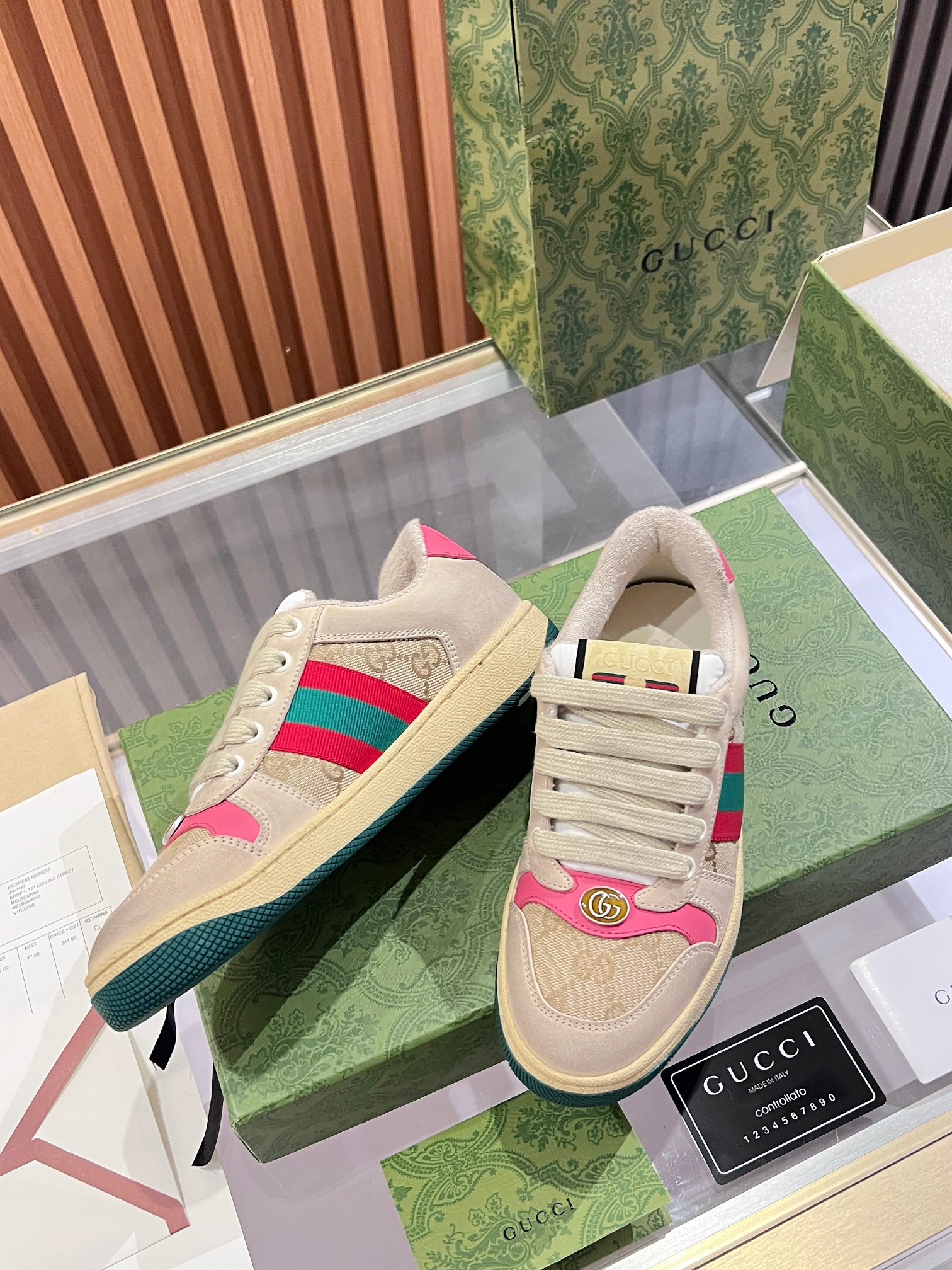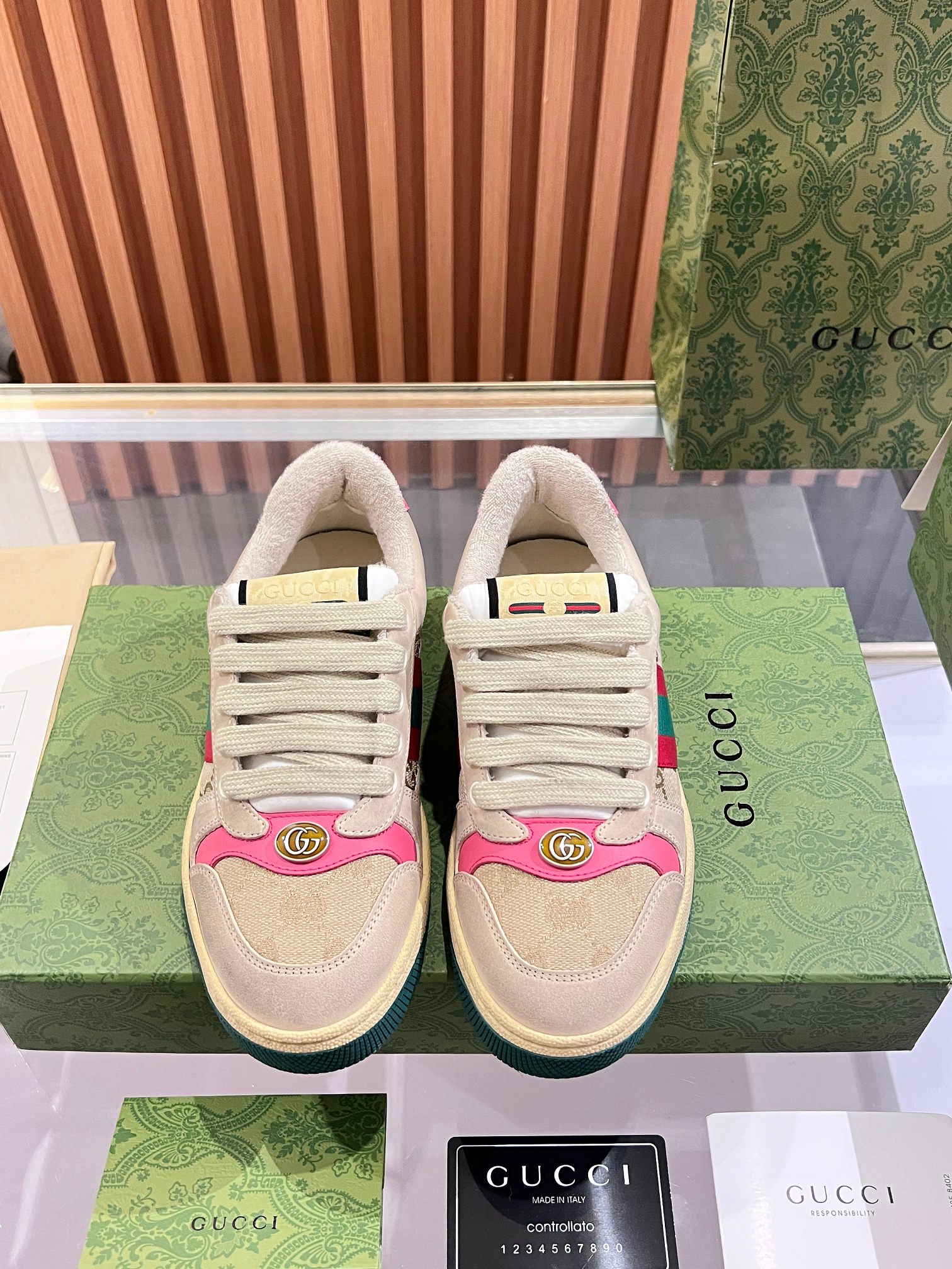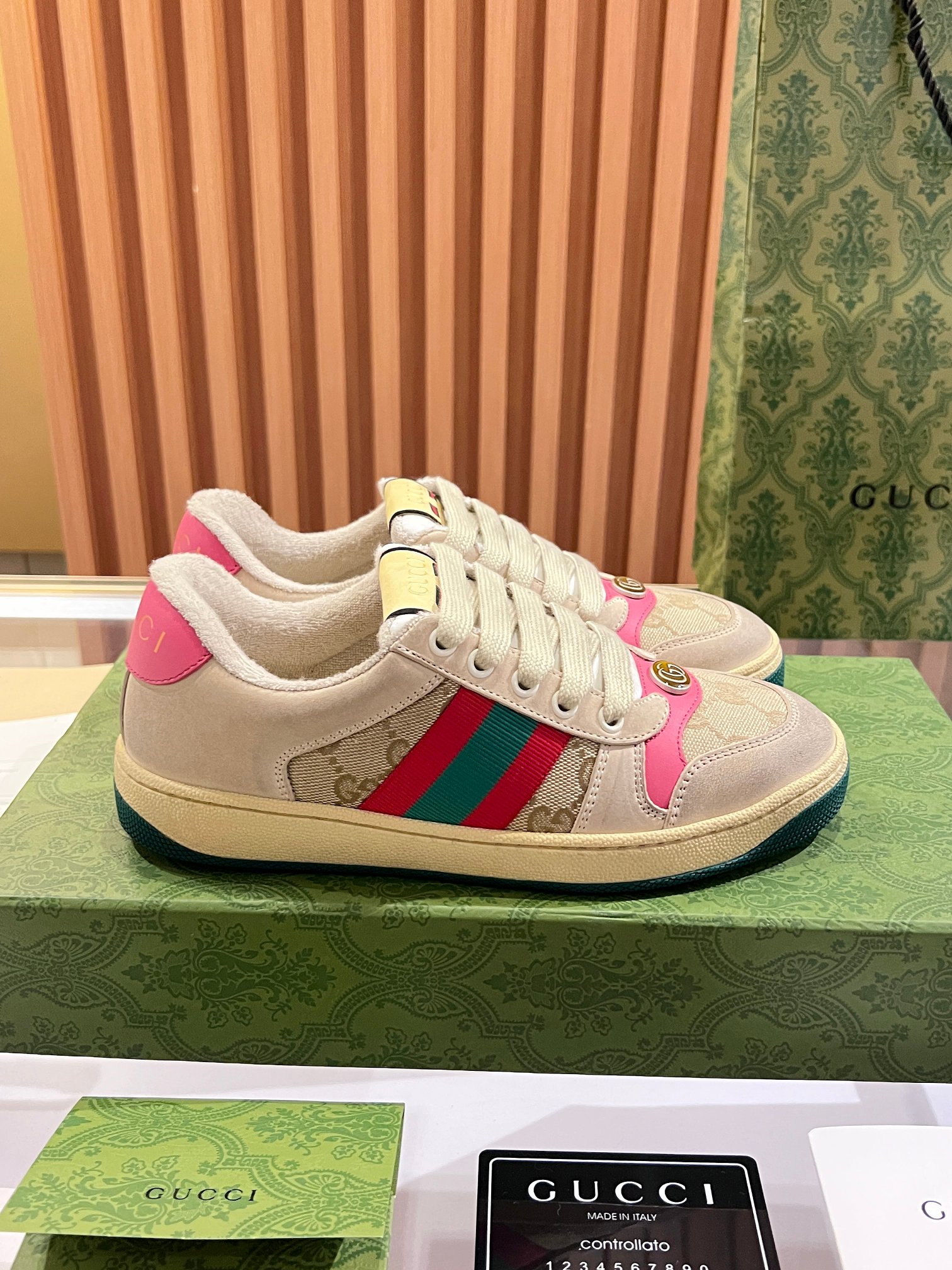 This shoes is AAAAA 1:1 quality (superb). Materials used are identical to the original ones. Gucci trademark marks are indistinguishable to the authentic. Photos take by actual shoes, what you receive will be 100% same with our photos.