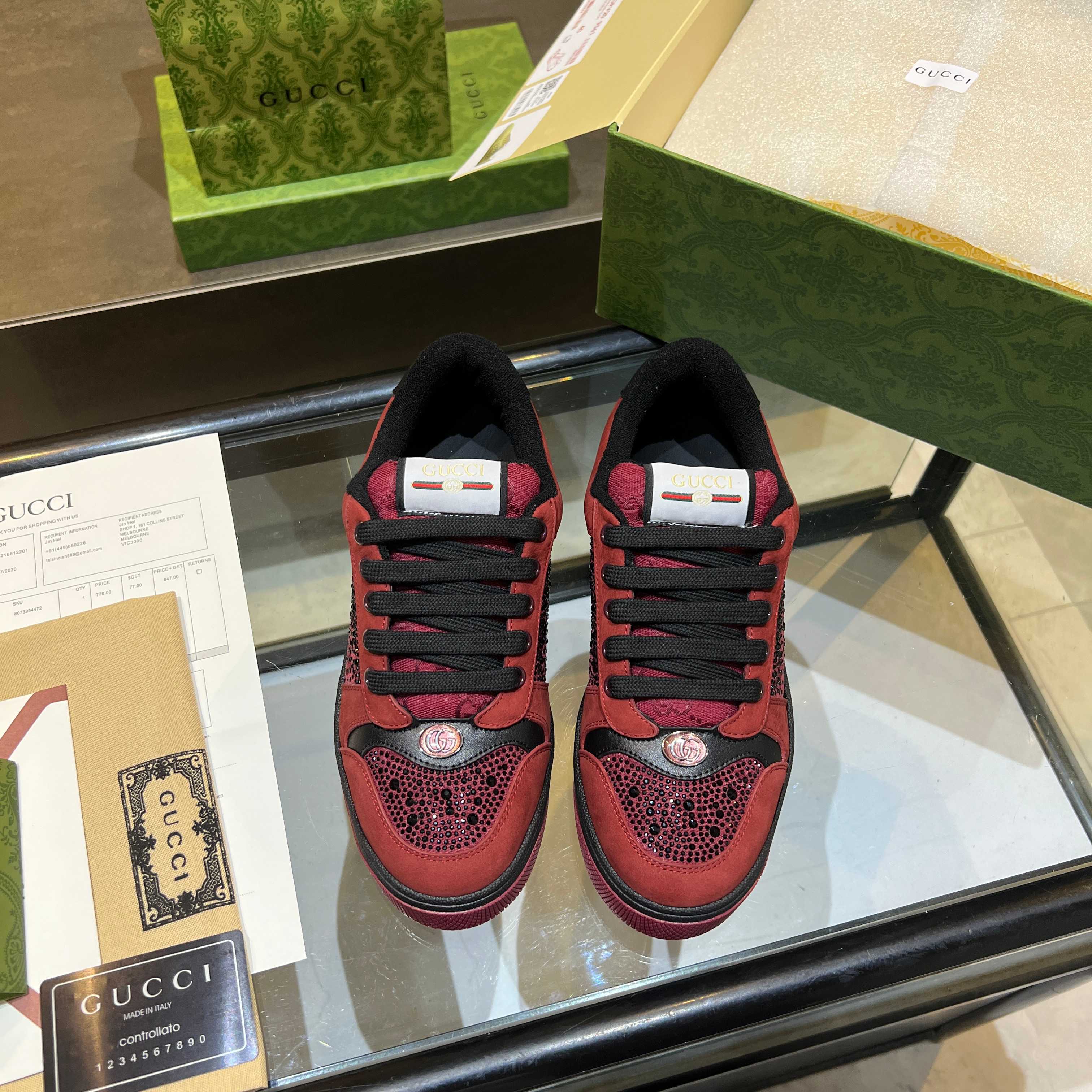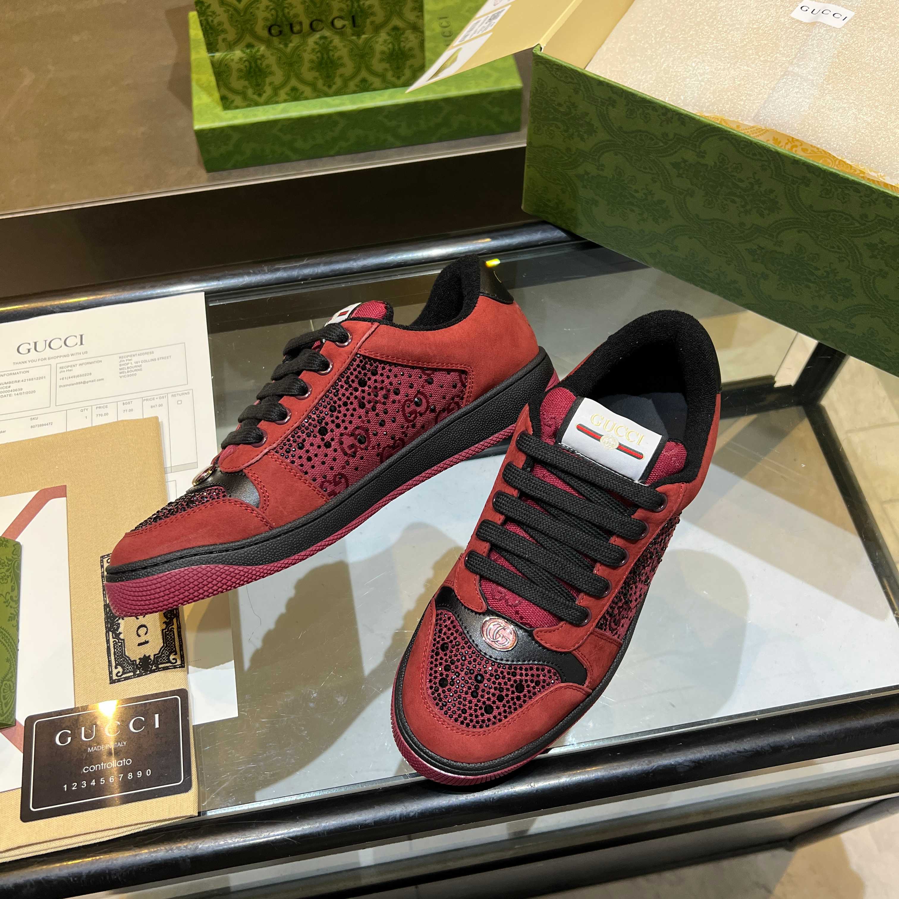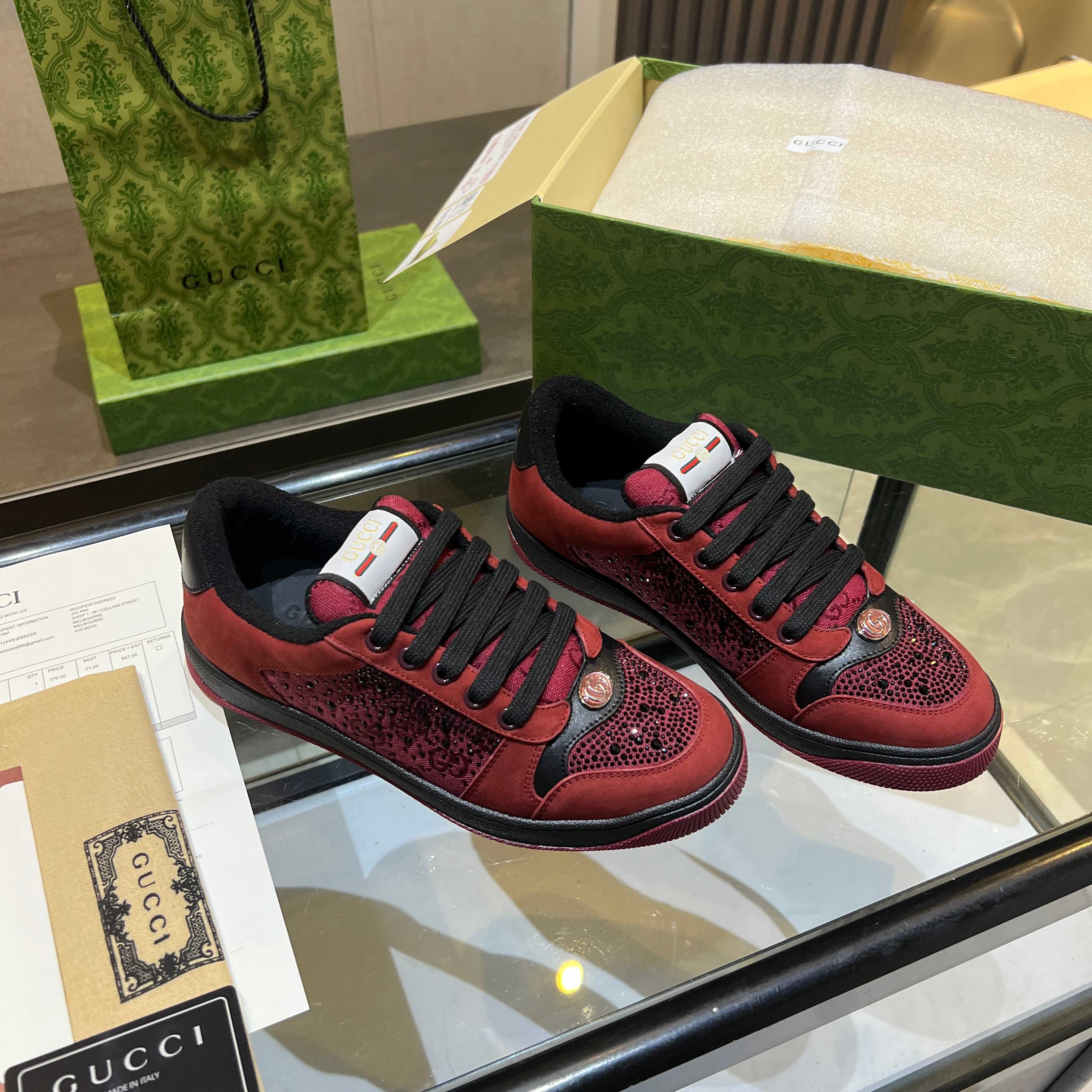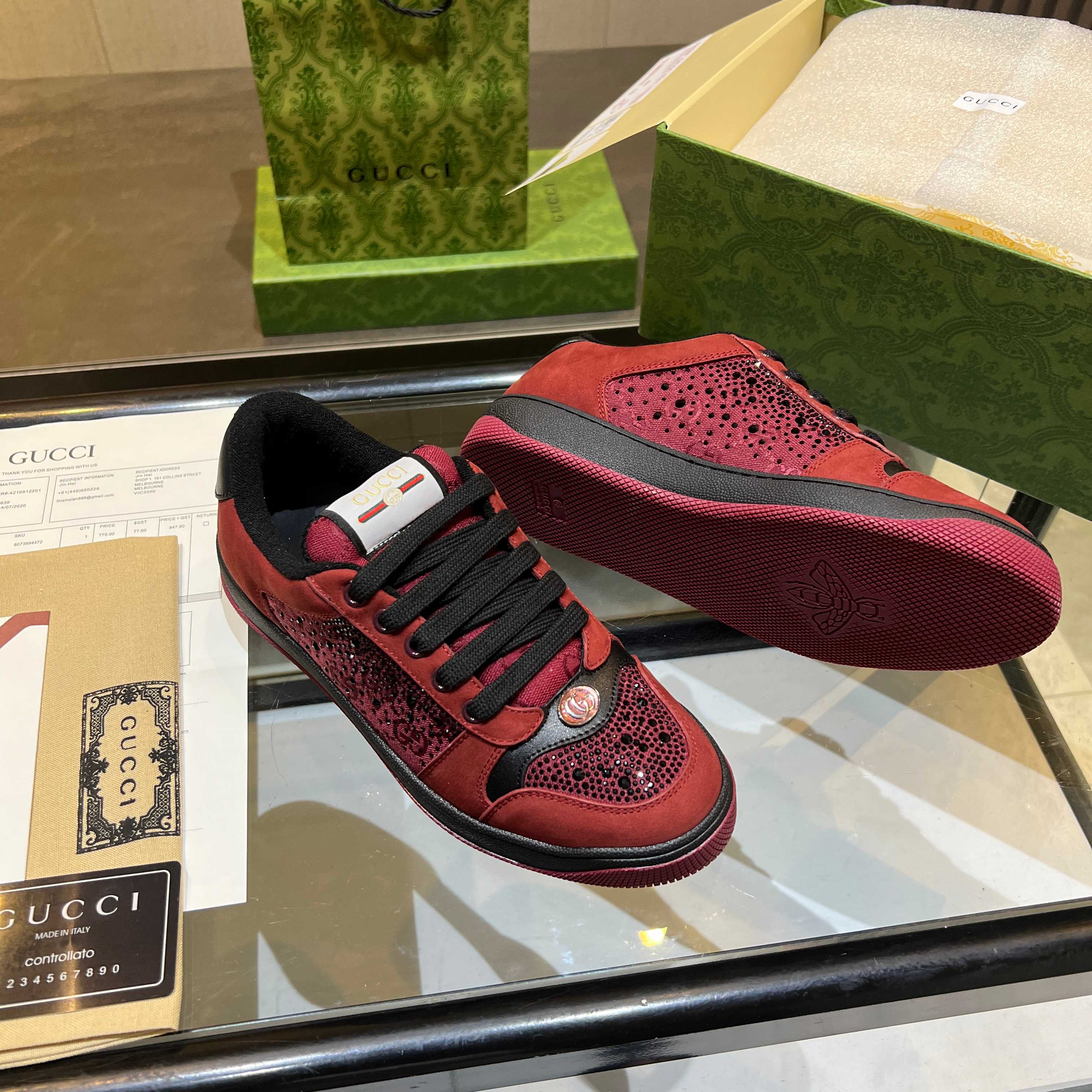 This shoes is AAAAA 1:1 quality (superb). Materials used are identical to the original ones. Gucci trademark marks are indistinguishable to the authentic. Photos take by actual shoes, what you receive will be 100% same with our photos.