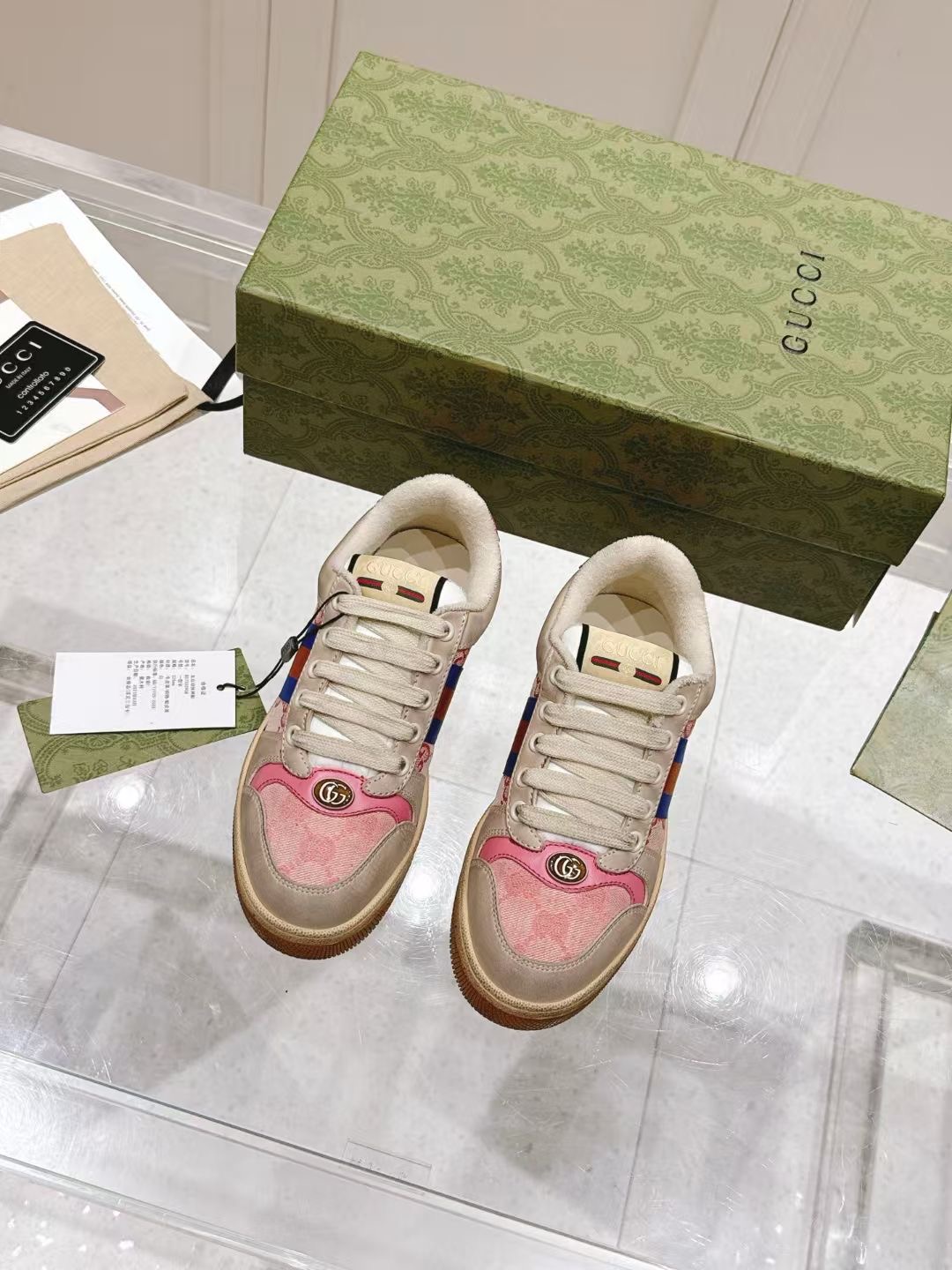This shoes is AAAAA 1:1 quality (superb). Materials used are identical to the original ones. Gucci trademark marks are indistinguishable to the authentic. Photos take by actual shoes, what you receive will be 100% same with our photos.