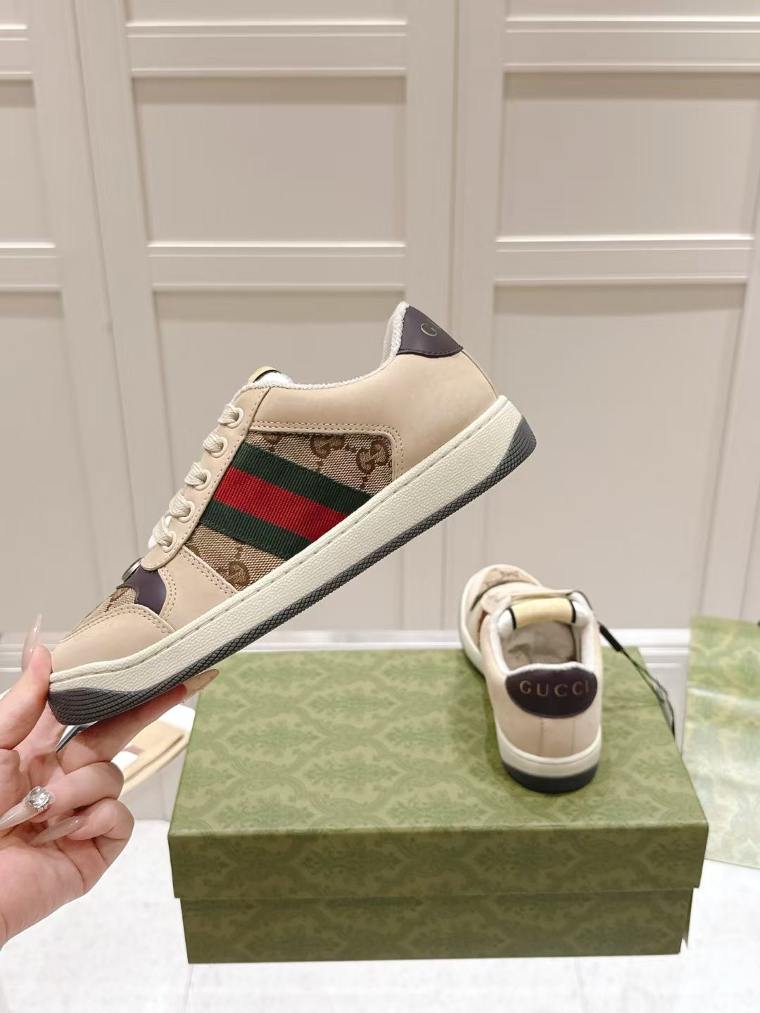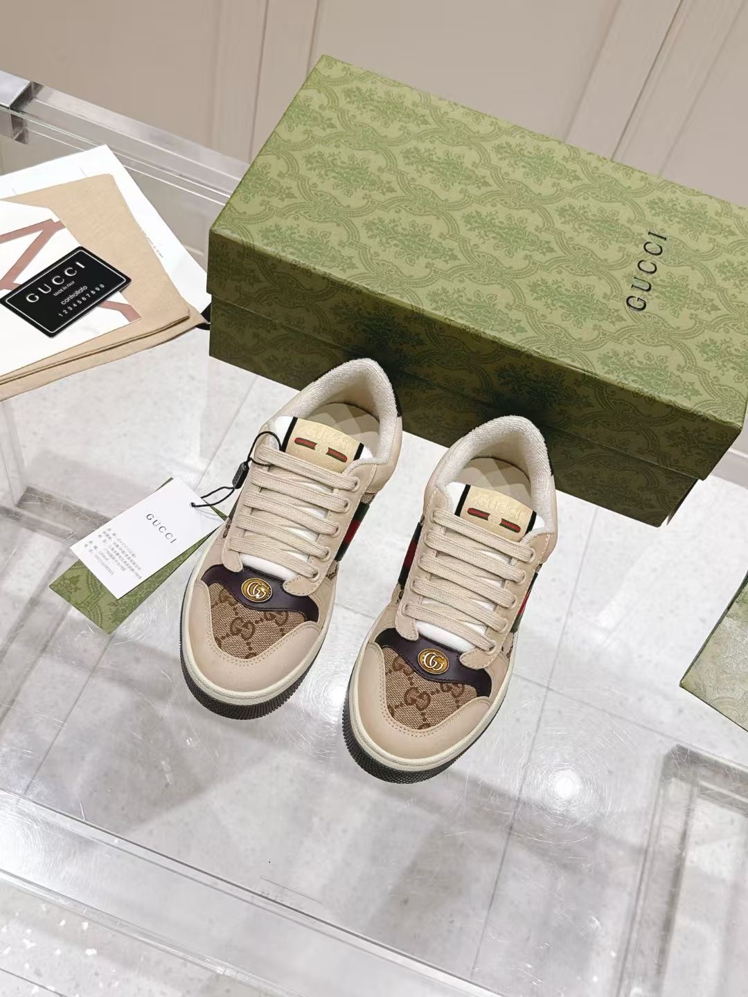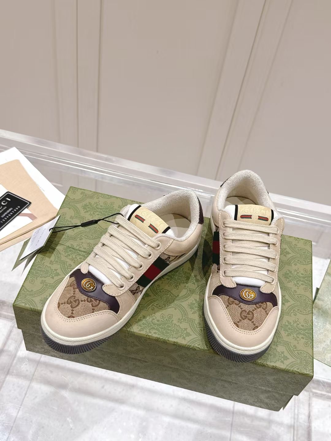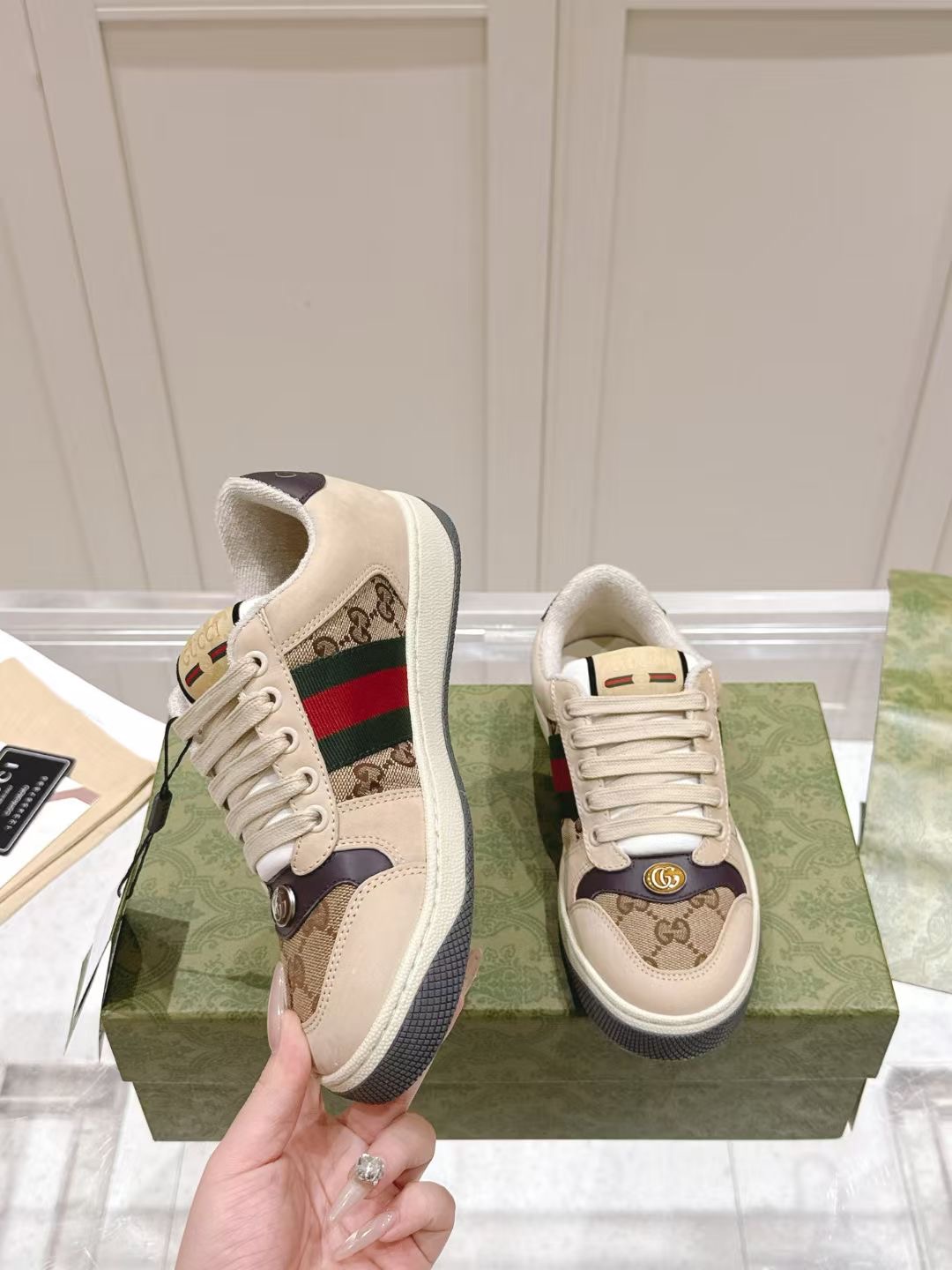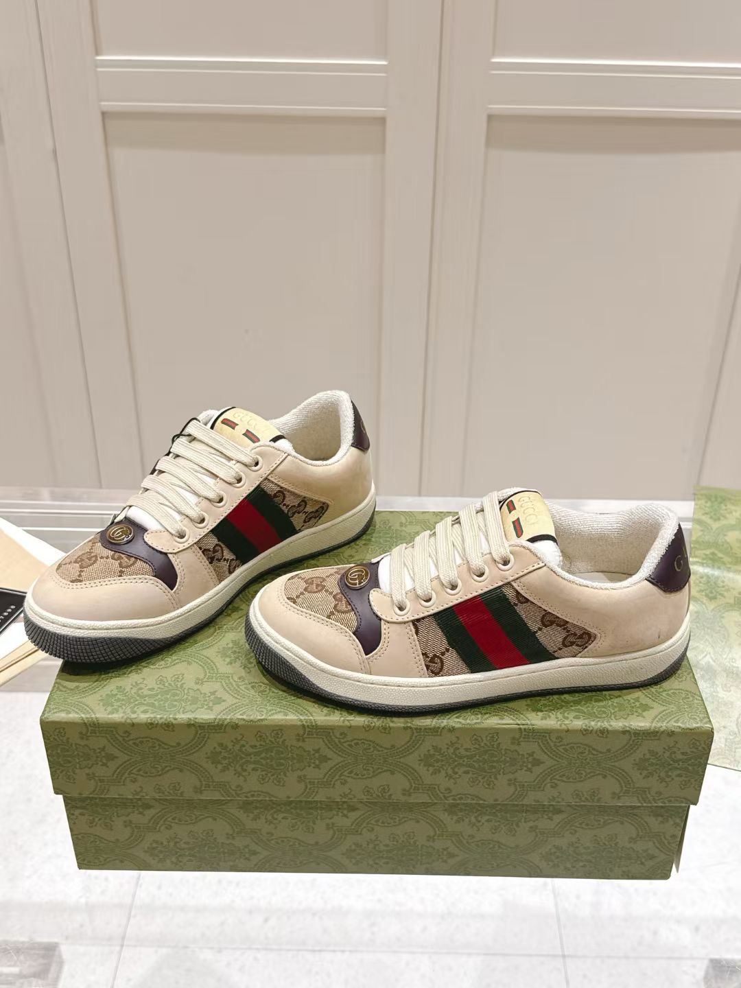 This shoes is AAAAA 1:1 quality (superb). Materials used are identical to the original ones. Gucci trademark marks are indistinguishable to the authentic. Photos take by actual shoes, what you receive will be 100% same with our photos.