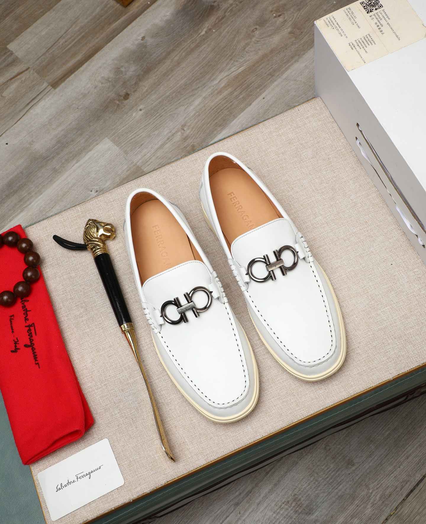This shoes is AAAAA 1:1 quality (superb). Materials used are identical to the original ones. Salvatore Ferragamo trademark marks are indistinguishable to the authentic. Photos take by actual shoes, what you receive will be 100% same with our photos.