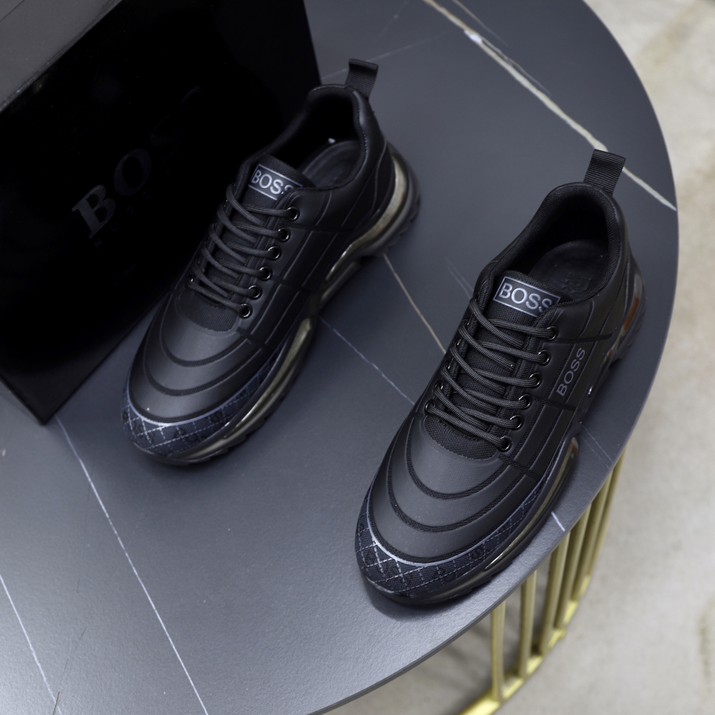 This shoes is AAAAA 1:1 quality (superb). Materials used are identical to the original ones. BOSS trademark marks are indistinguishable to the authentic. Photos take by actual shoes, what you receive will be 100% same with our photos.