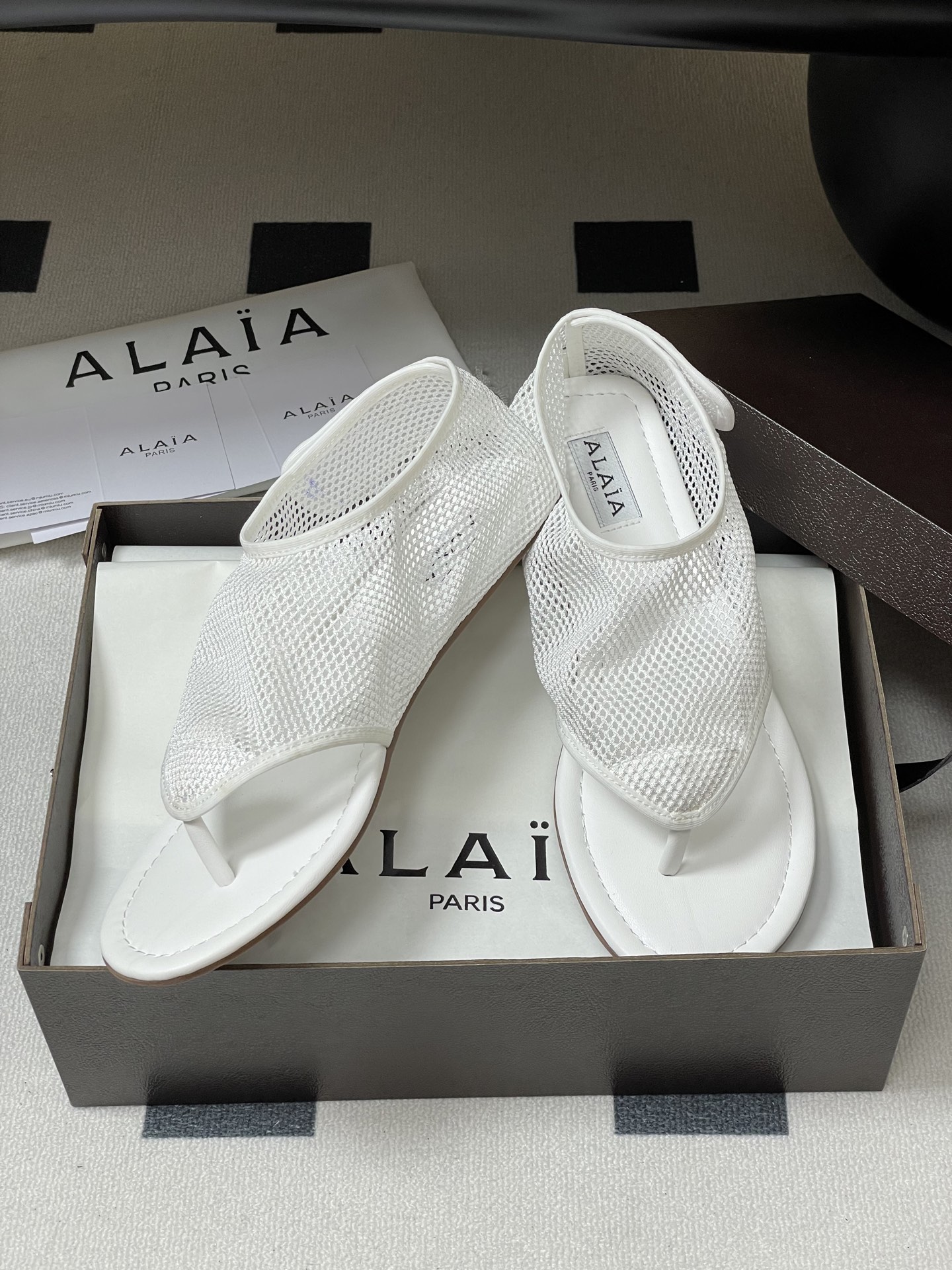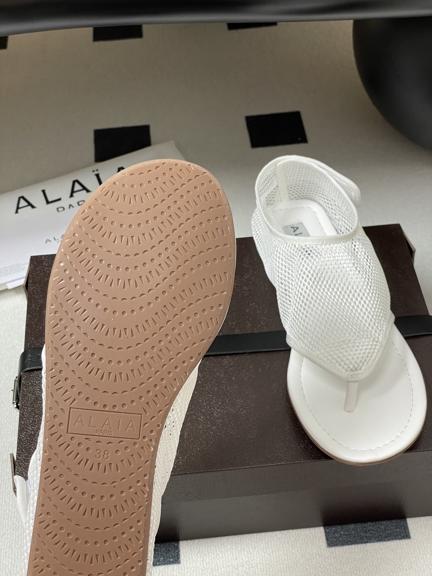 This shoes is AAAAA 1:1 quality (superb). Materials used are identical to the original ones. Alaia trademark marks are indistinguishable to the authentic. Photos take by actual shoes, what you receive will be 100% same with our photos.