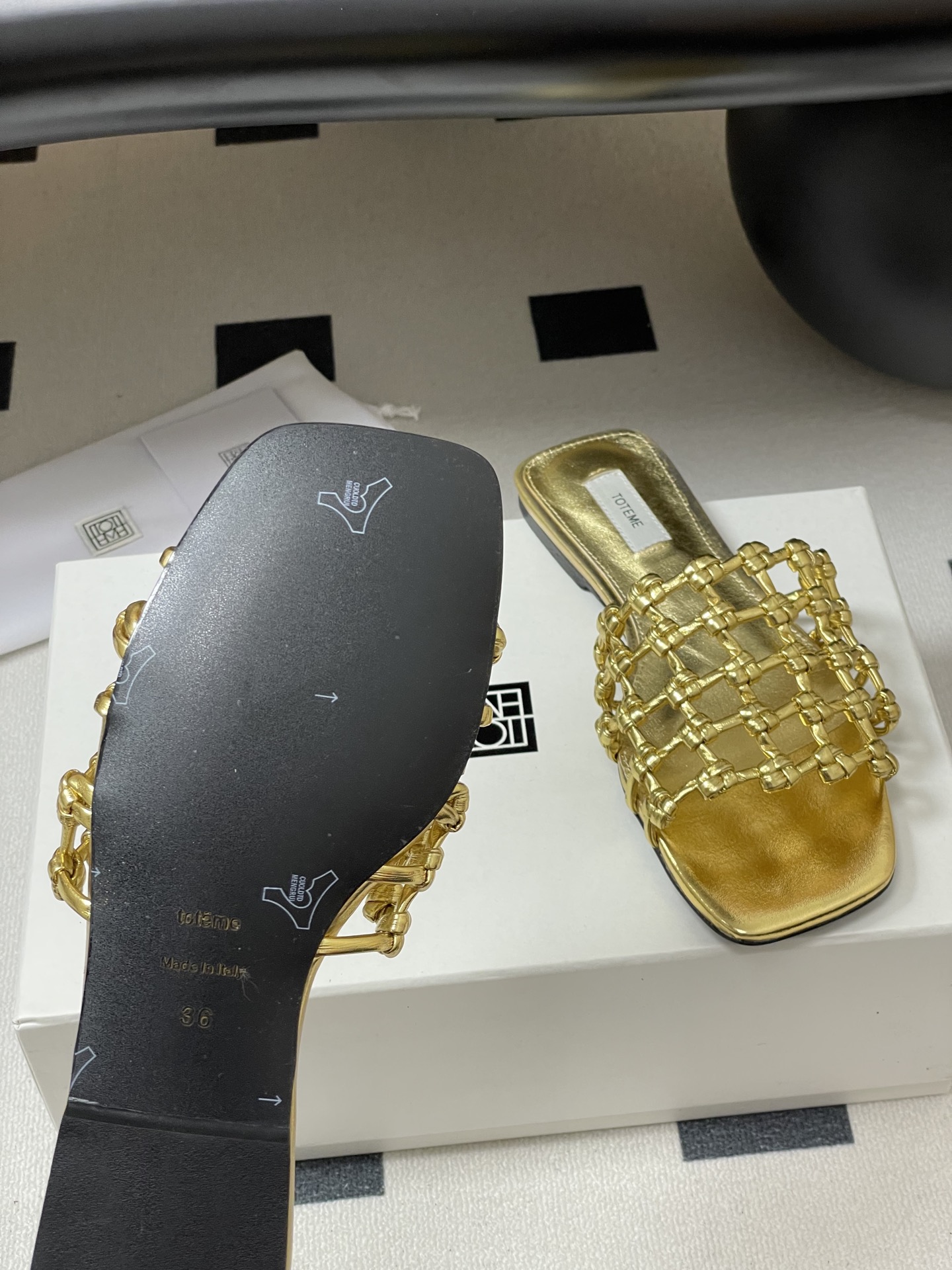 This shoes is AAAAA 1:1 quality (superb). Materials used are identical to the original ones. Toteme trademark marks are indistinguishable to the authentic. Photos take by actual shoes, what you receive will be 100% same with our photos.