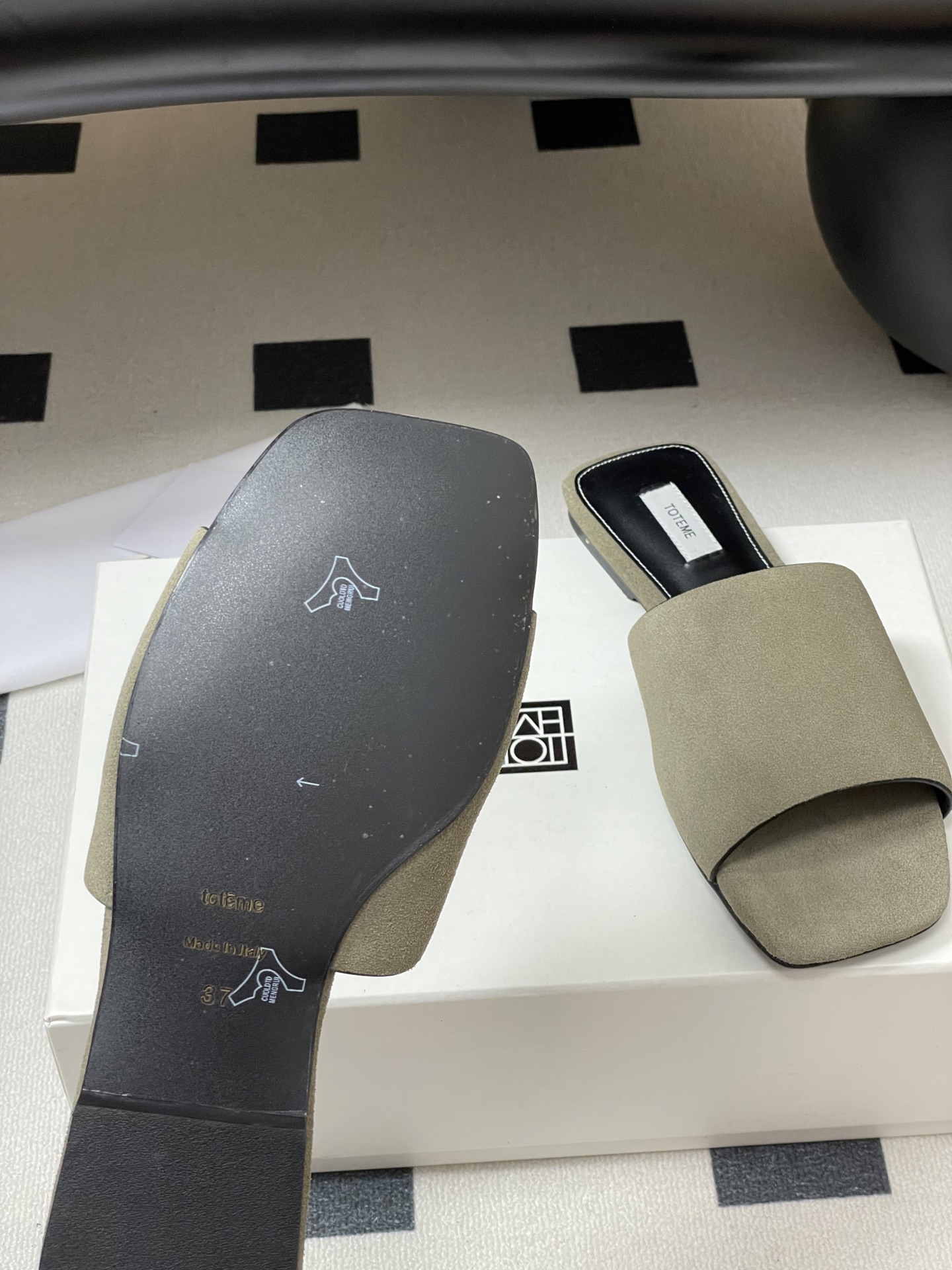 This shoes is AAAAA 1:1 quality (superb). Materials used are identical to the original ones. Toteme trademark marks are indistinguishable to the authentic. Photos take by actual shoes, what you receive will be 100% same with our photos.