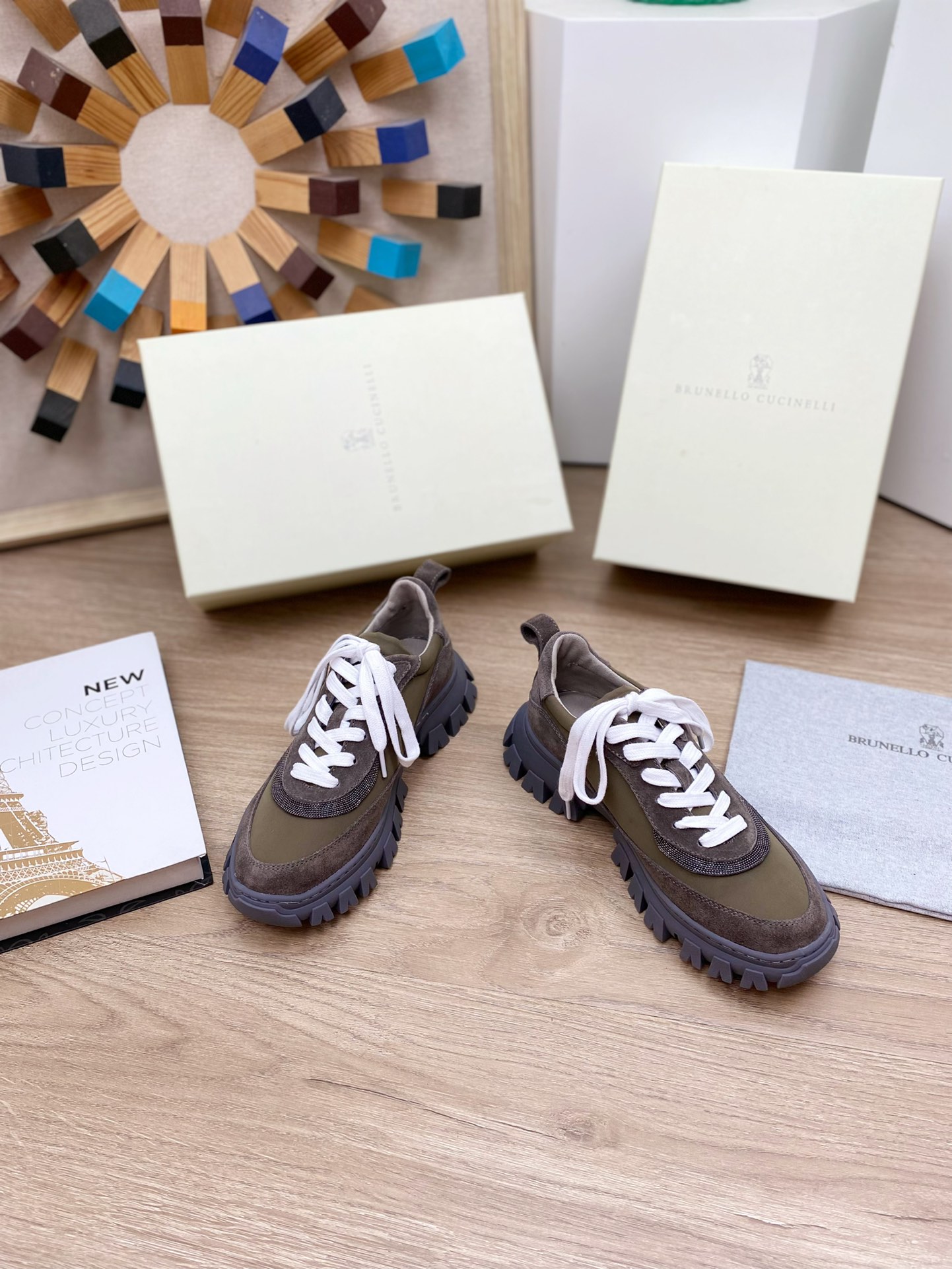 This shoes is AAAAA 1:1 quality (superb). Materials used are identical to the original ones. Brunello Cucinelli trademark marks are indistinguishable to the authentic. Photos take by actual shoes, what you receive will be 100% same with our photos.