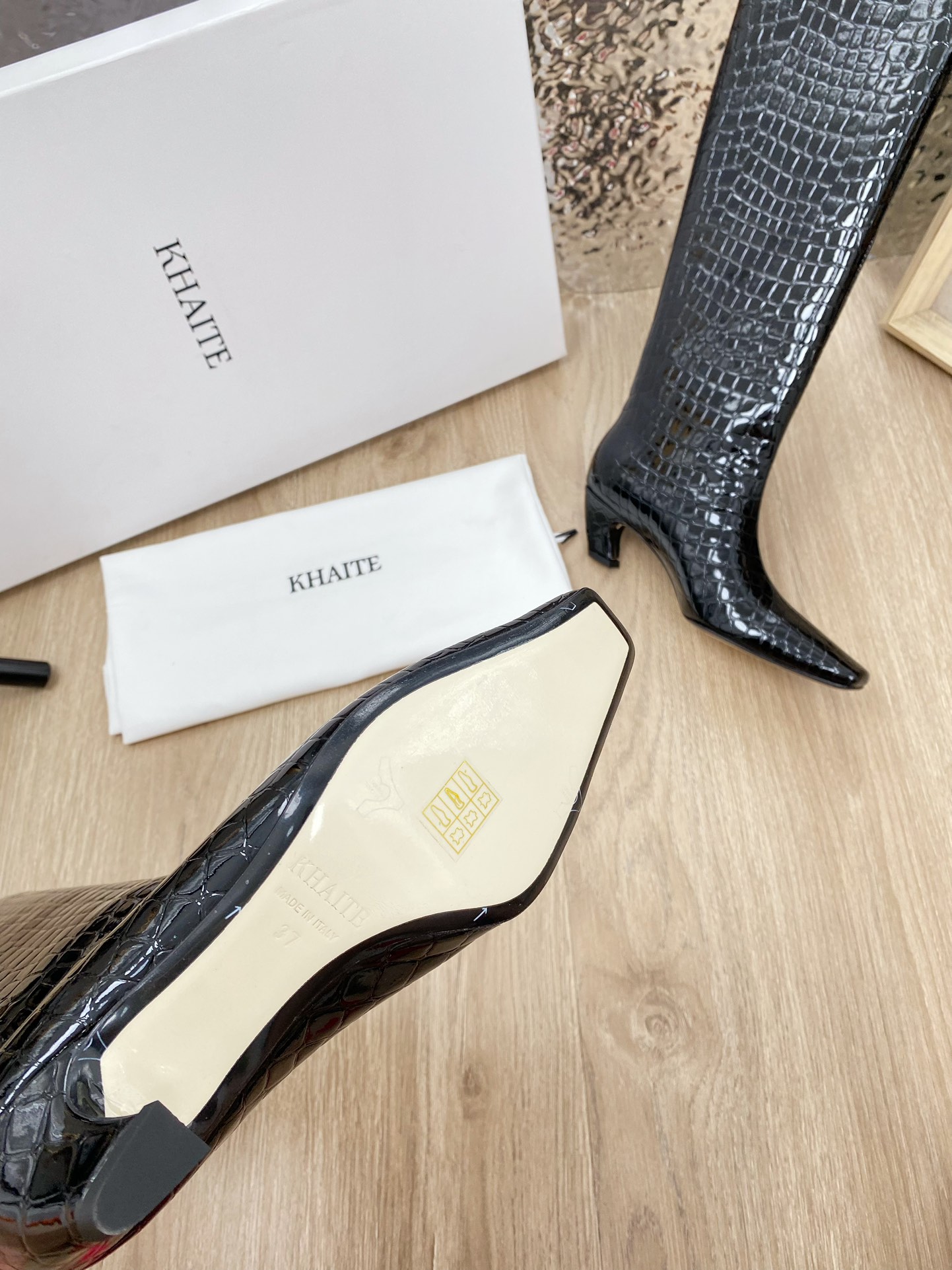 This shoes is AAAAA 1:1 quality (superb). Materials used are identical to the original ones. Khaite trademark marks are indistinguishable to the authentic. Photos take by actual shoes, what you receive will be 100% same with our photos.