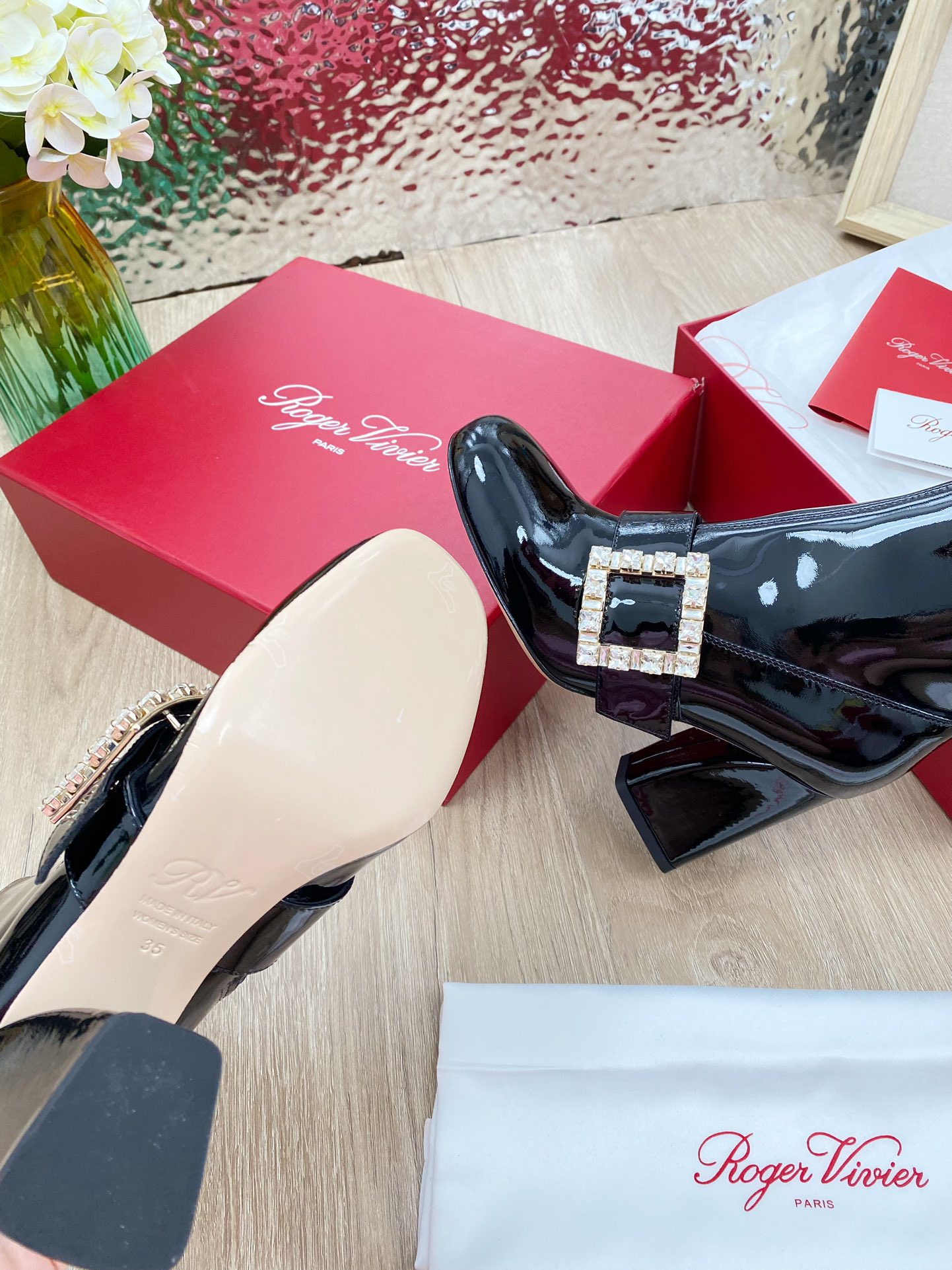 This shoes is AAAAA 1:1 quality (superb). Materials used are identical to the original ones. Roger Vivier trademark marks are indistinguishable to the authentic. Photos take by actual shoes, what you receive will be 100% same with our photos.