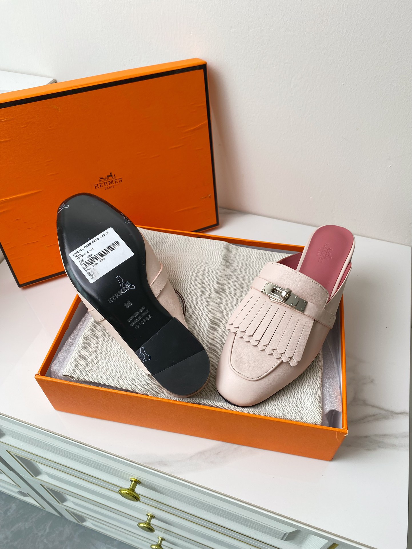 NO:3217210. The shoes is from Hermes designer.