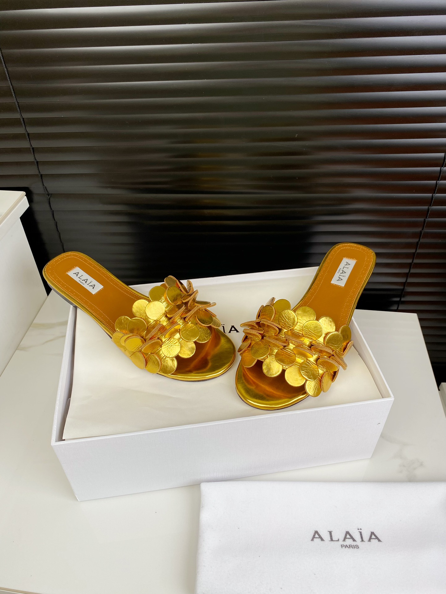This shoes is AAAAA 1:1 quality (superb). Materials used are identical to the original ones. Alaia trademark marks are indistinguishable to the authentic. Photos take by actual shoes, what you receive will be 100% same with our photos.