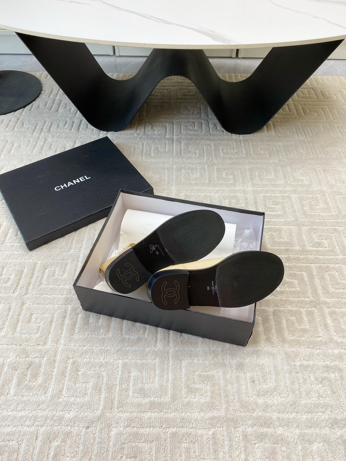 NO:3218818. The shoes is from Chanel designer.