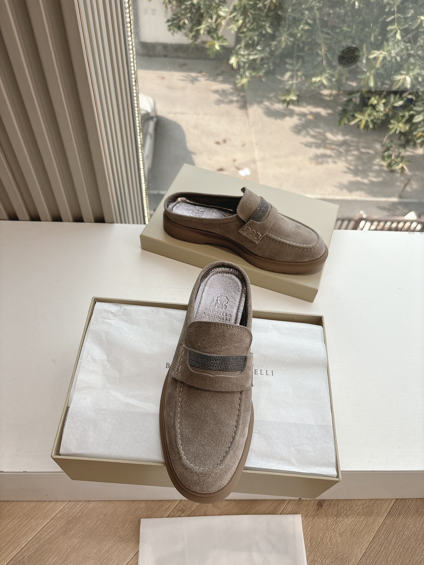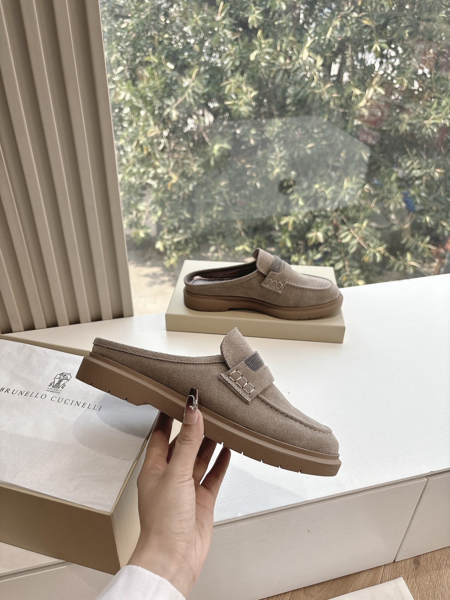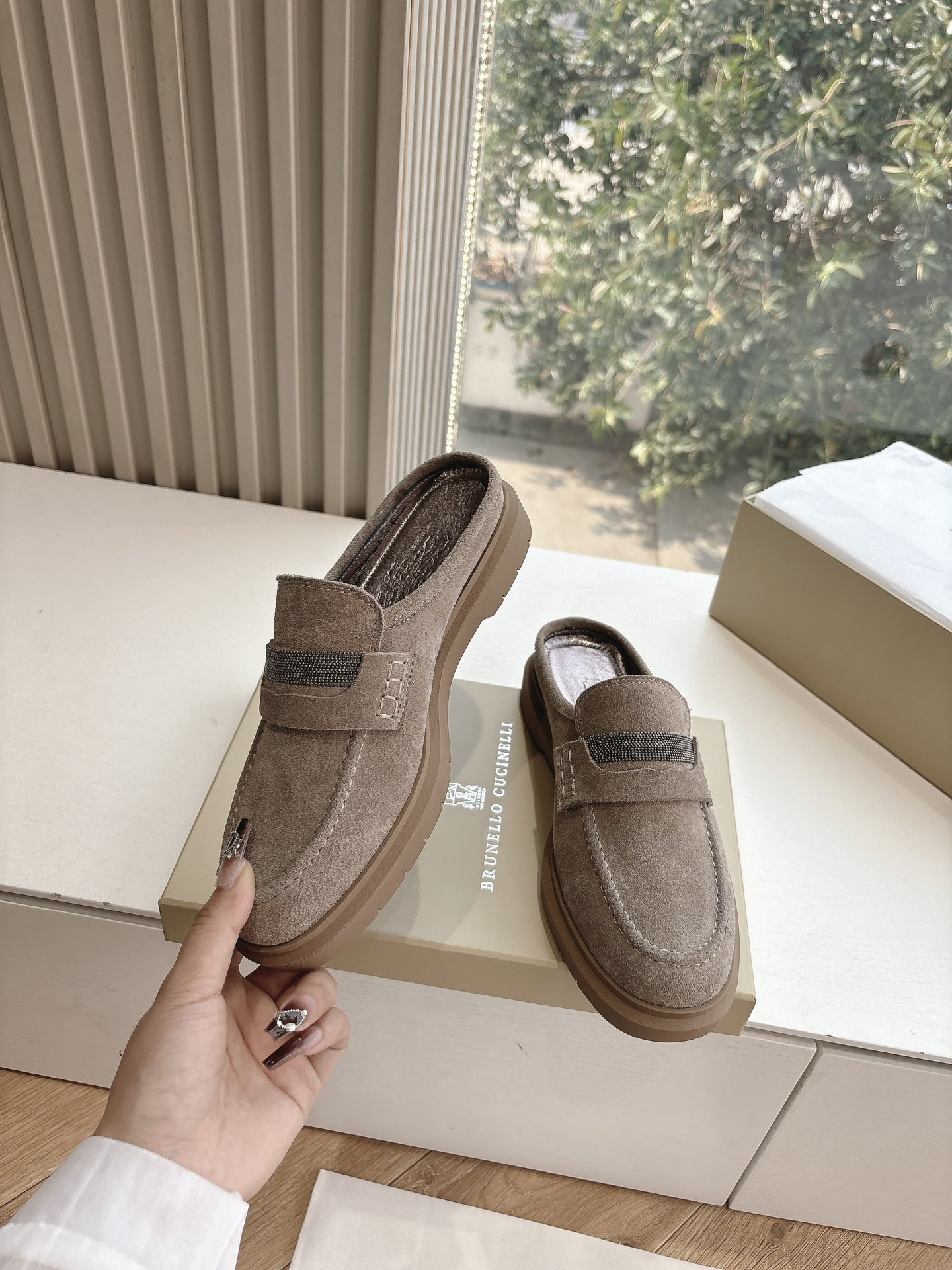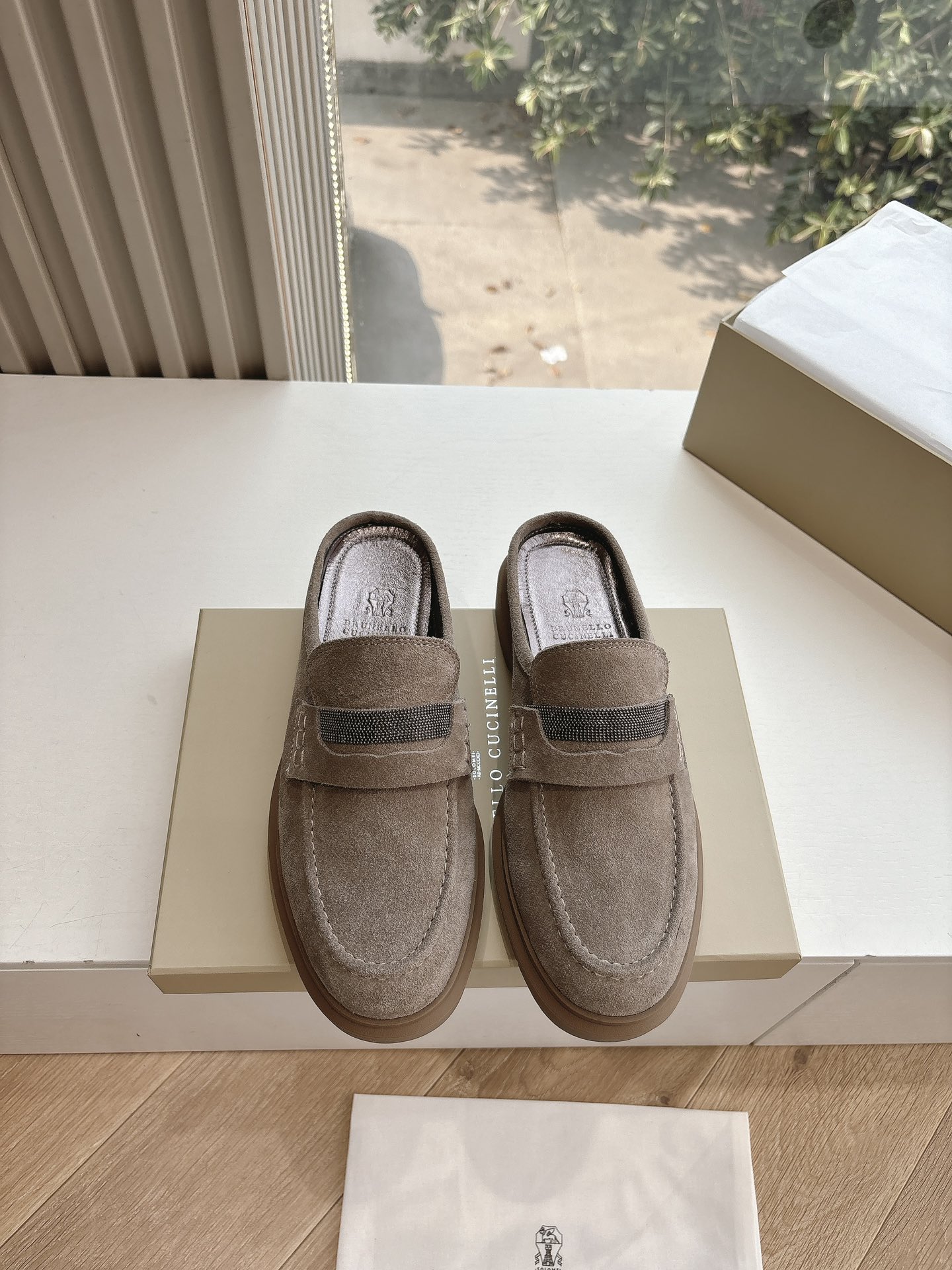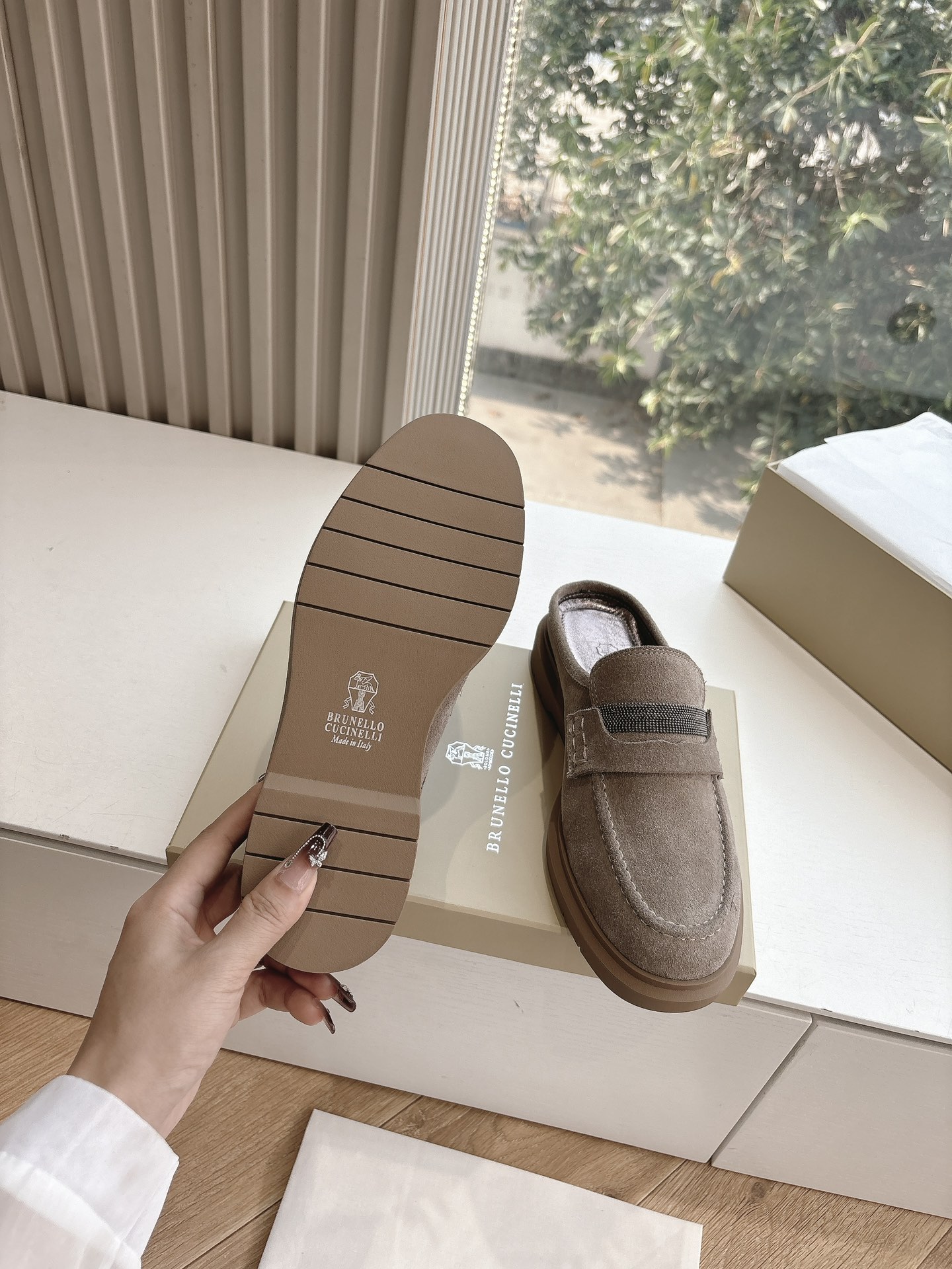 This shoes is AAAAA 1:1 quality (superb). Materials used are identical to the original ones. Brunello Cucinelli trademark marks are indistinguishable to the authentic. Photos take by actual shoes, what you receive will be 100% same with our photos.