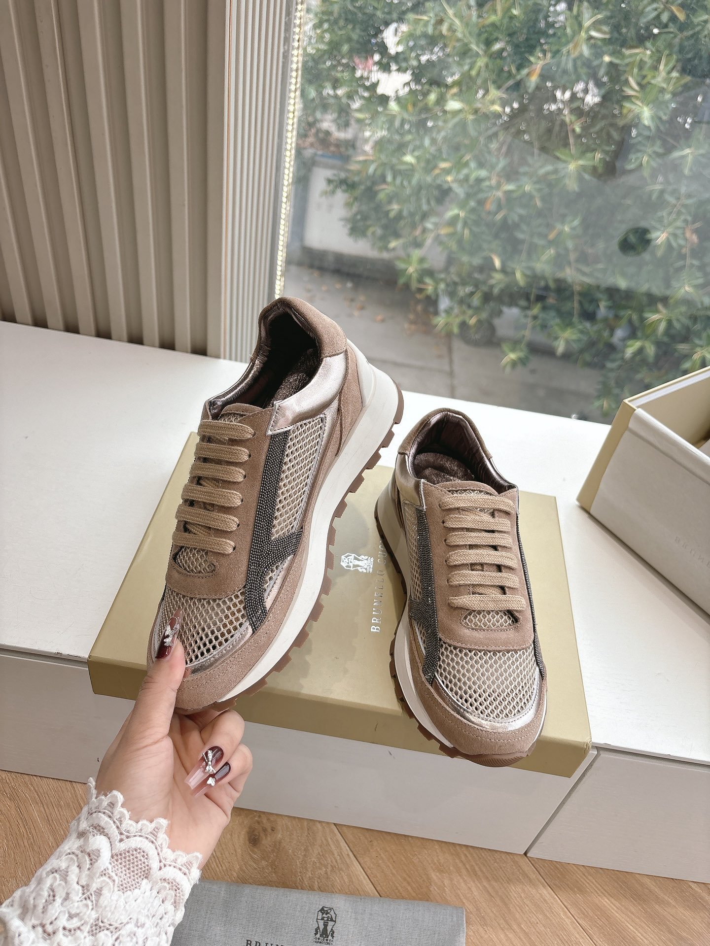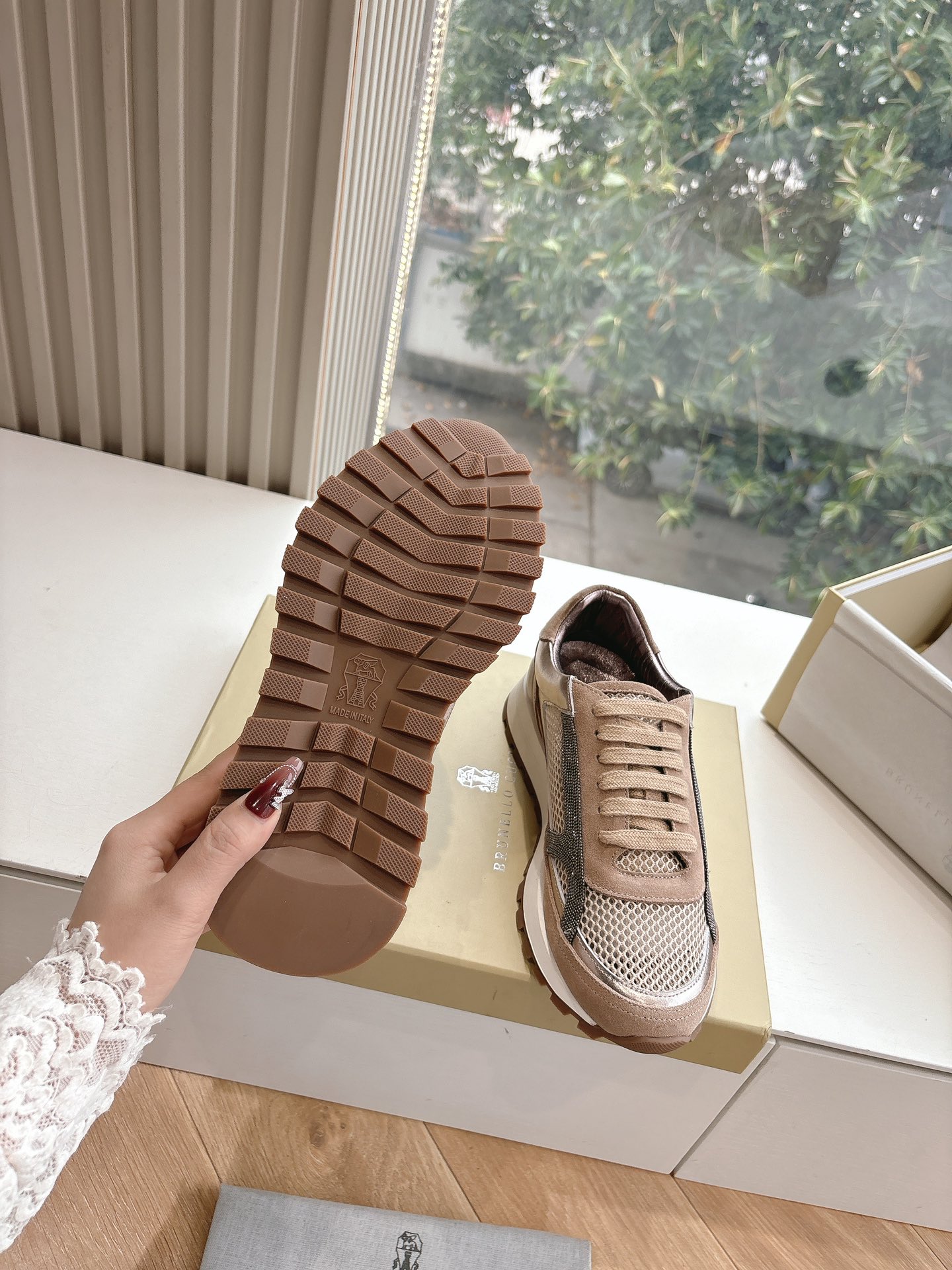 This shoes is AAAAA 1:1 quality (superb). Materials used are identical to the original ones. Brunello Cucinelli trademark marks are indistinguishable to the authentic. Photos take by actual shoes, what you receive will be 100% same with our photos.
