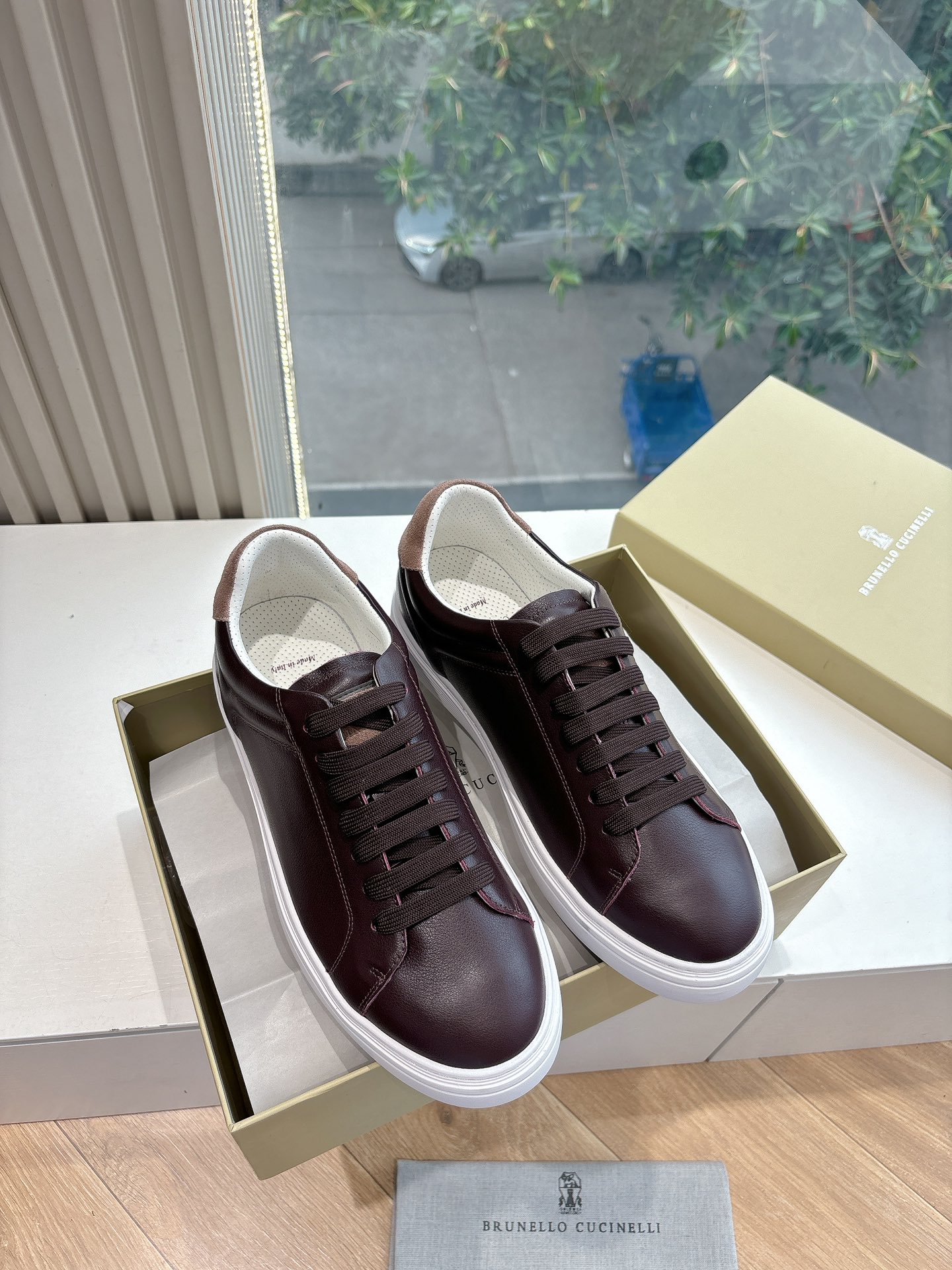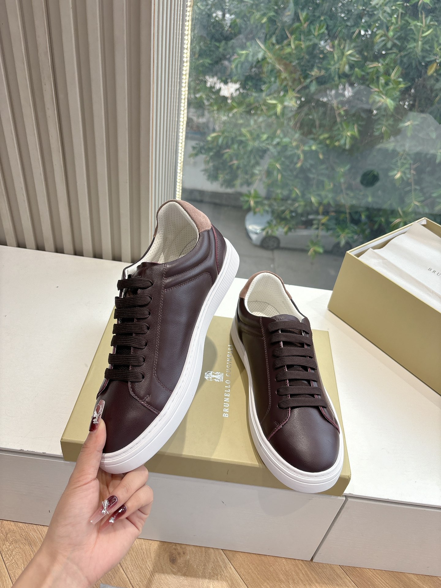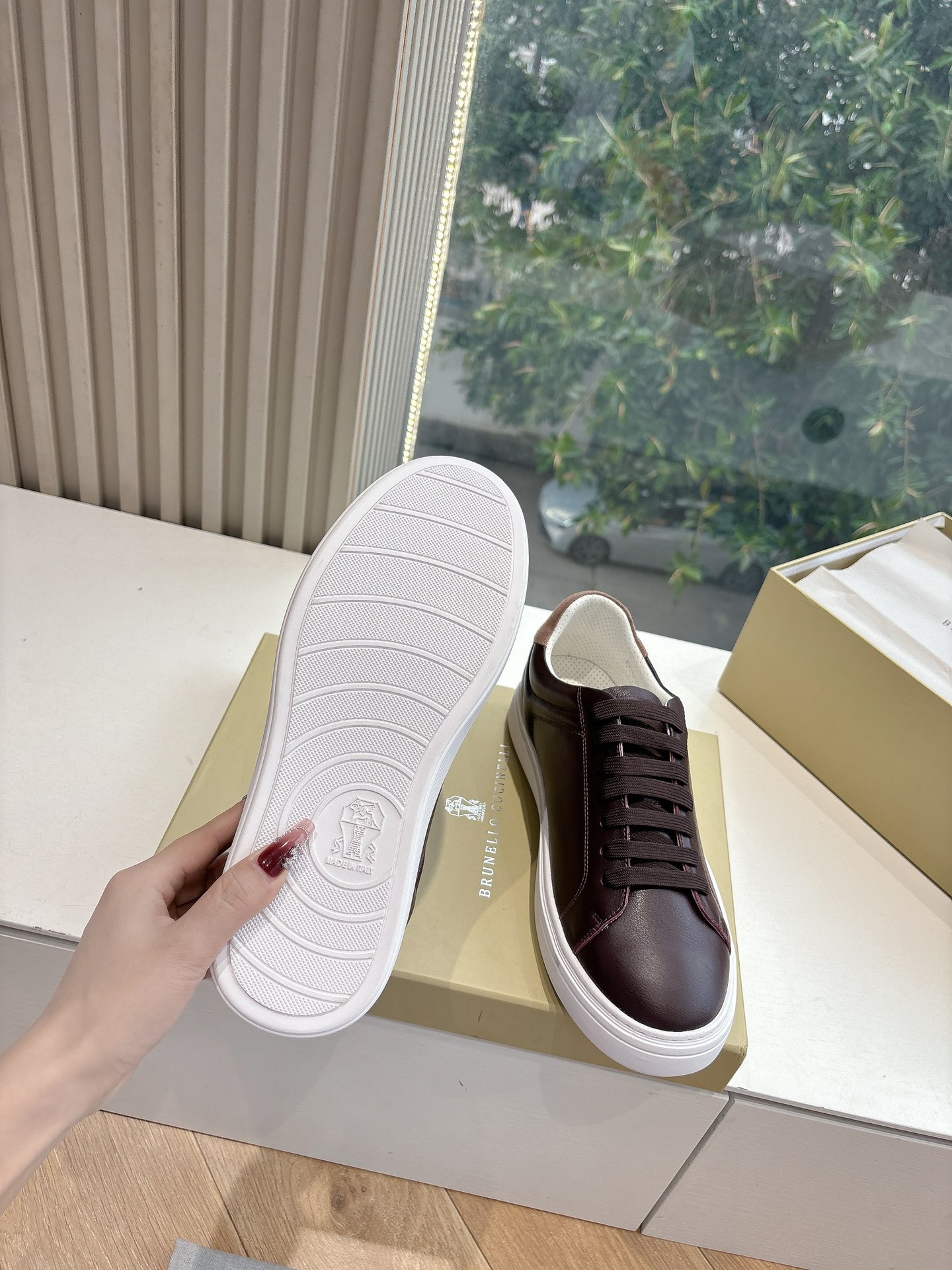 This shoes is AAAAA 1:1 quality (superb). Materials used are identical to the original ones. Brunello Cucinelli trademark marks are indistinguishable to the authentic. Photos take by actual shoes, what you receive will be 100% same with our photos.