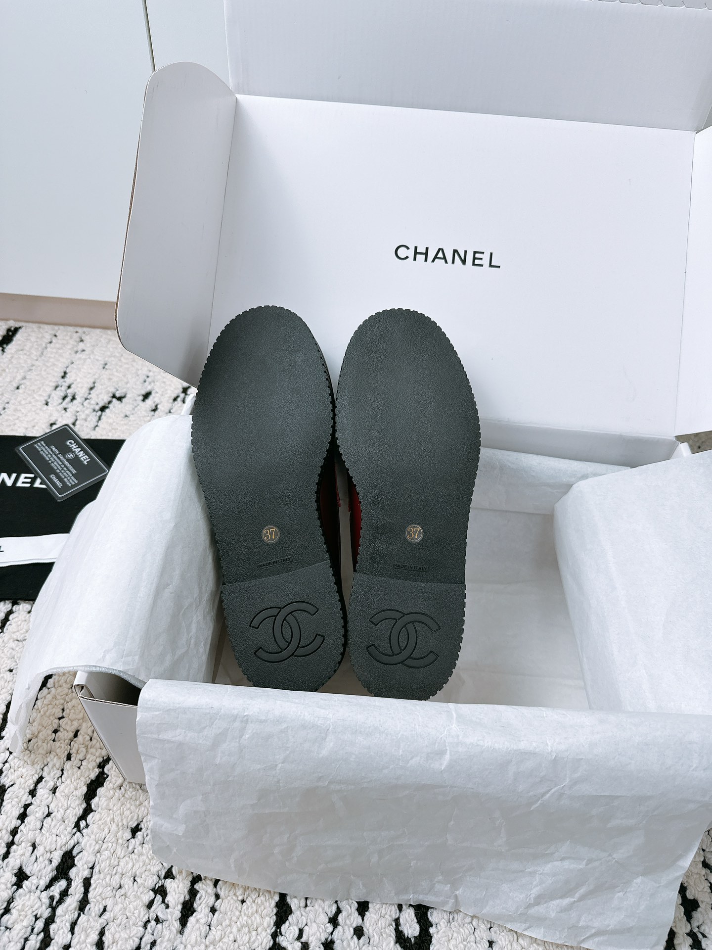 This shoes is AAAAA 1:1 quality (superb). Materials used are identical to the original ones. Chanel trademark marks are indistinguishable to the authentic. Photos take by actual shoes, what you receive will be 100% same with our photos.