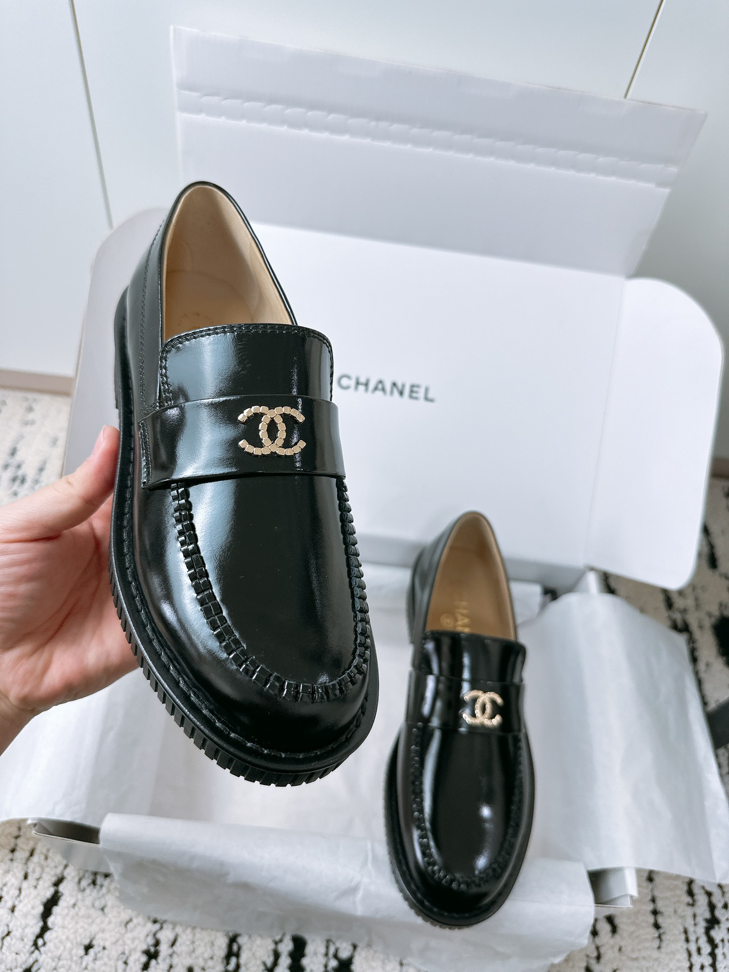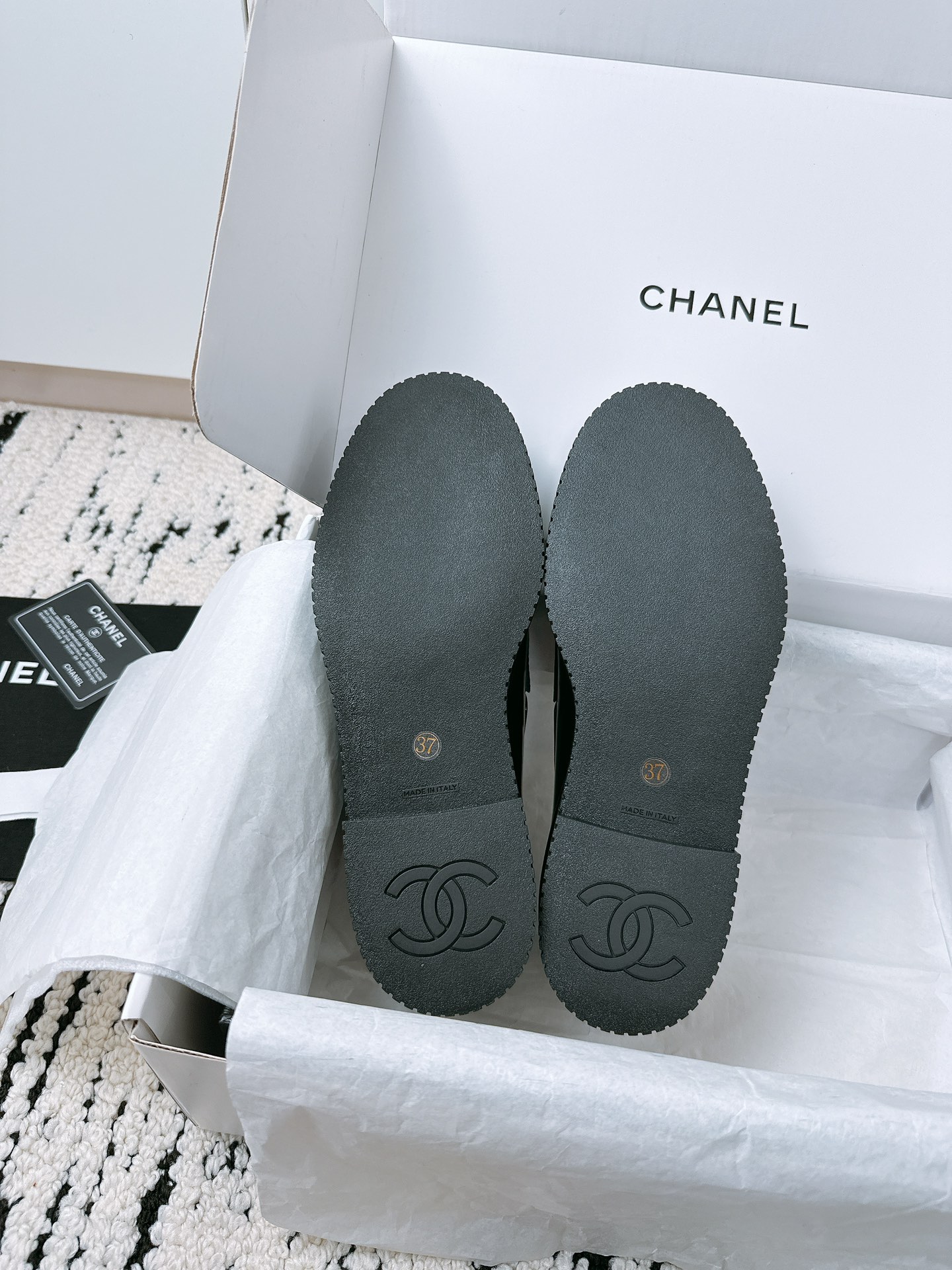This shoes is AAAAA 1:1 quality (superb). Materials used are identical to the original ones. Chanel trademark marks are indistinguishable to the authentic. Photos take by actual shoes, what you receive will be 100% same with our photos.