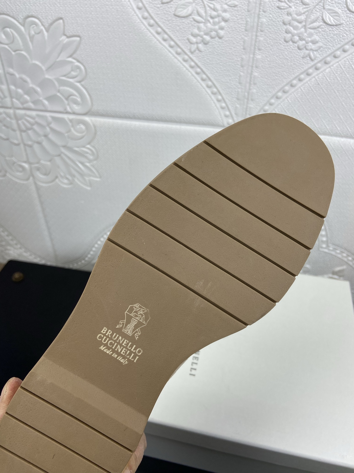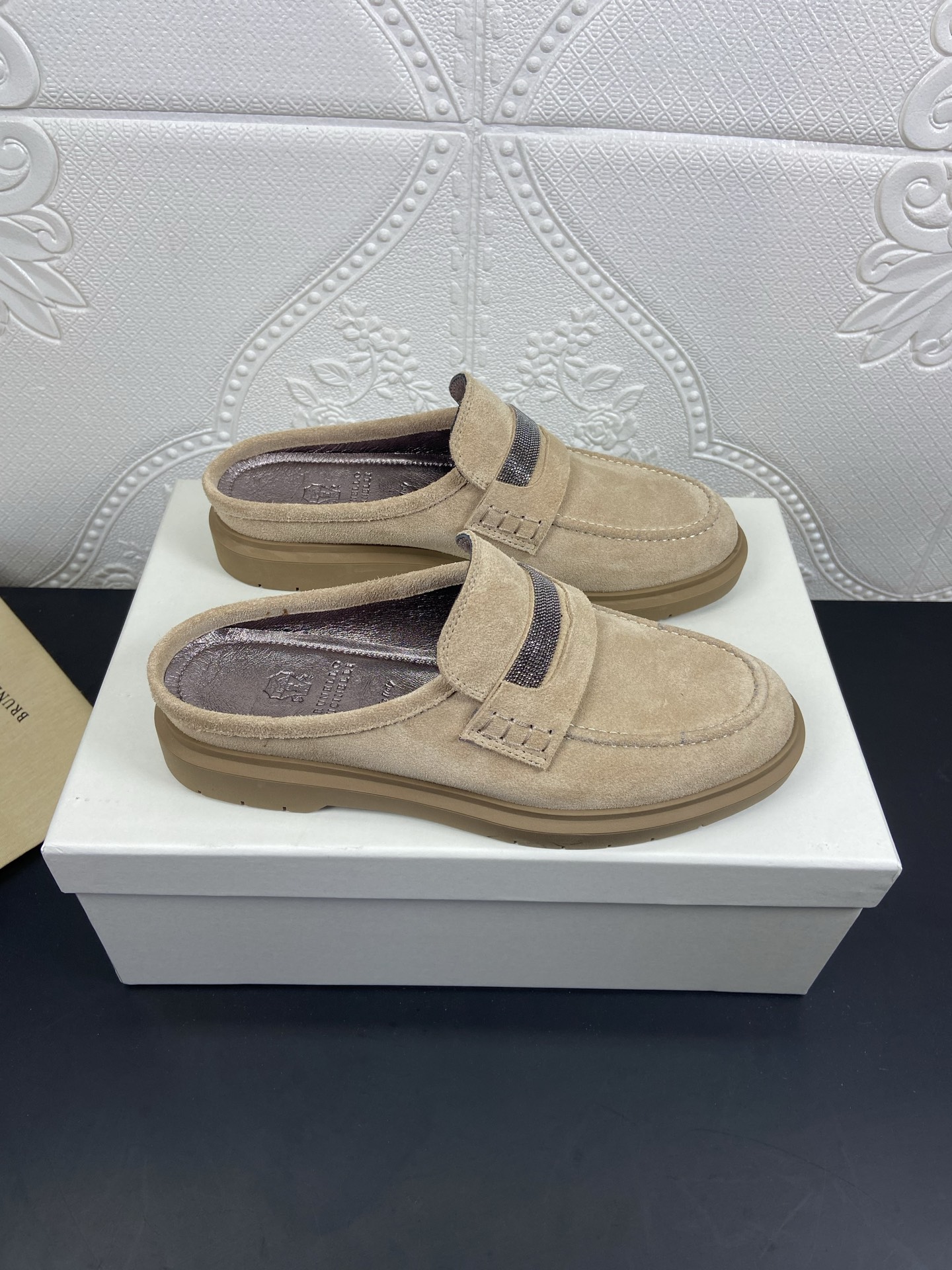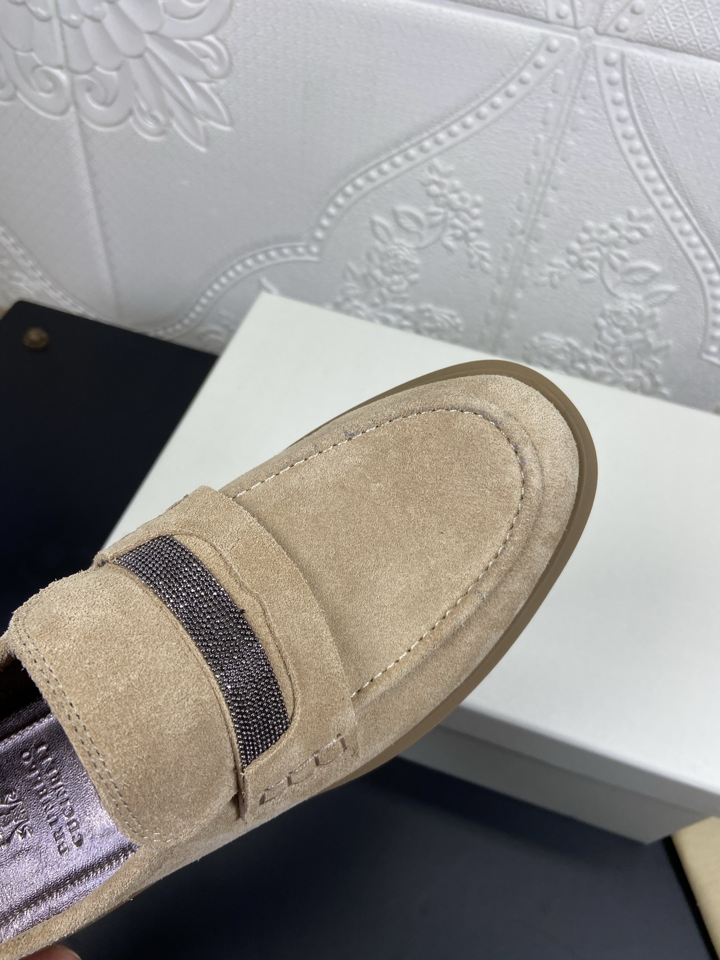 This shoes is AAAAA 1:1 quality (superb). Materials used are identical to the original ones. Brunello Cucinelli trademark marks are indistinguishable to the authentic. Photos take by actual shoes, what you receive will be 100% same with our photos.