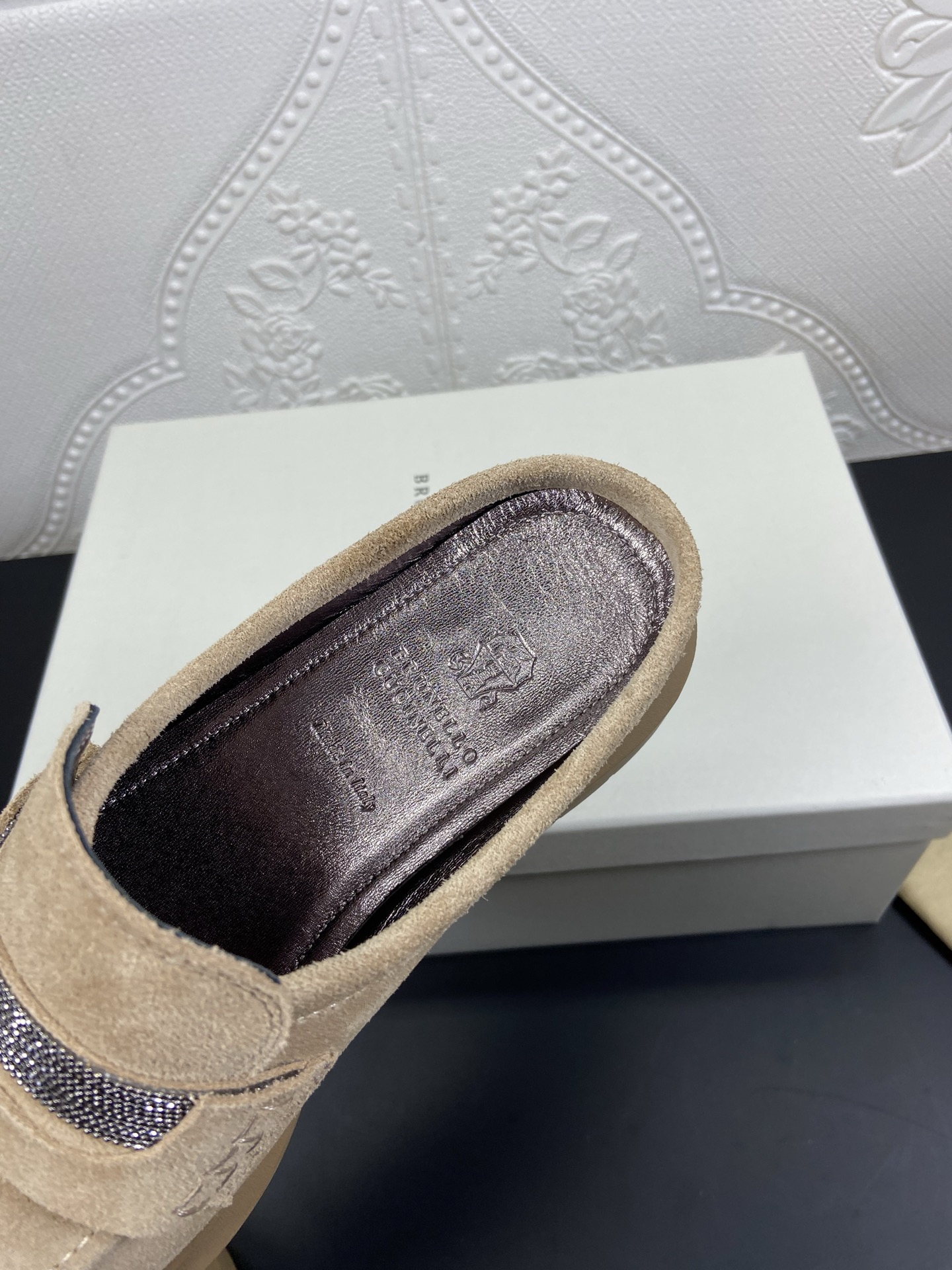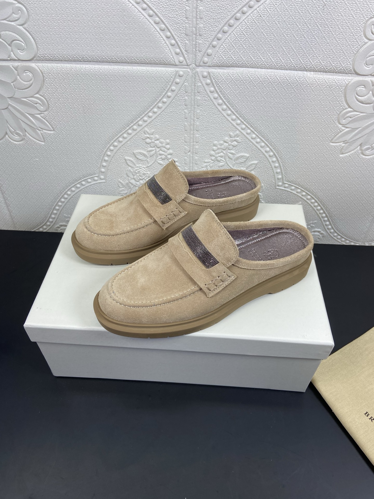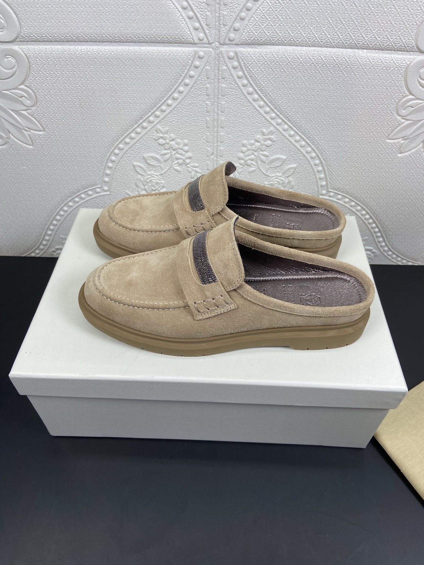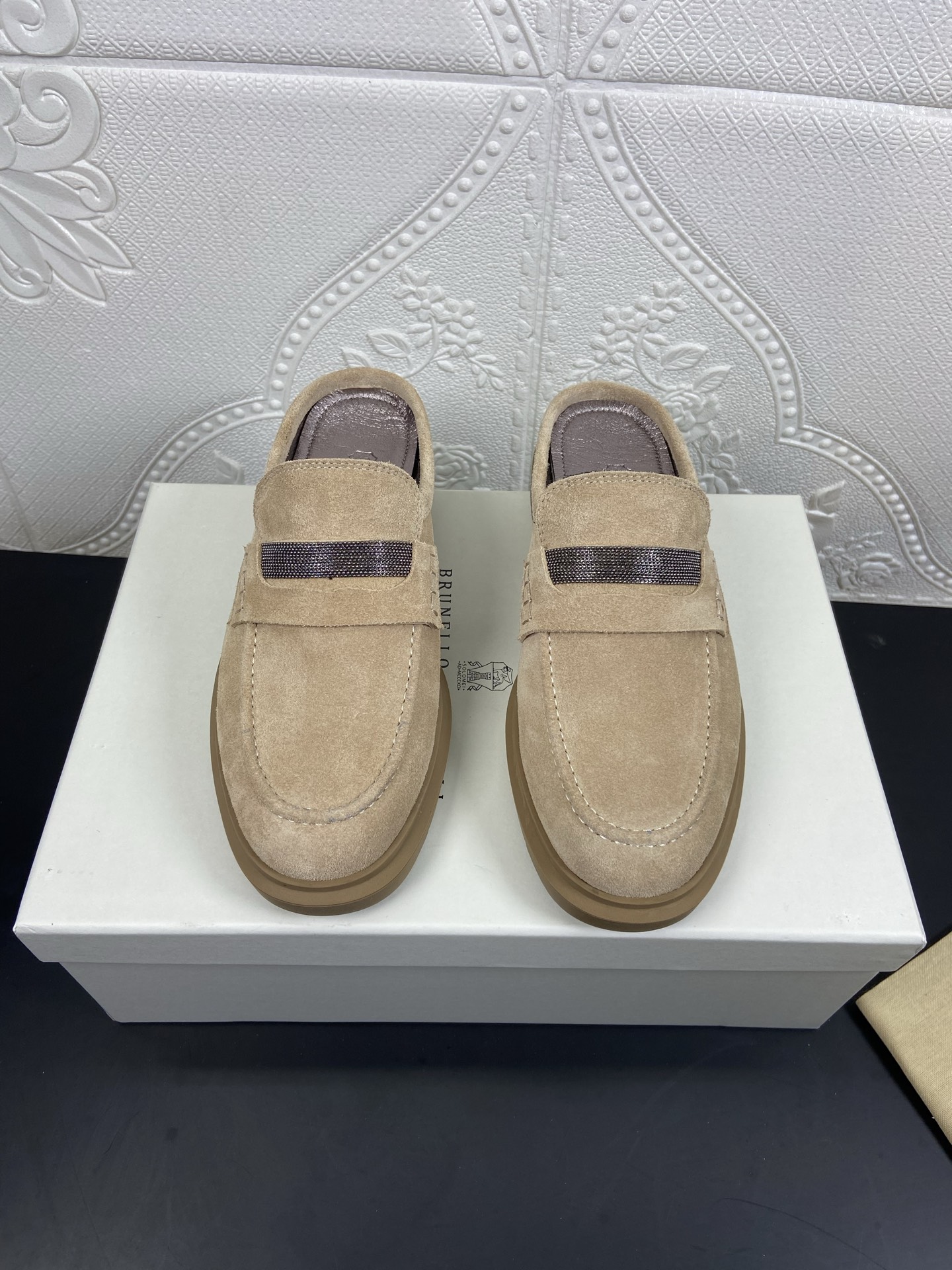This shoes is AAAAA 1:1 quality (superb). Materials used are identical to the original ones. Brunello Cucinelli trademark marks are indistinguishable to the authentic. Photos take by actual shoes, what you receive will be 100% same with our photos.