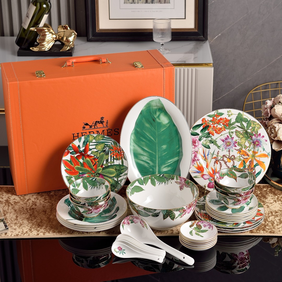 This bone china tableware sets is AAAAA 1:1 quality (superb). Materials used are identical to the original ones. trademark marks are indistinguishable to the authentic. Photos take by actual bone china tableware sets, what you receive will be 100% same with our photos.