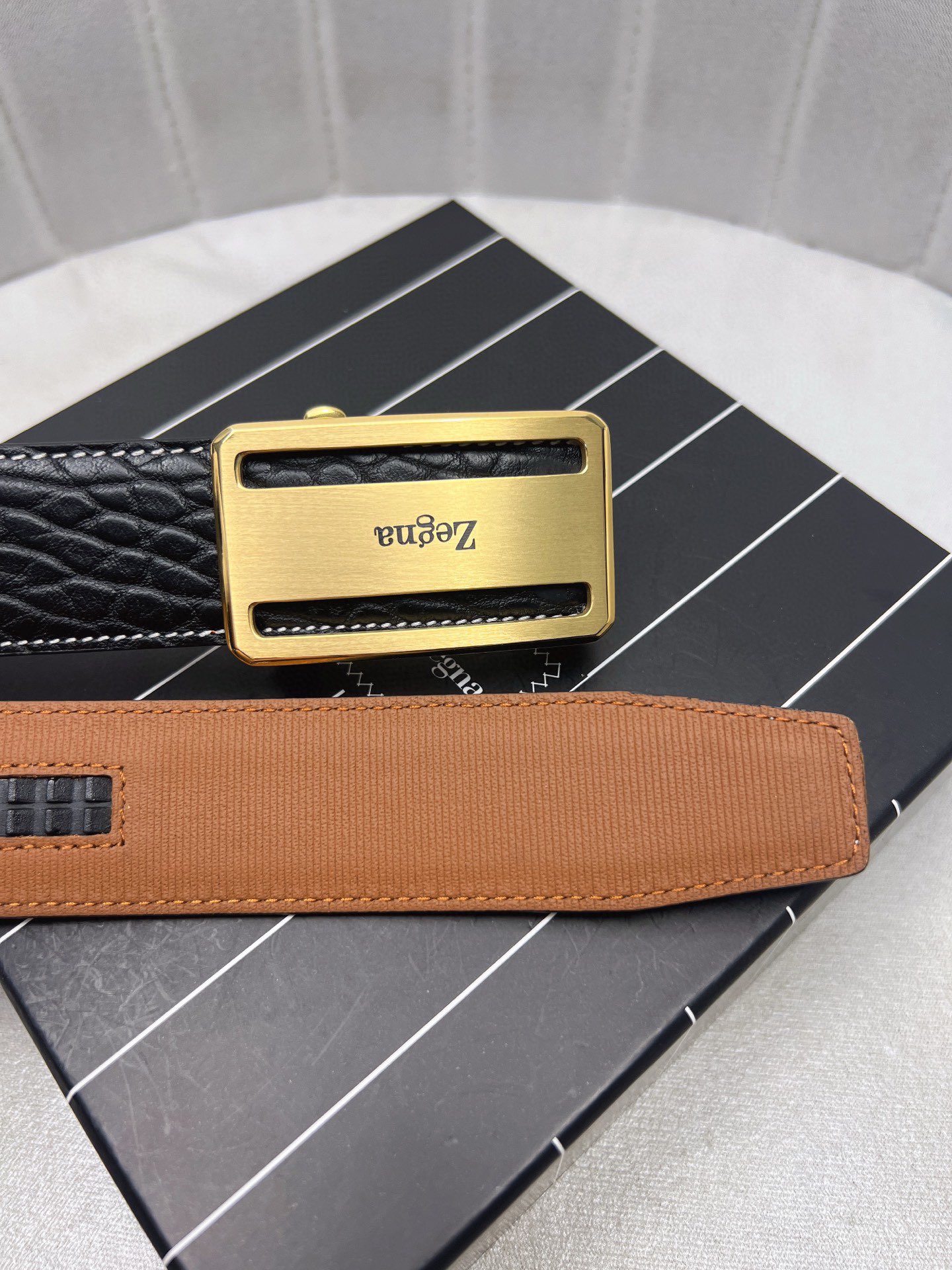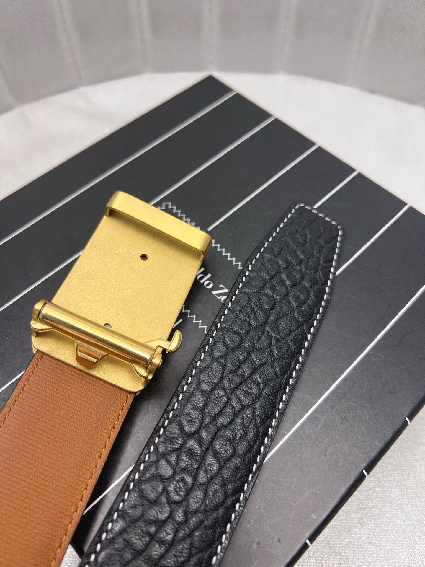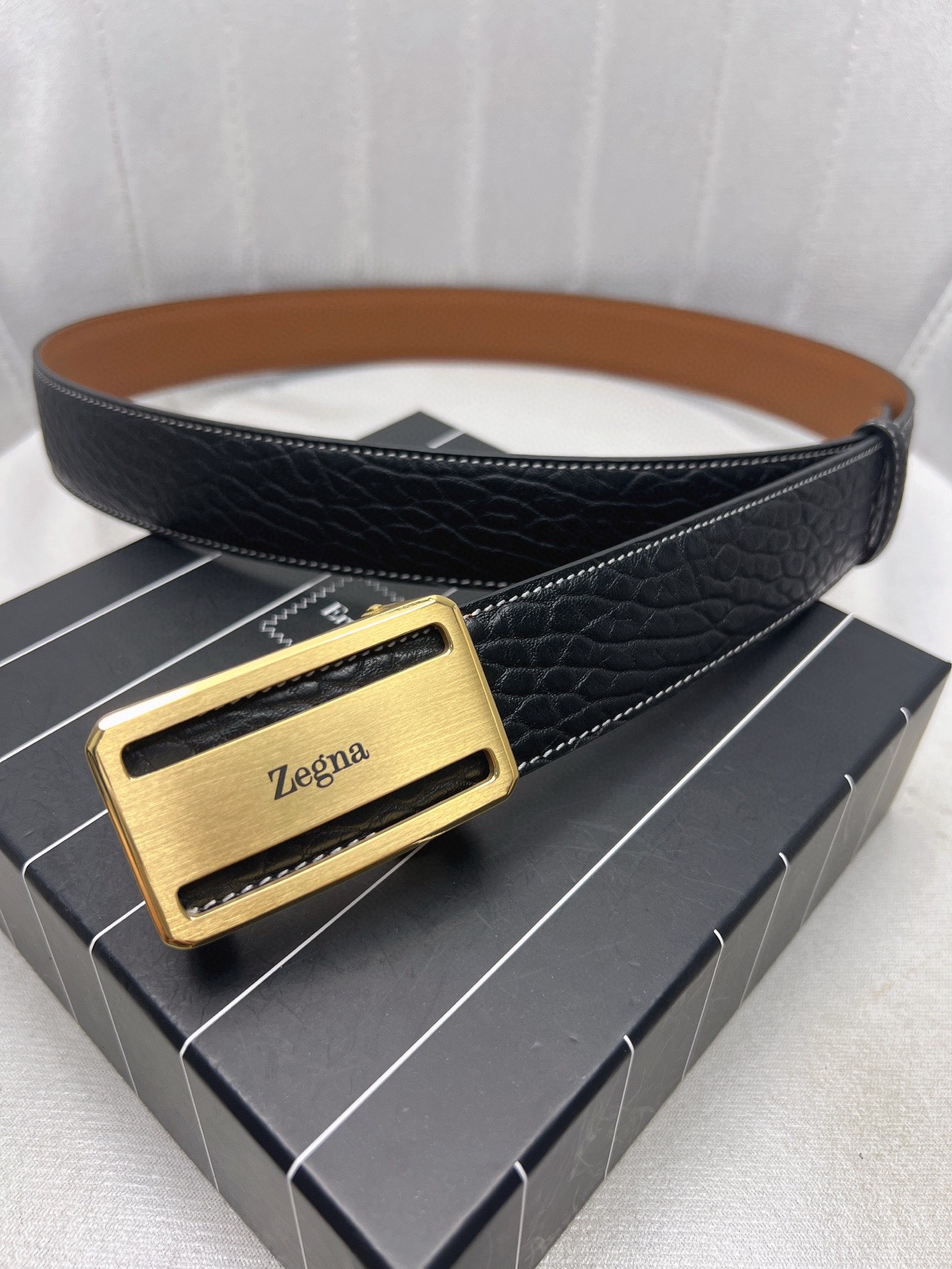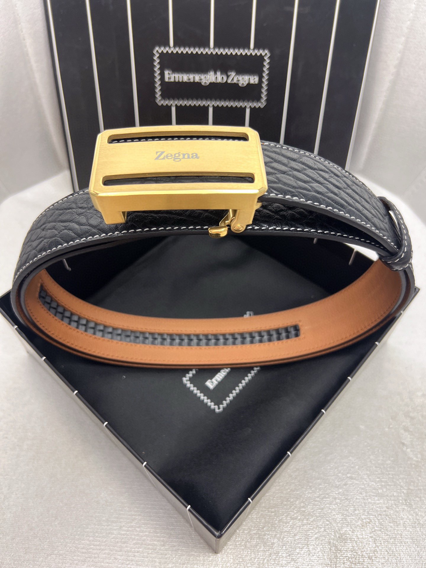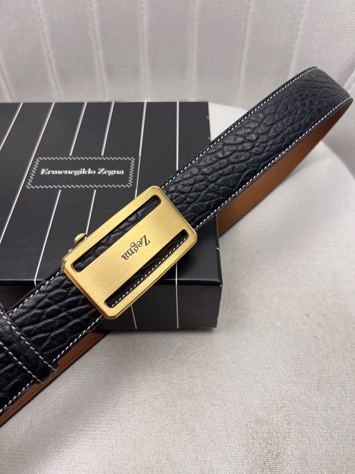 This belt is AAAAA 1:1 quality (superb). Materials used are identical to the original ones. Zegna trademark marks are indistinguishable to the authentic. Photos take by actual belt, what you receive will be 100% same with our photos.
