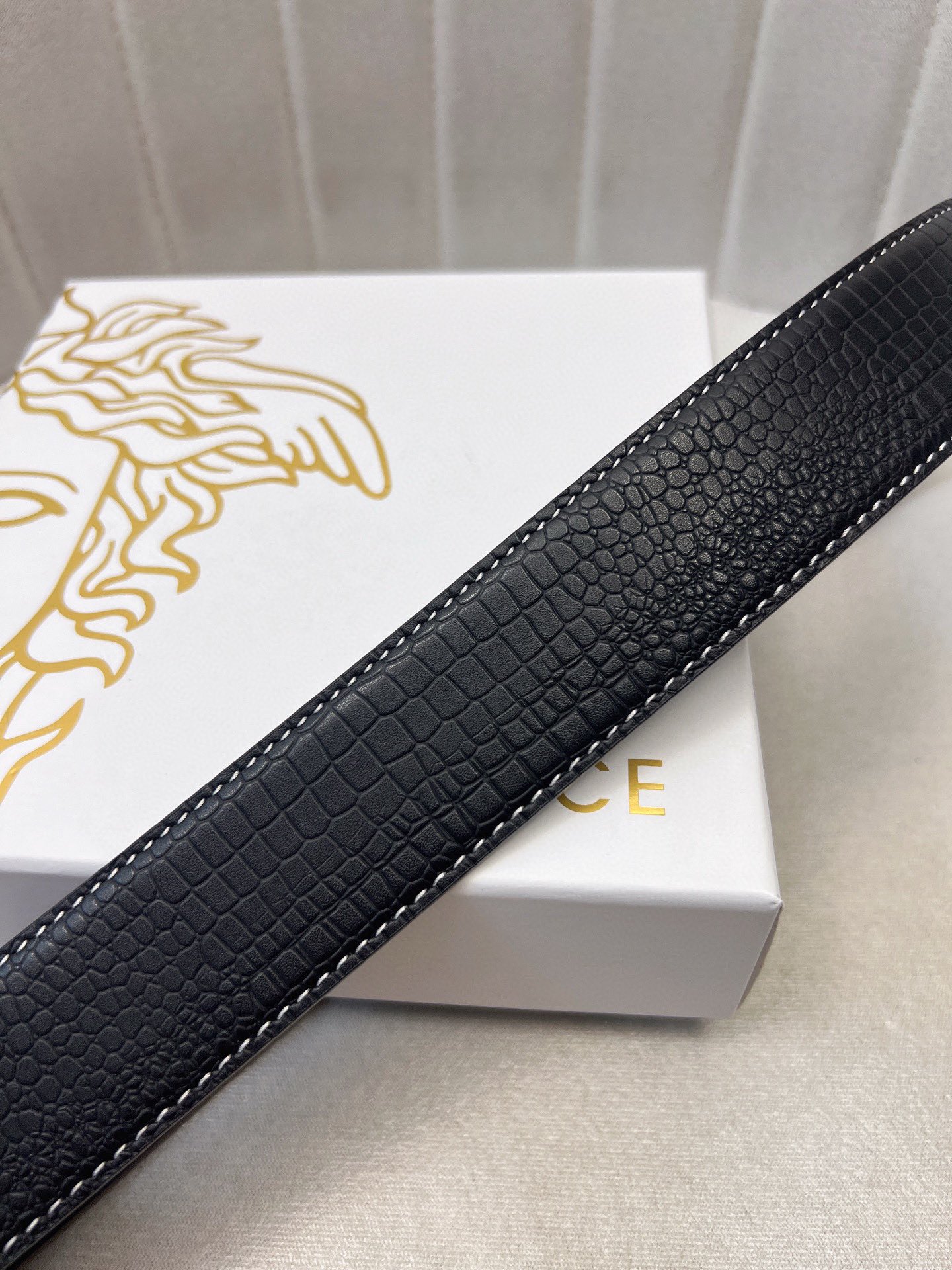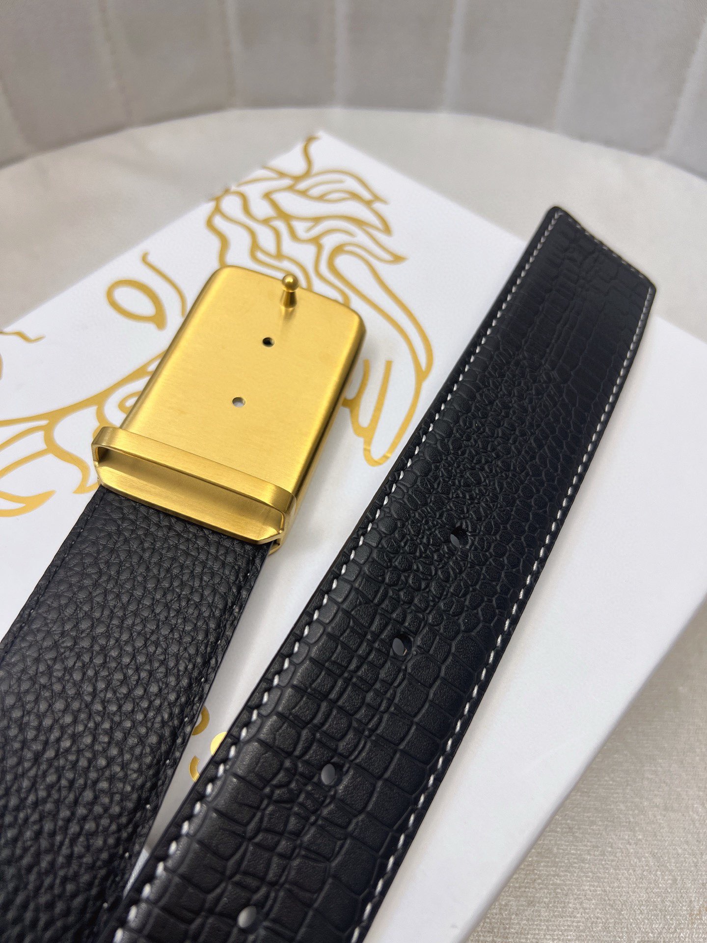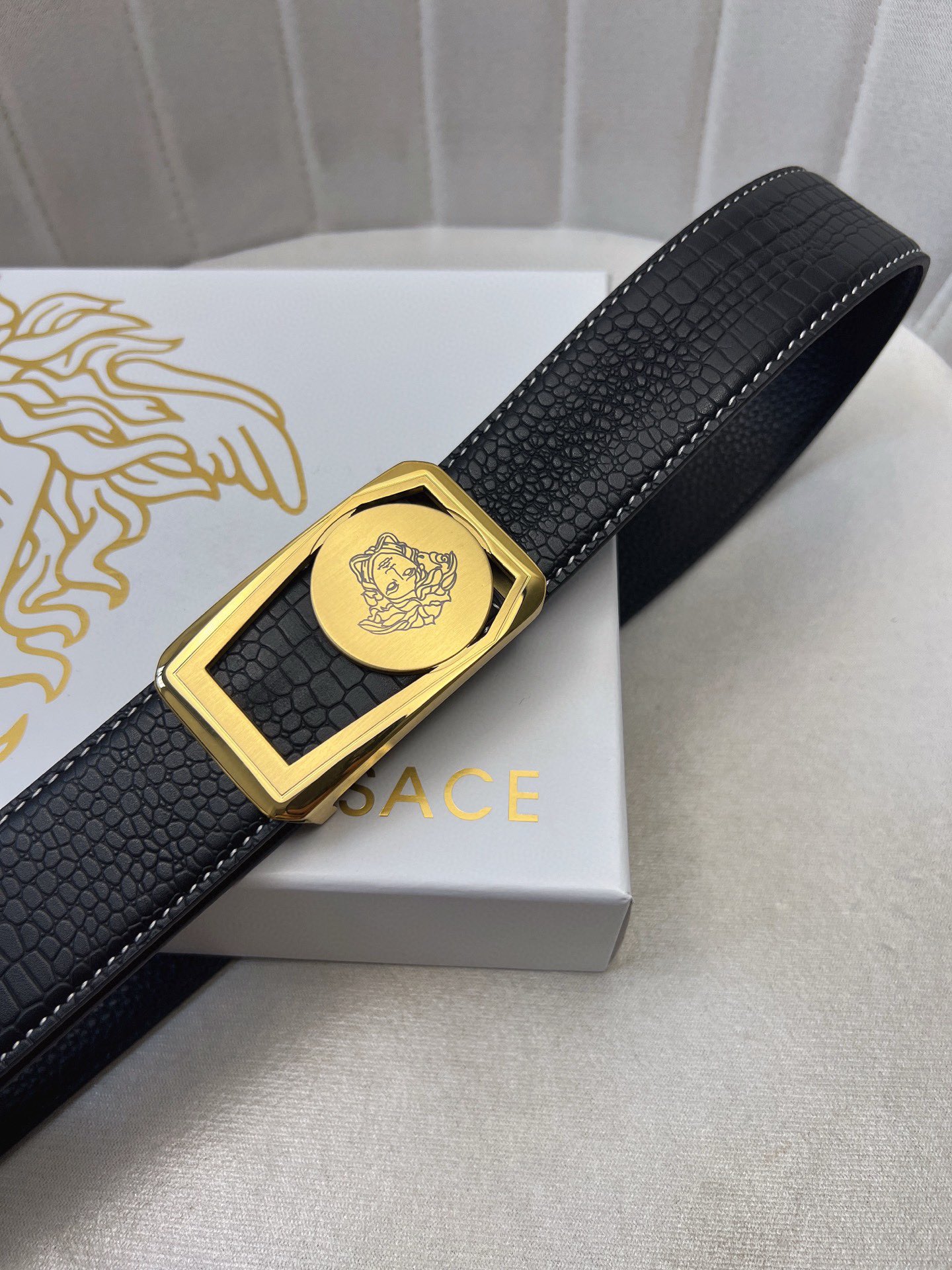 This belt is AAAAA 1:1 quality (superb). Materials used are identical to the original ones. Versace trademark marks are indistinguishable to the authentic. Photos take by actual belt, what you receive will be 100% same with our photos.