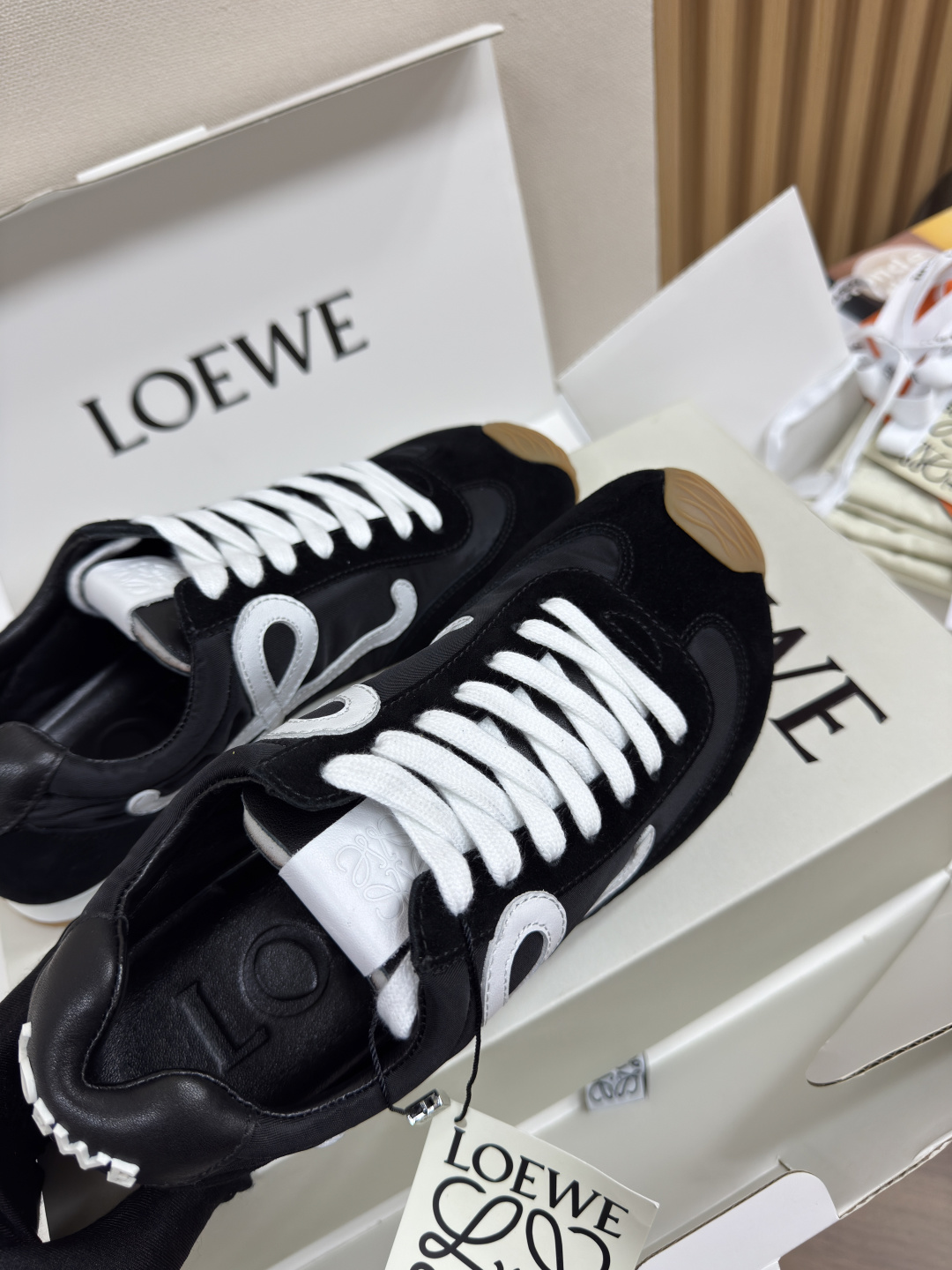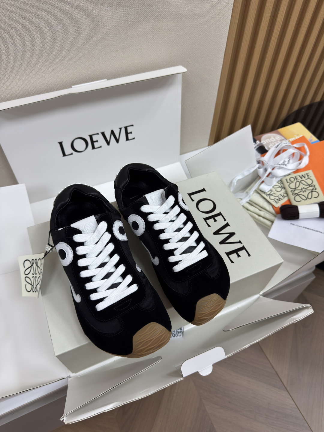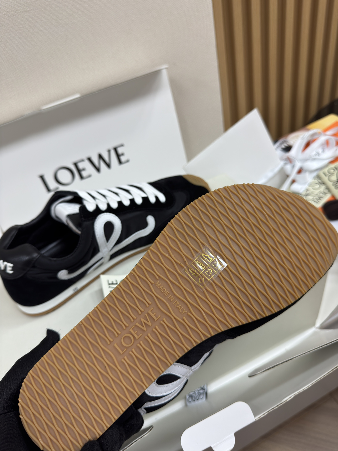This shoes is AAAAA 1:1 quality (superb). Materials used are identical to the original ones. Loewe trademark marks are indistinguishable to the authentic. Photos take by actual shoes, what you receive will be 100% same with our photos.