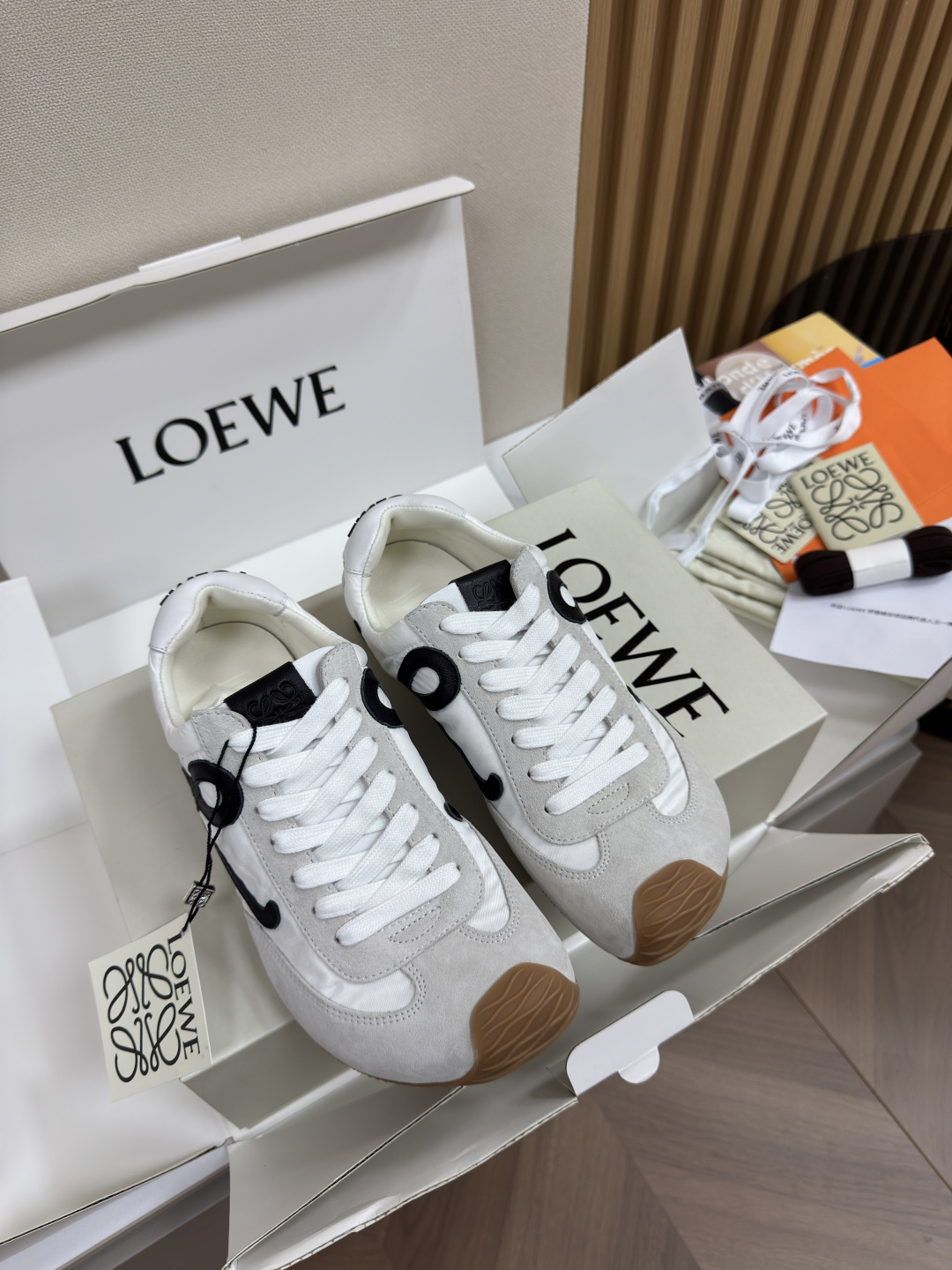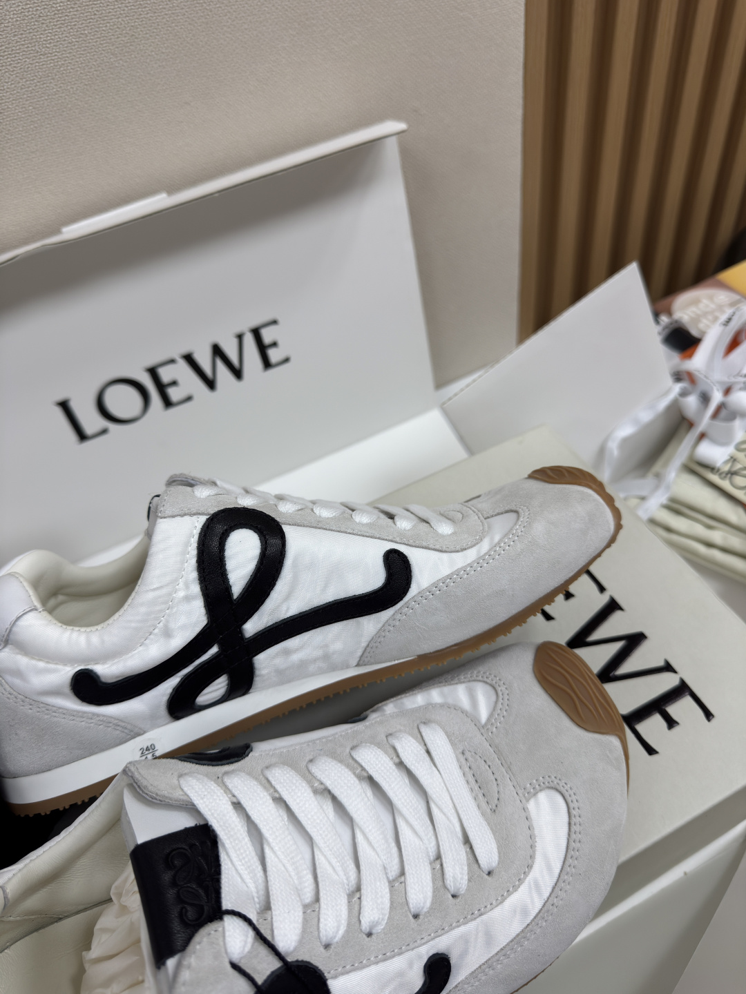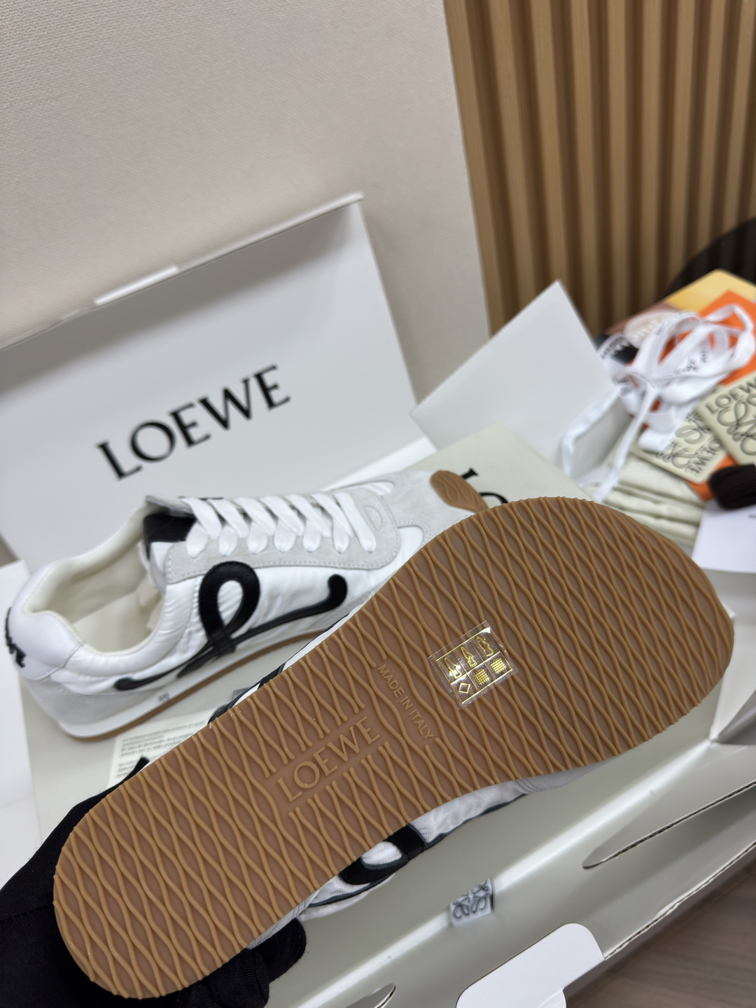 This shoes is AAAAA 1:1 quality (superb). Materials used are identical to the original ones. Loewe trademark marks are indistinguishable to the authentic. Photos take by actual shoes, what you receive will be 100% same with our photos.
