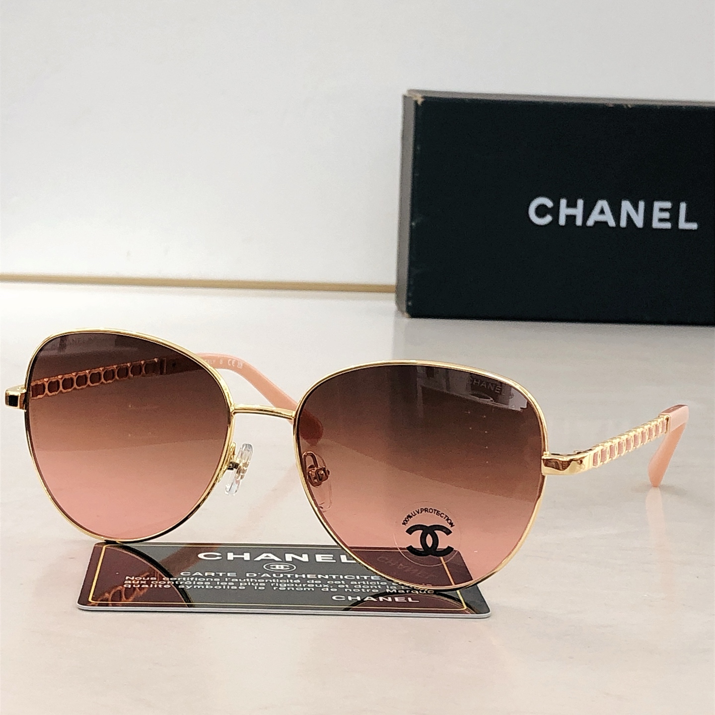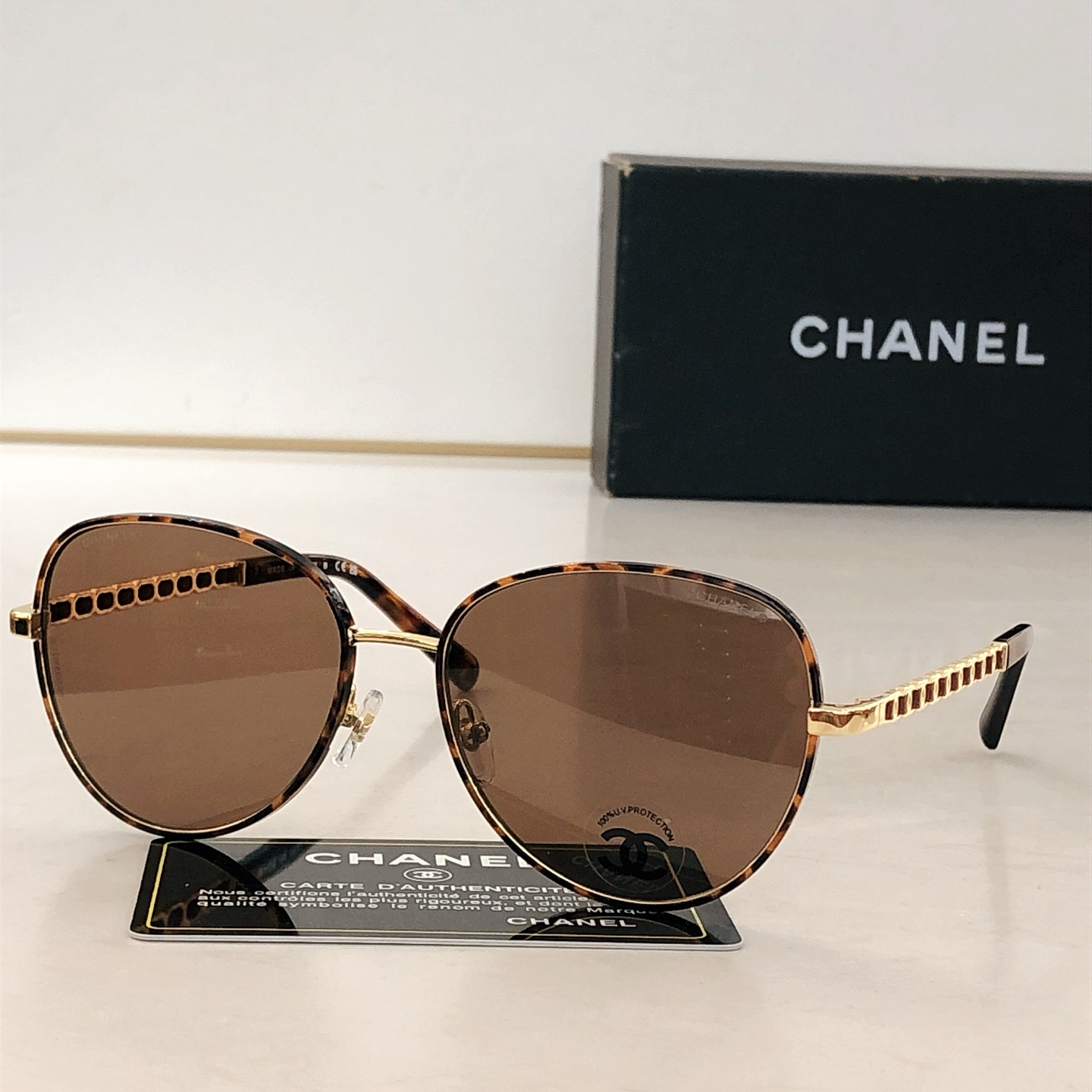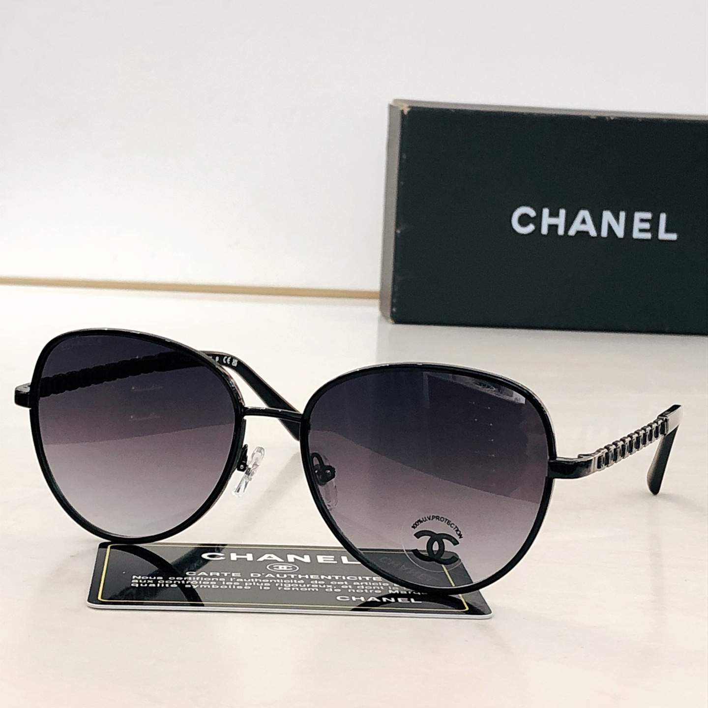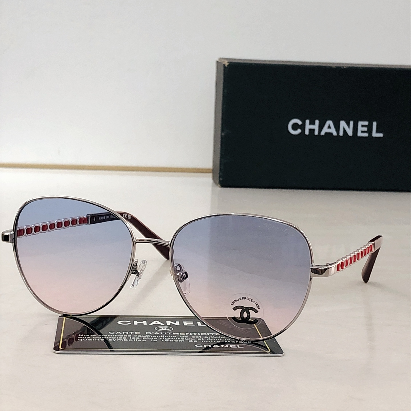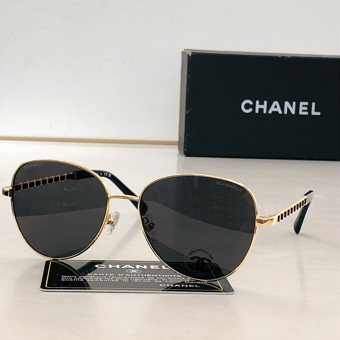 This sunglasses is AAAAA 1:1 quality (superb). Materials used are identical to the original ones. Chanel trademark marks are indistinguishable to the authentic. Photos take by actual sunglasses, what you receive will be 100% same with our photos.