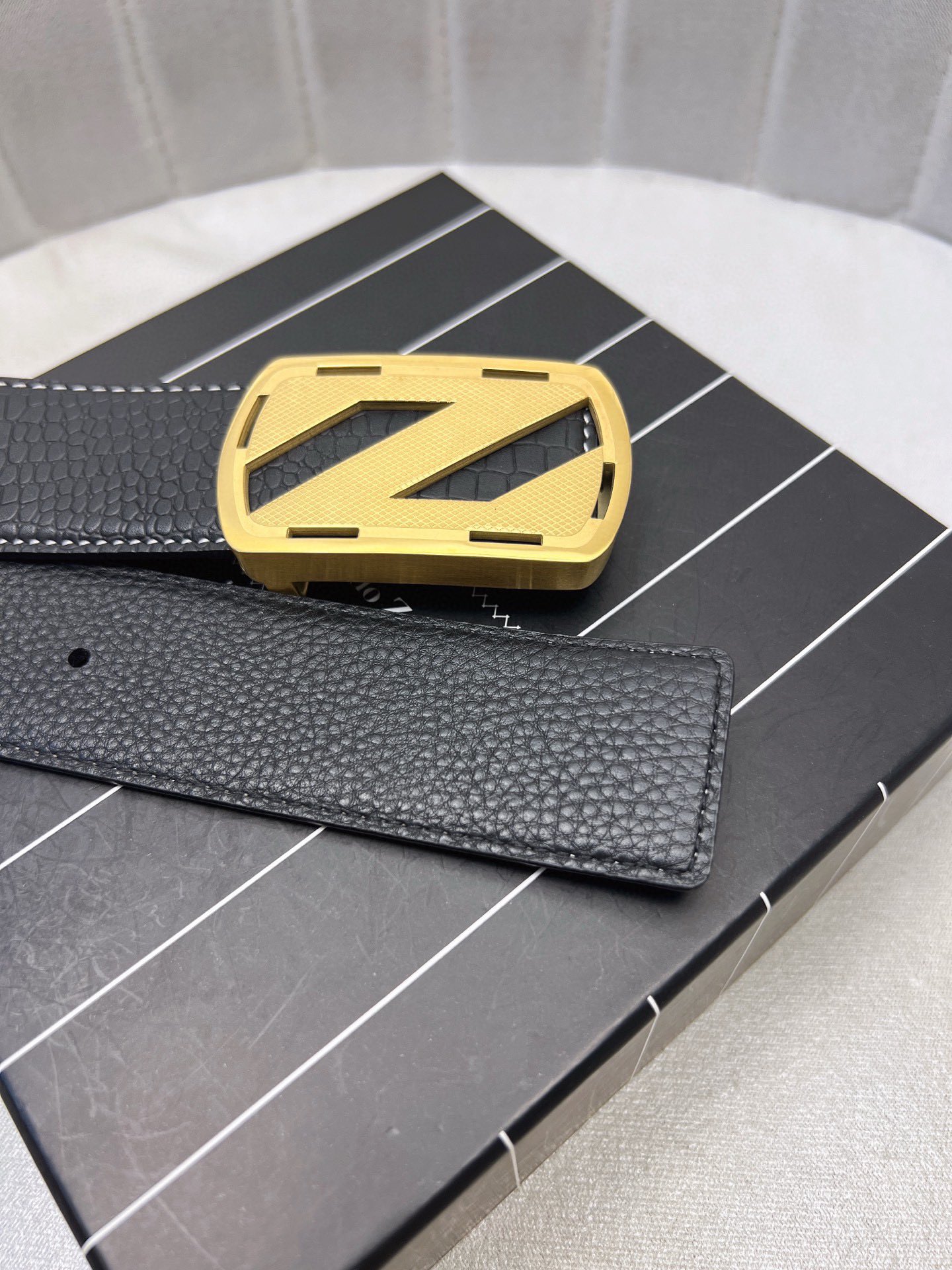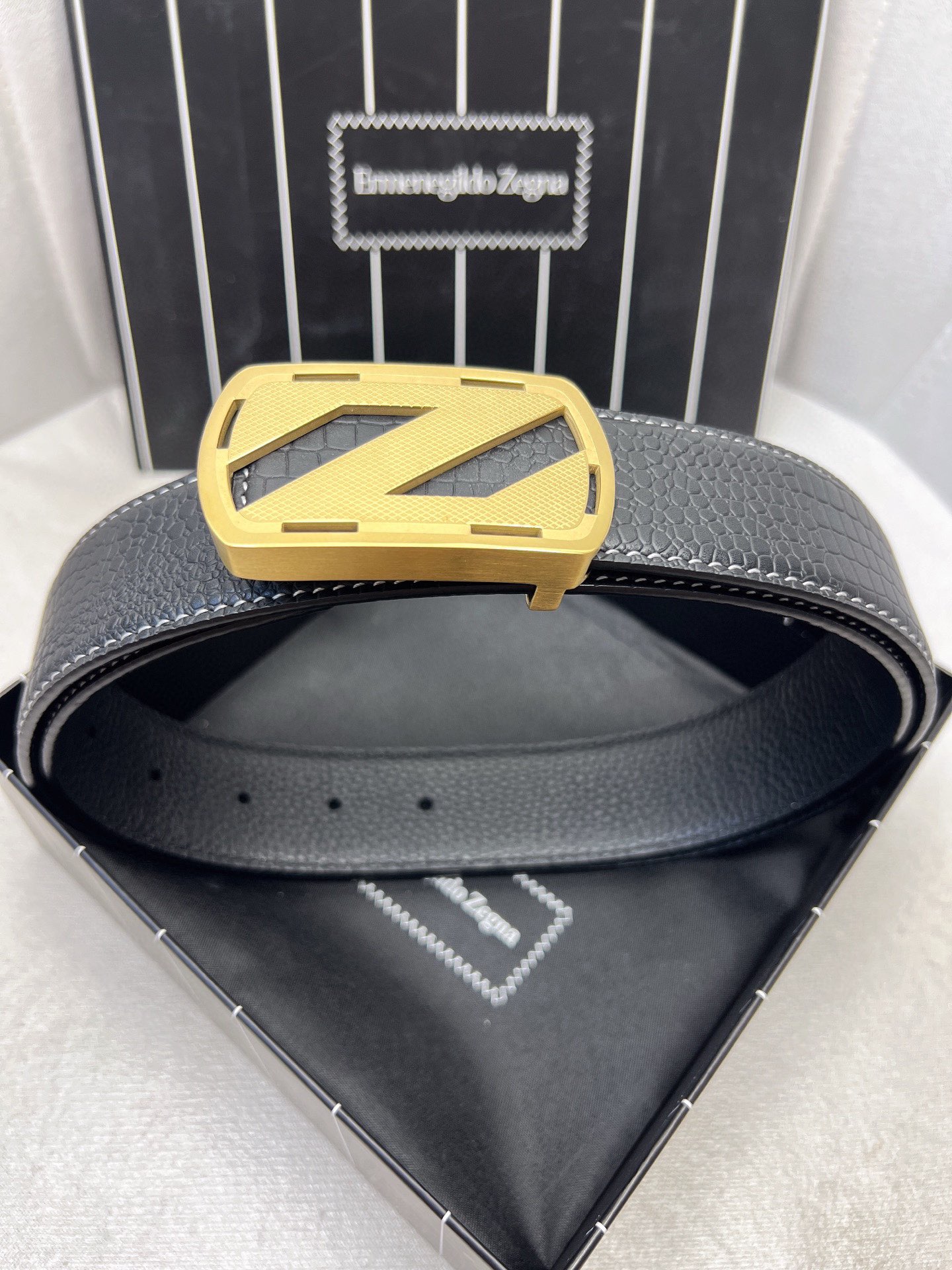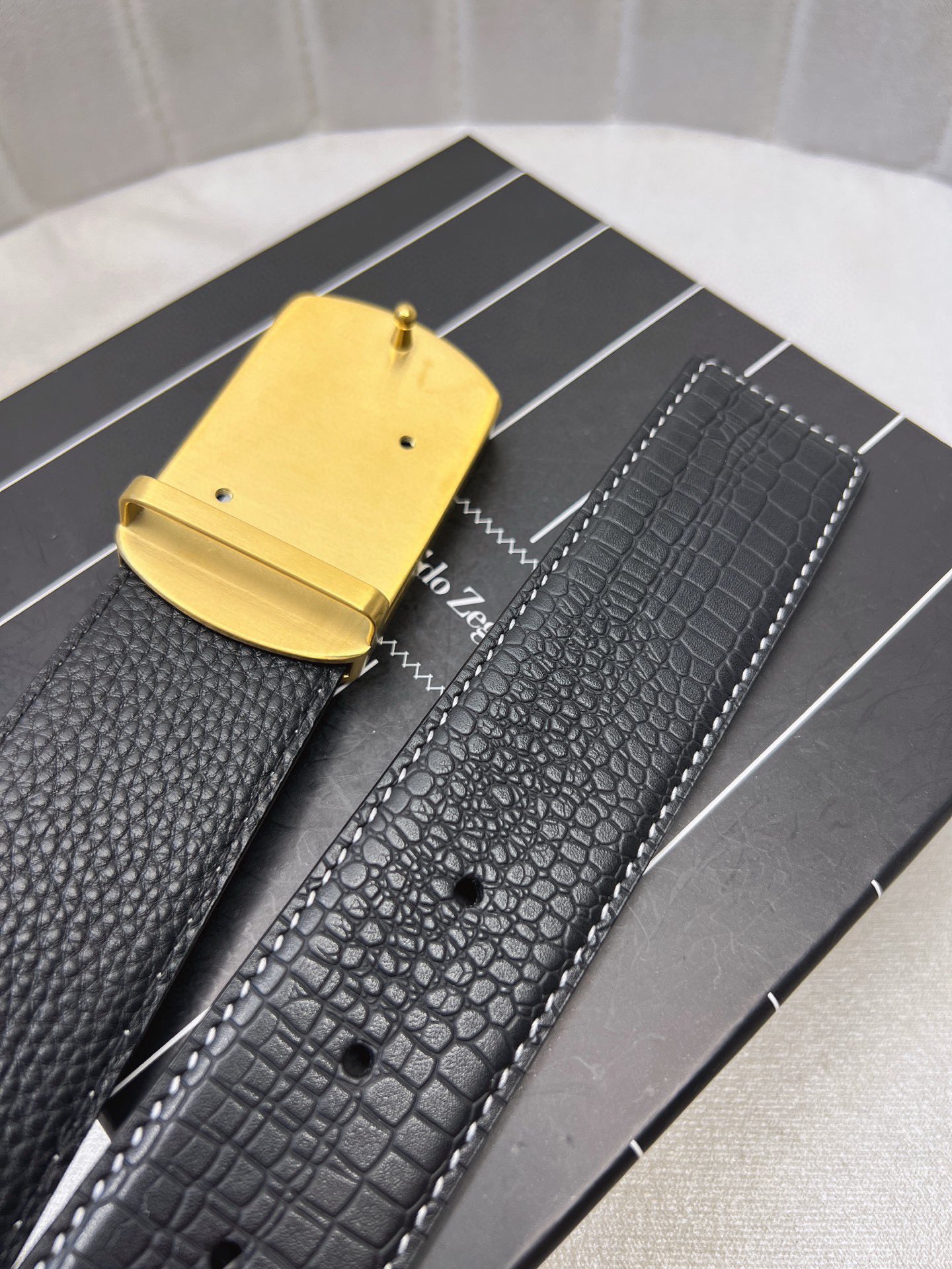 This belt is AAAAA 1:1 quality (superb). Materials used are identical to the original ones. Zegna trademark marks are indistinguishable to the authentic. Photos take by actual belt, what you receive will be 100% same with our photos.