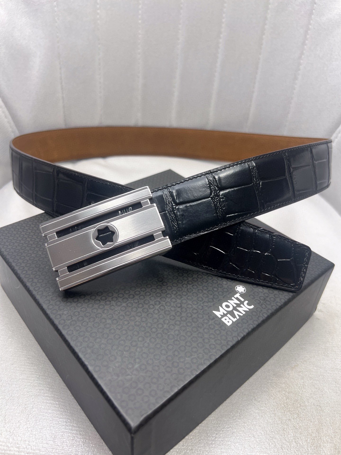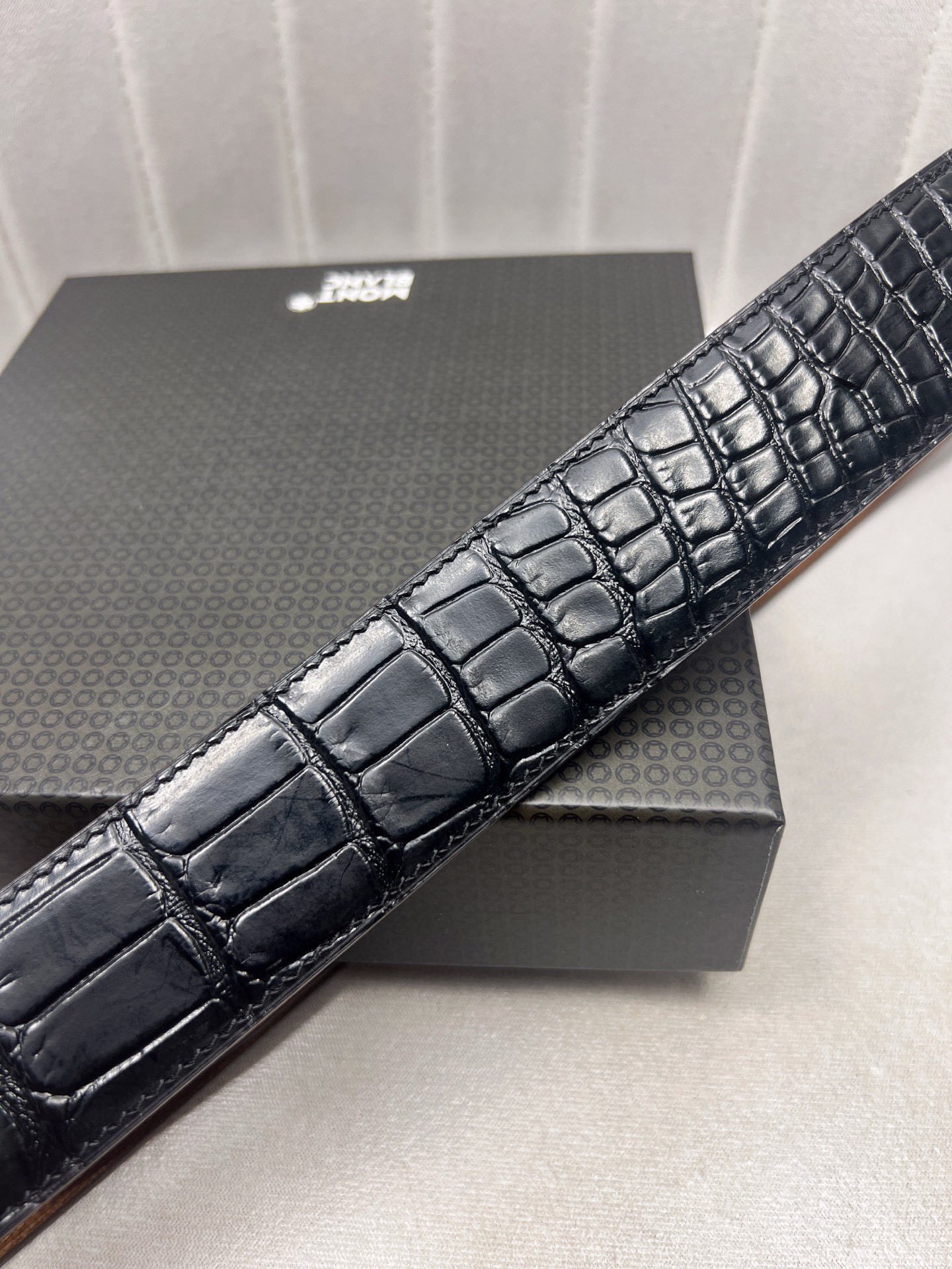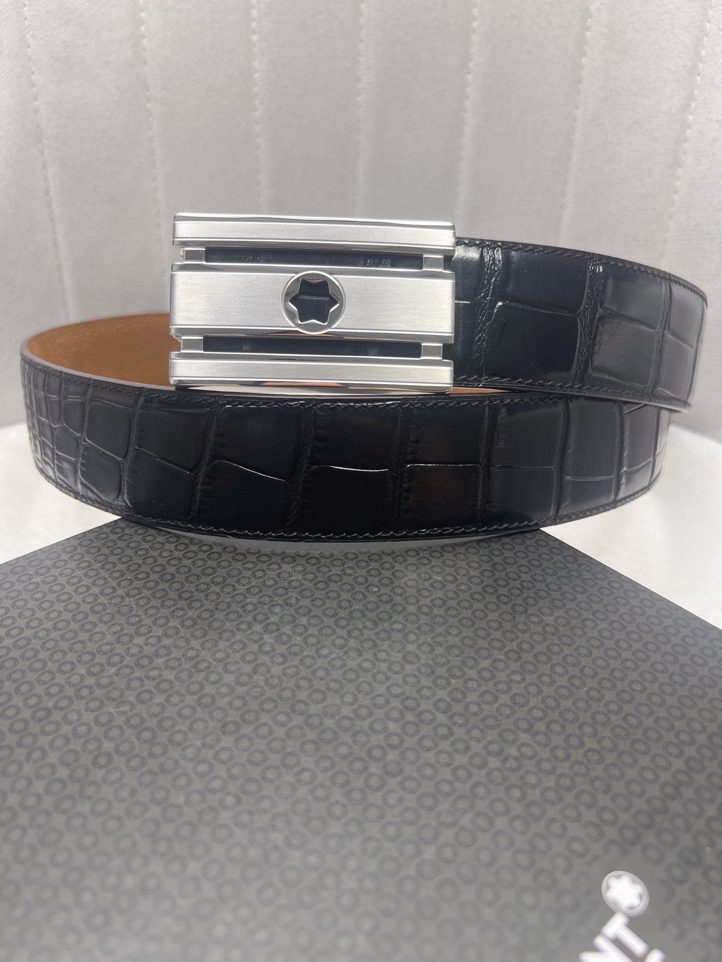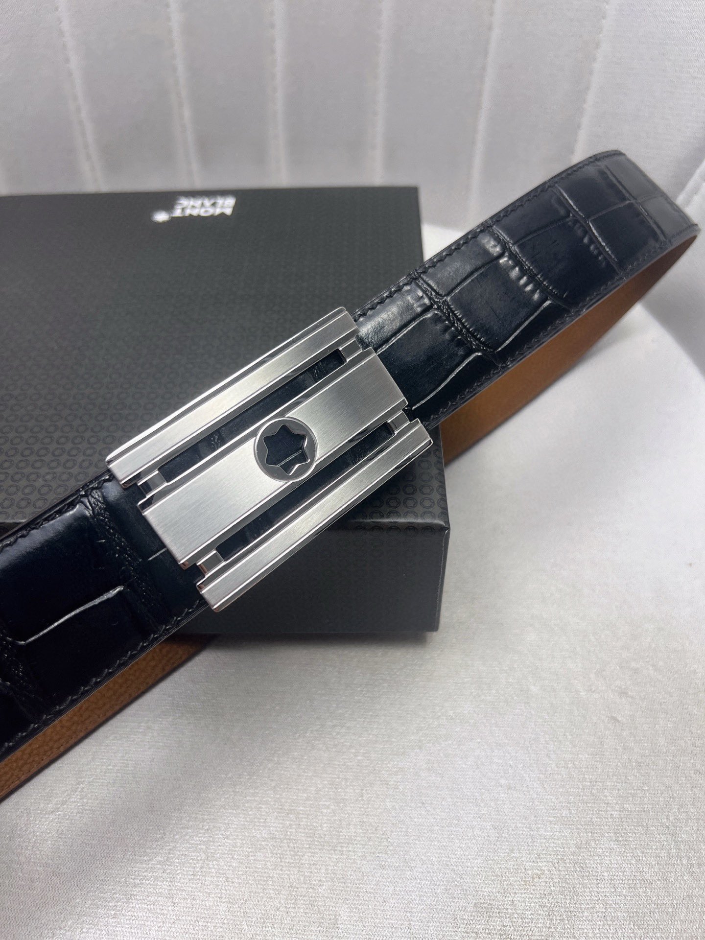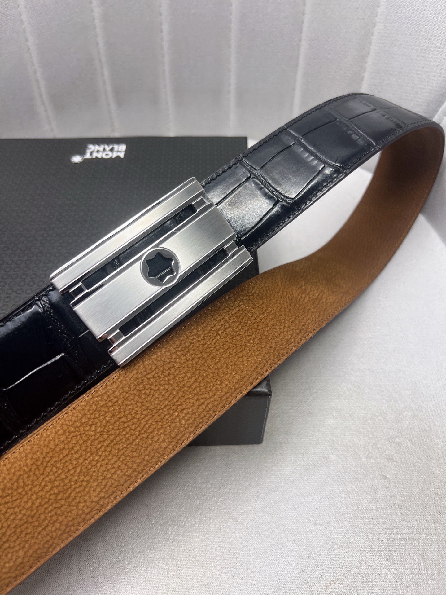 This belt is AAAAA 1:1 quality (superb). Materials used are identical to the original ones. Montblanc trademark marks are indistinguishable to the authentic. Photos take by actual belt, what you receive will be 100% same with our photos.