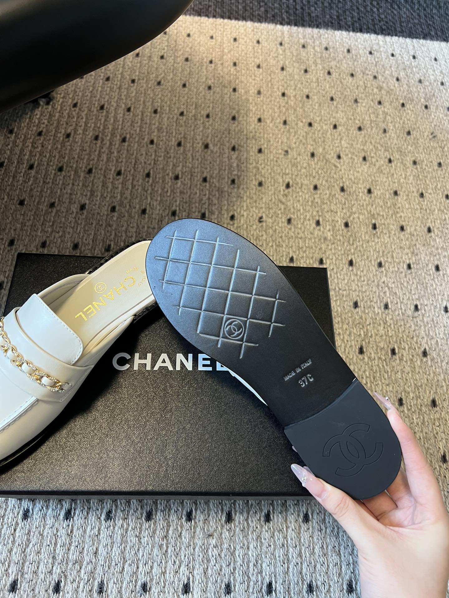 This shoes is AAAAA 1:1 quality (superb). Materials used are identical to the original ones. Chanel trademark marks are indistinguishable to the authentic. Photos take by actual shoes, what you receive will be 100% same with our photos.