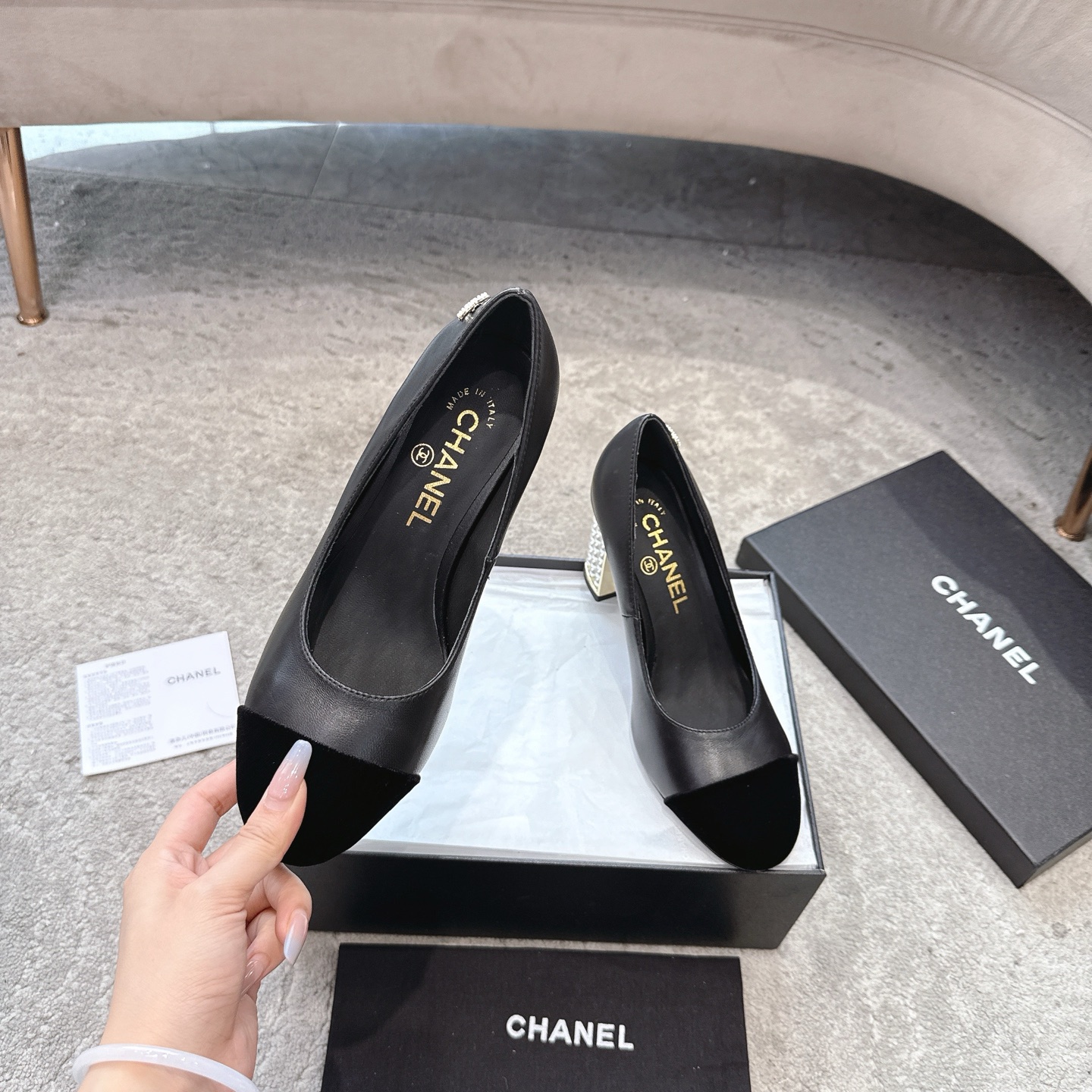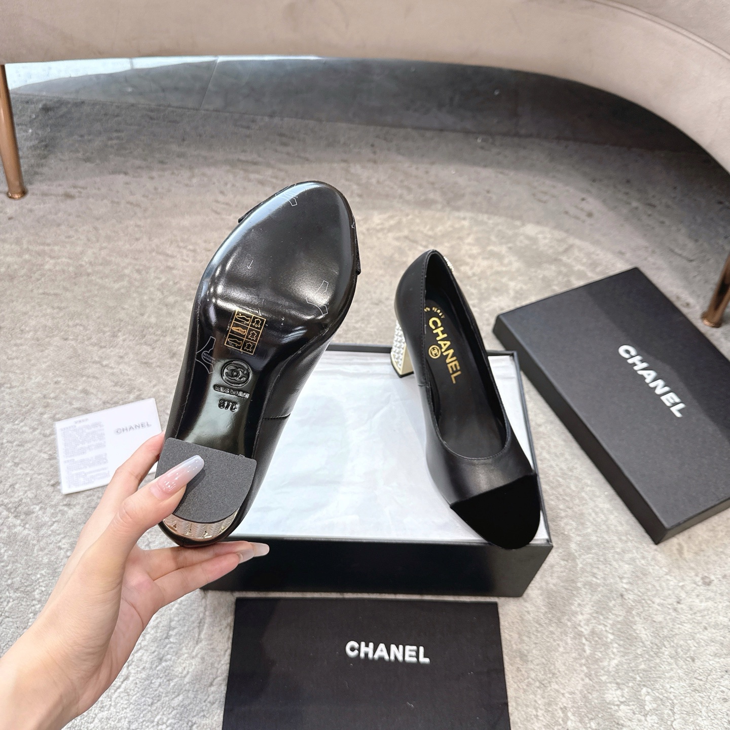 This shoes is AAAAA 1:1 quality (superb). Materials used are identical to the original ones. Chanel trademark marks are indistinguishable to the authentic. Photos take by actual shoes, what you receive will be 100% same with our photos.