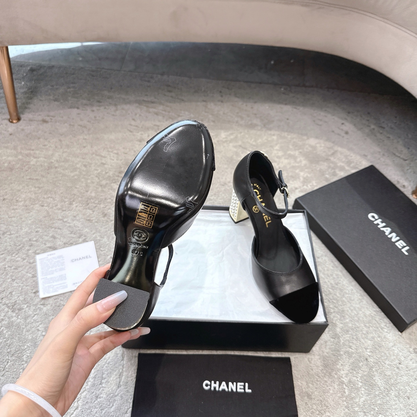 This shoes is AAAAA 1:1 quality (superb). Materials used are identical to the original ones. Chanel trademark marks are indistinguishable to the authentic. Photos take by actual shoes, what you receive will be 100% same with our photos.