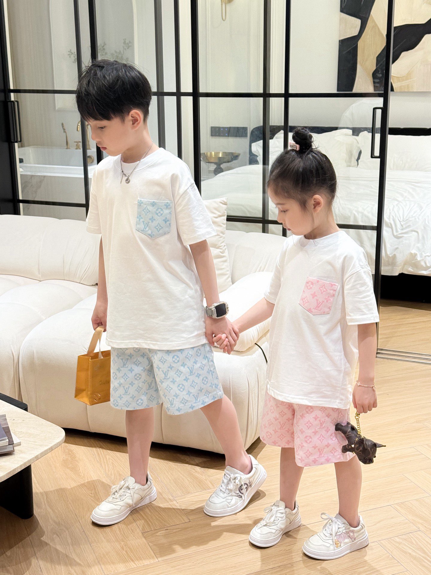 This children's clothes is AAAAA 1:1 quality (superb). Materials used are identical to the original ones. trademark marks are indistinguishable to the authentic. Photos take by actual children's clothes, what you receive will be 100% same with our photos.