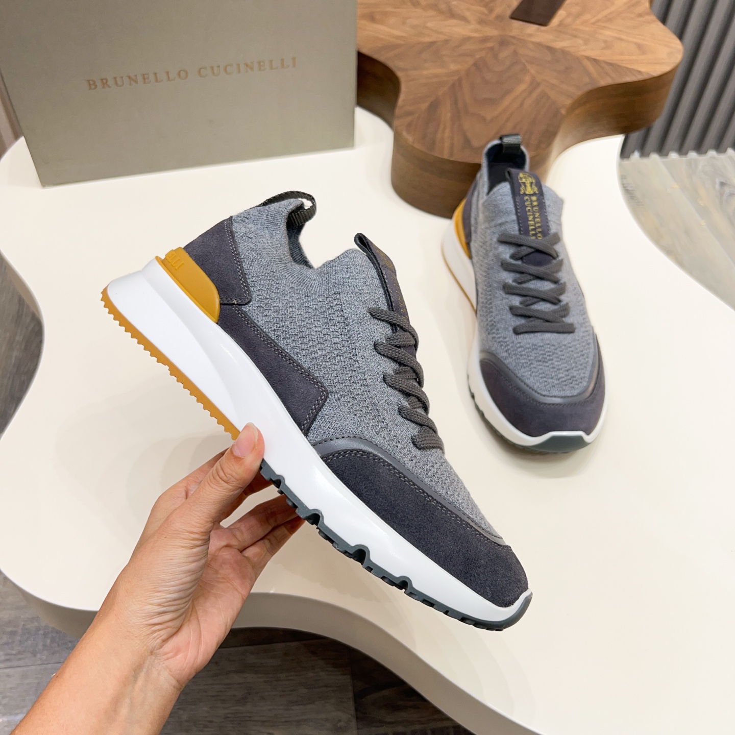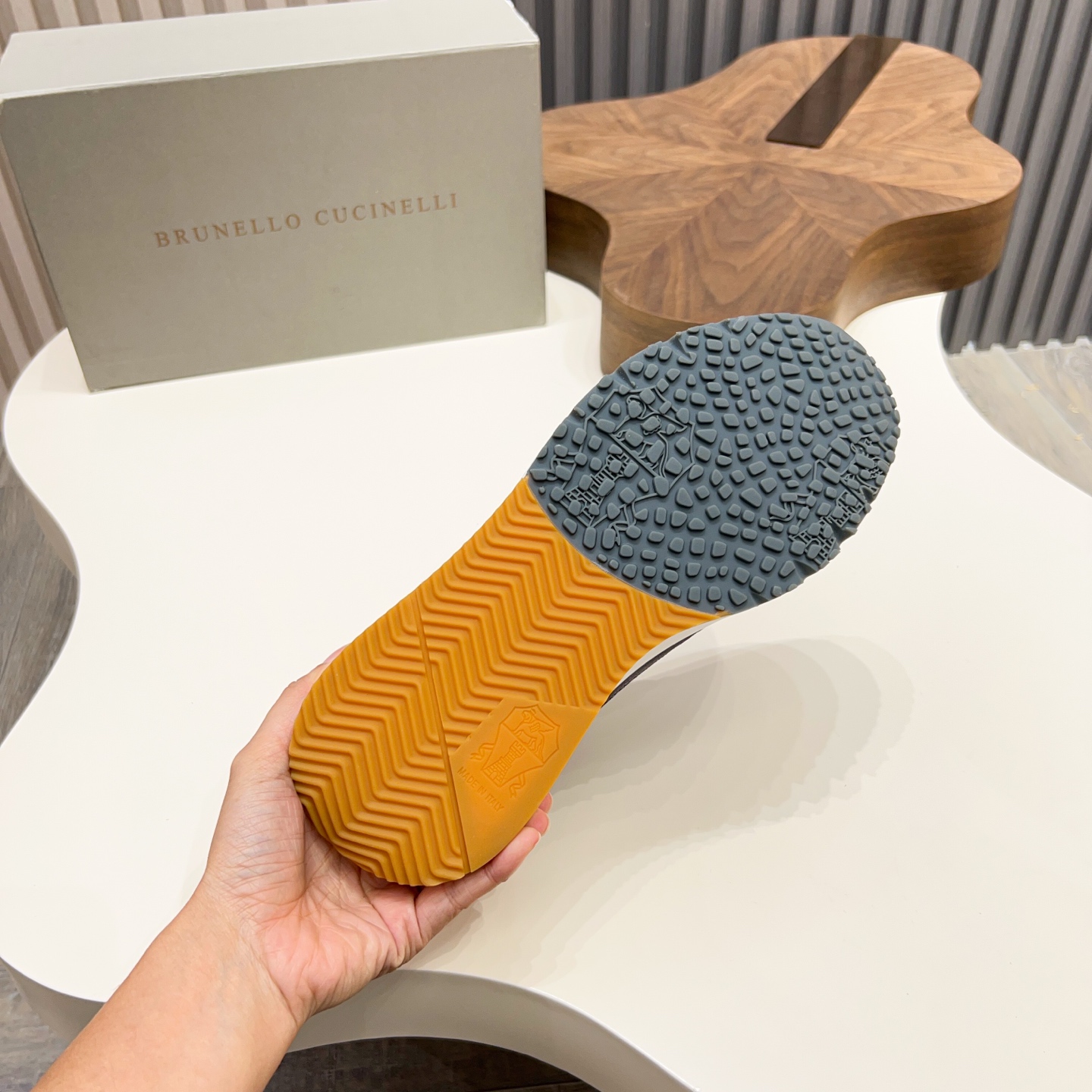 This shoes is AAAAA 1:1 quality (superb). Materials used are identical to the original ones. Brunello Cucinelli trademark marks are indistinguishable to the authentic. Photos take by actual shoes, what you receive will be 100% same with our photos.