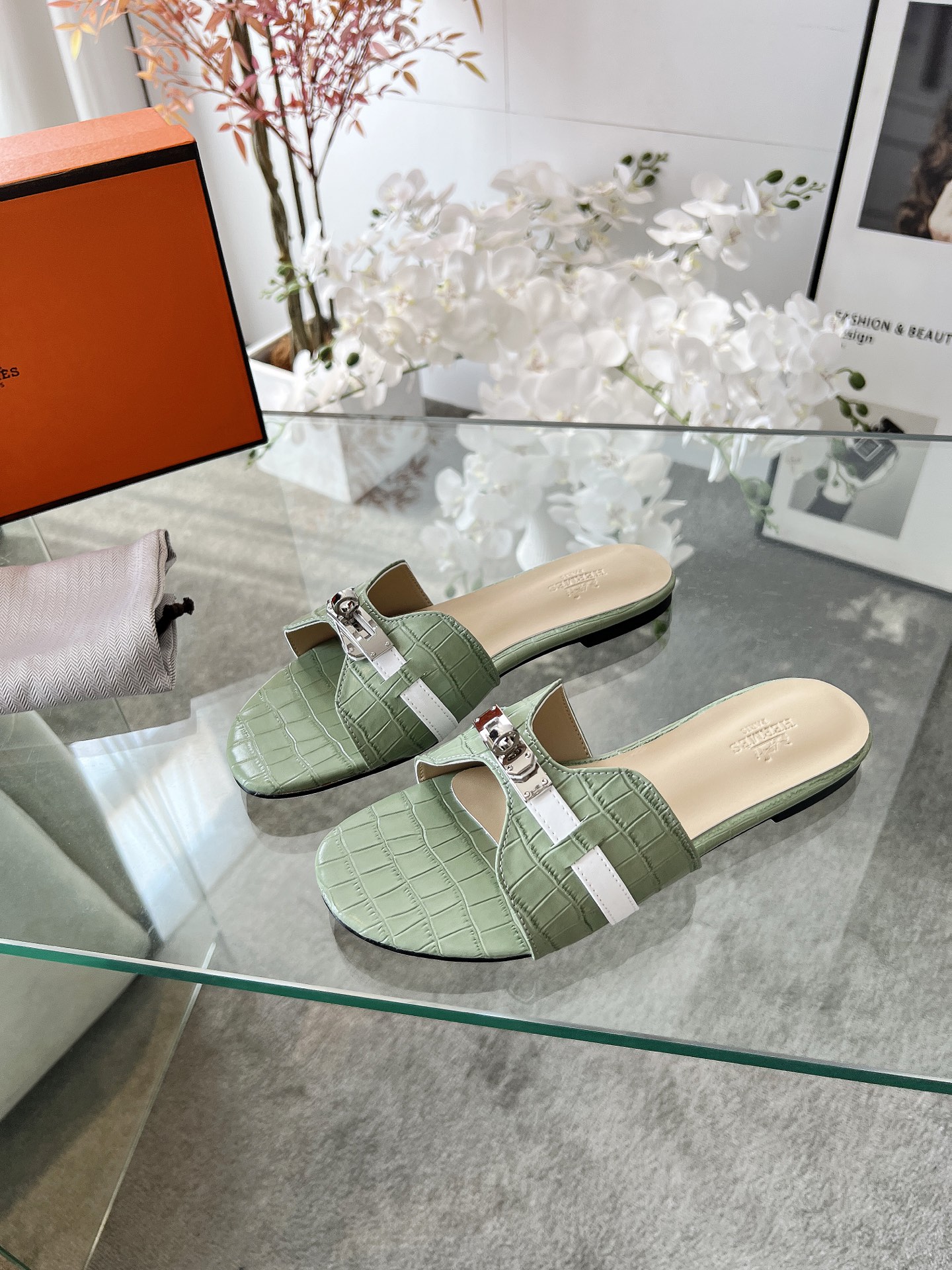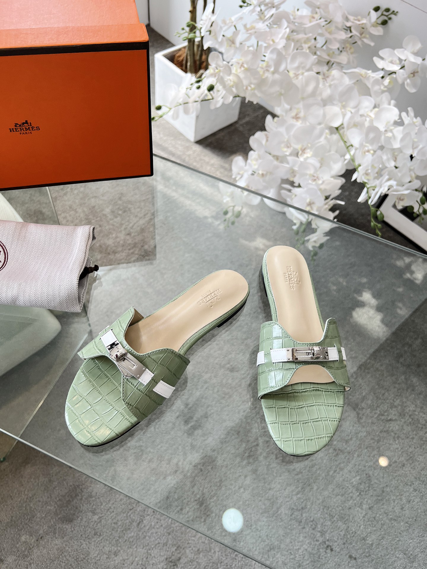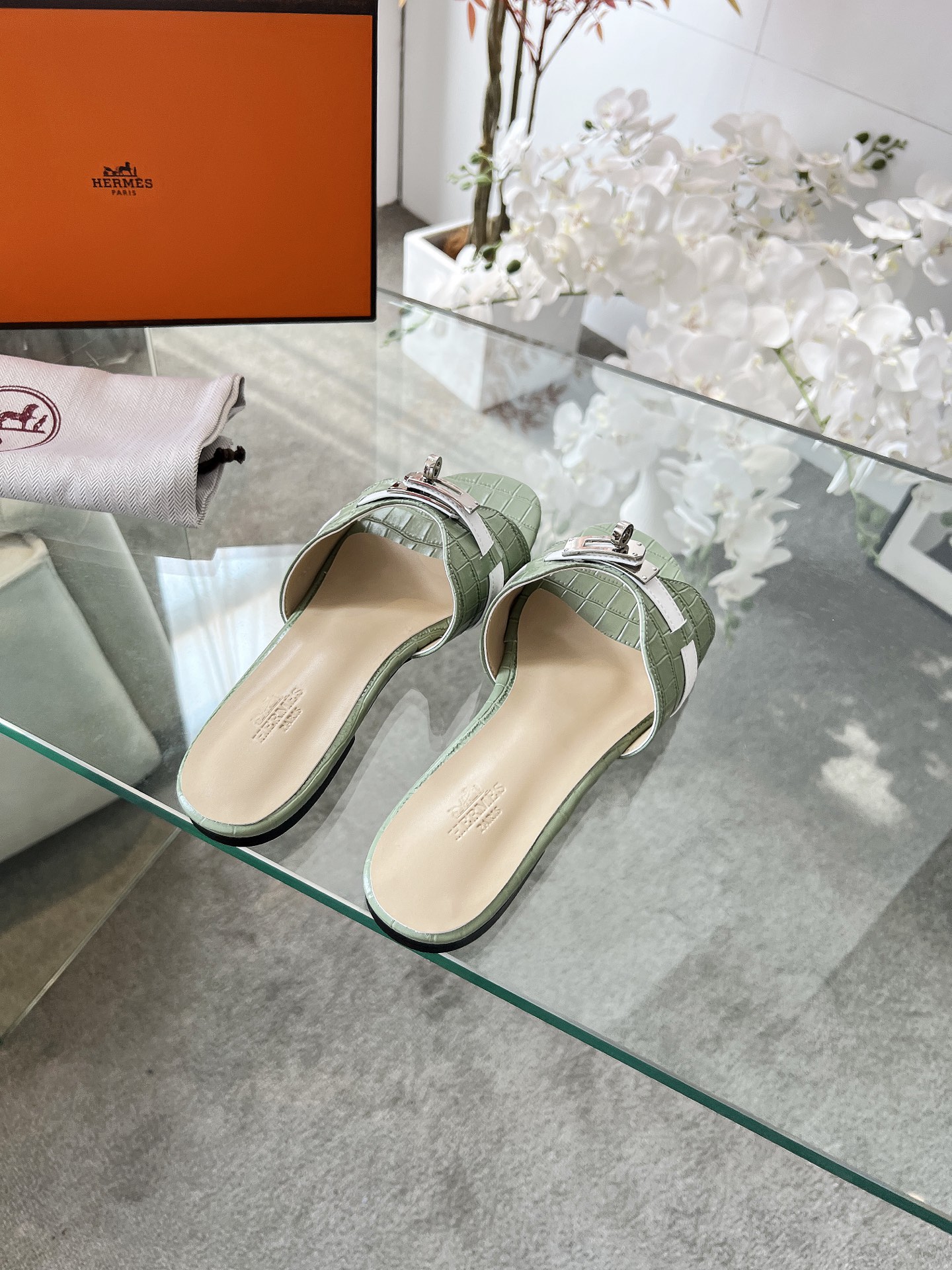 NO:3297546. The shoes is from Hermes designer.