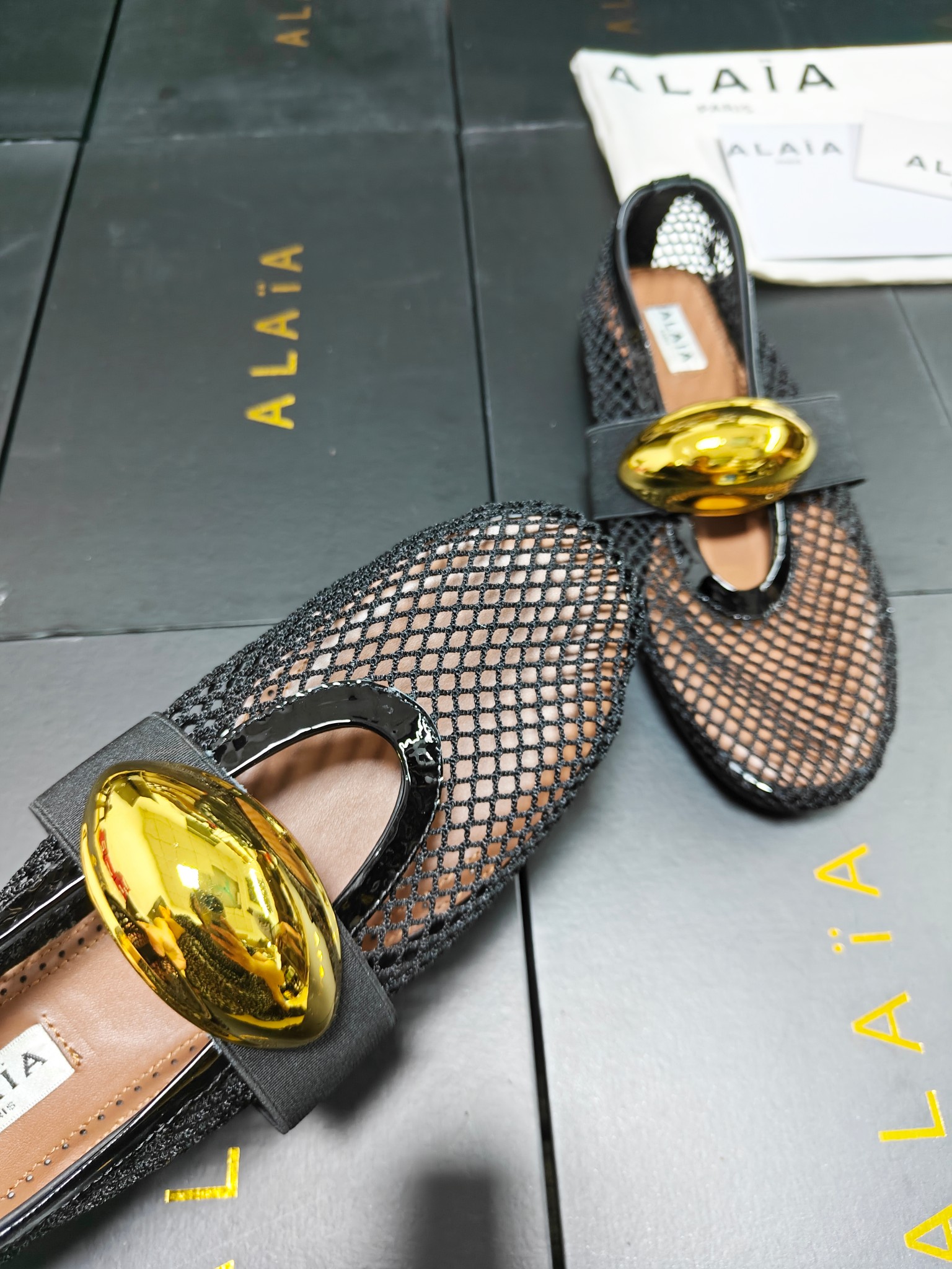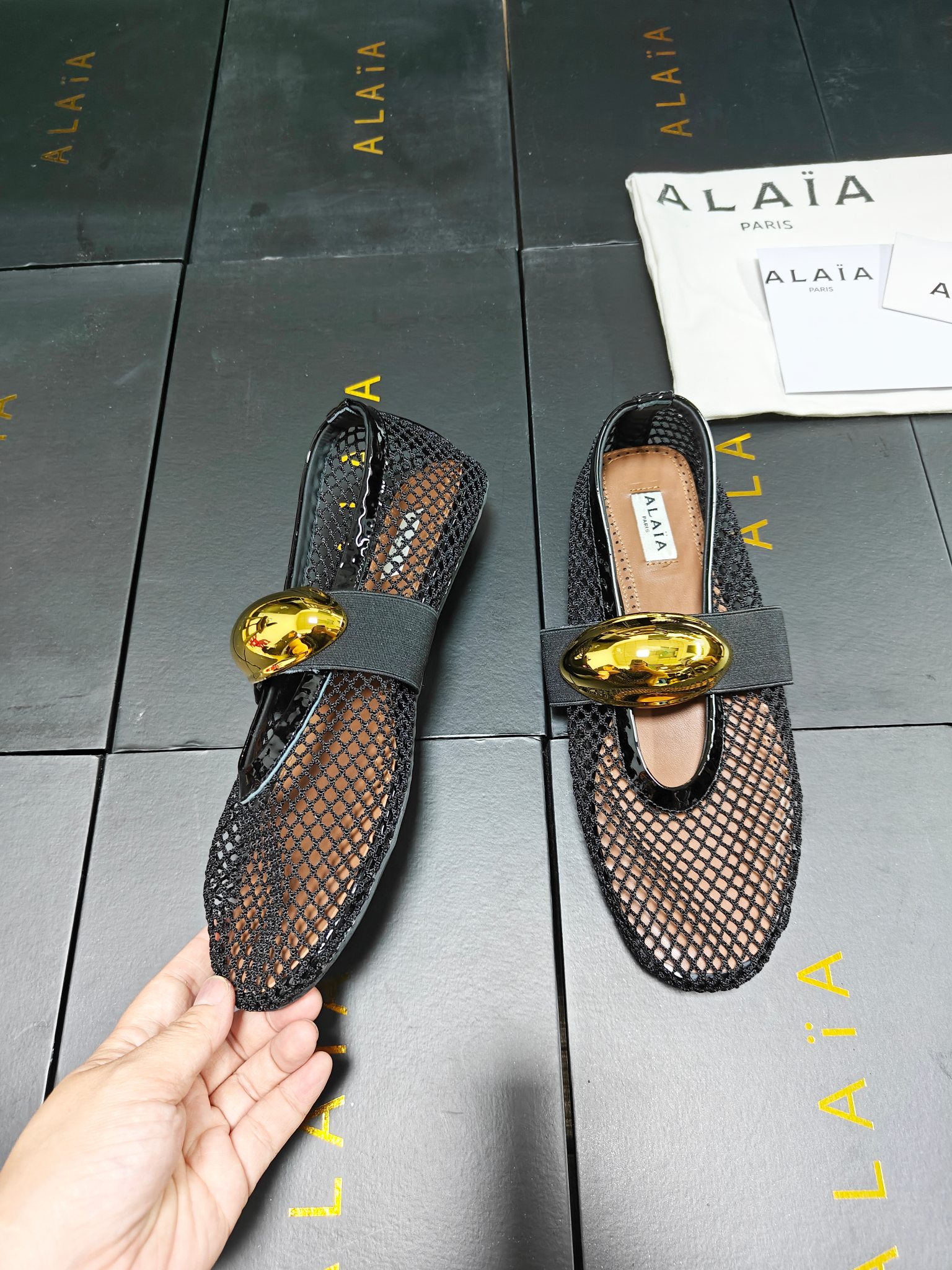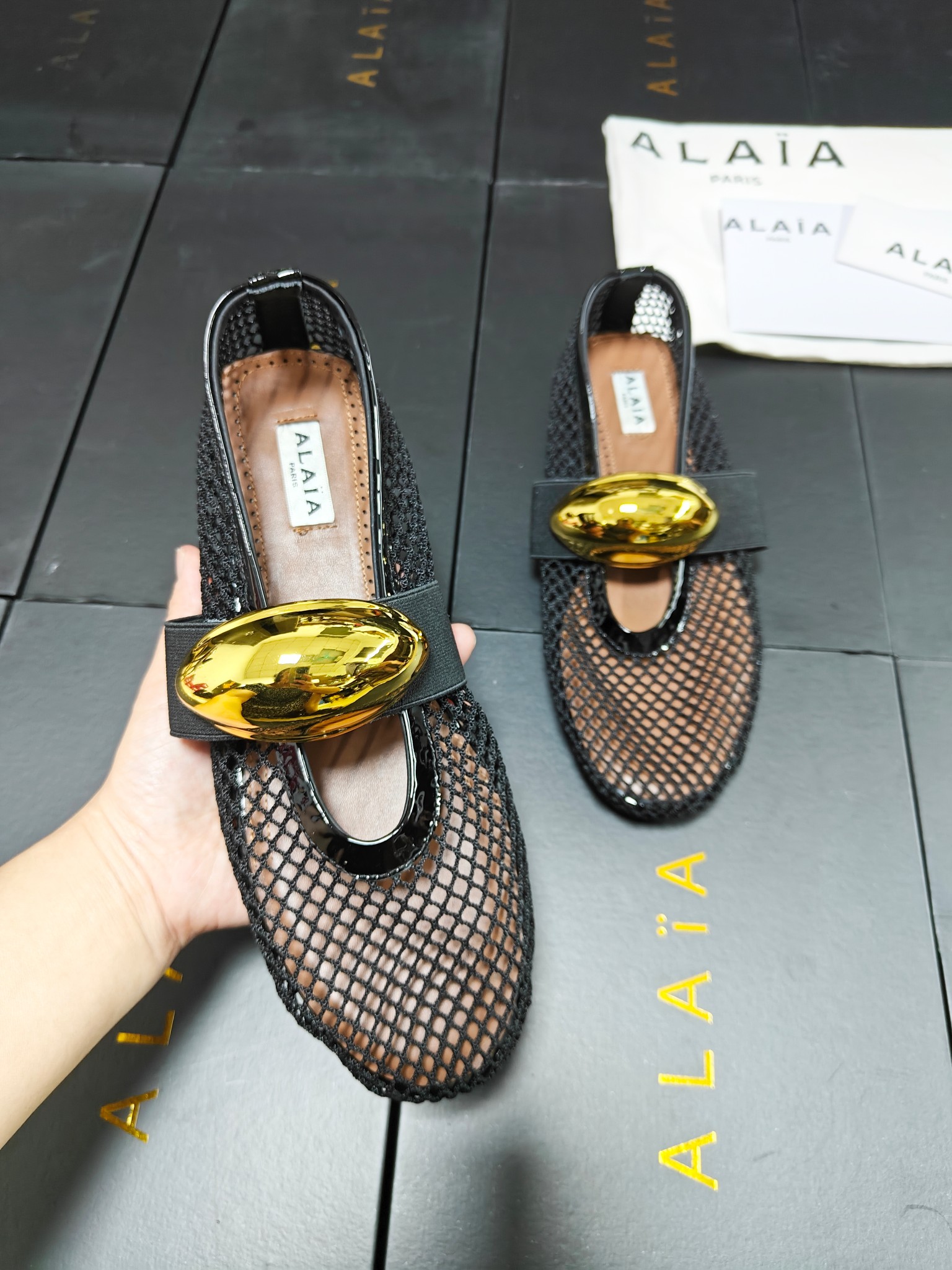 This shoes is AAAAA 1:1 quality (superb). Materials used are identical to the original ones. Alaia trademark marks are indistinguishable to the authentic. Photos take by actual shoes, what you receive will be 100% same with our photos.