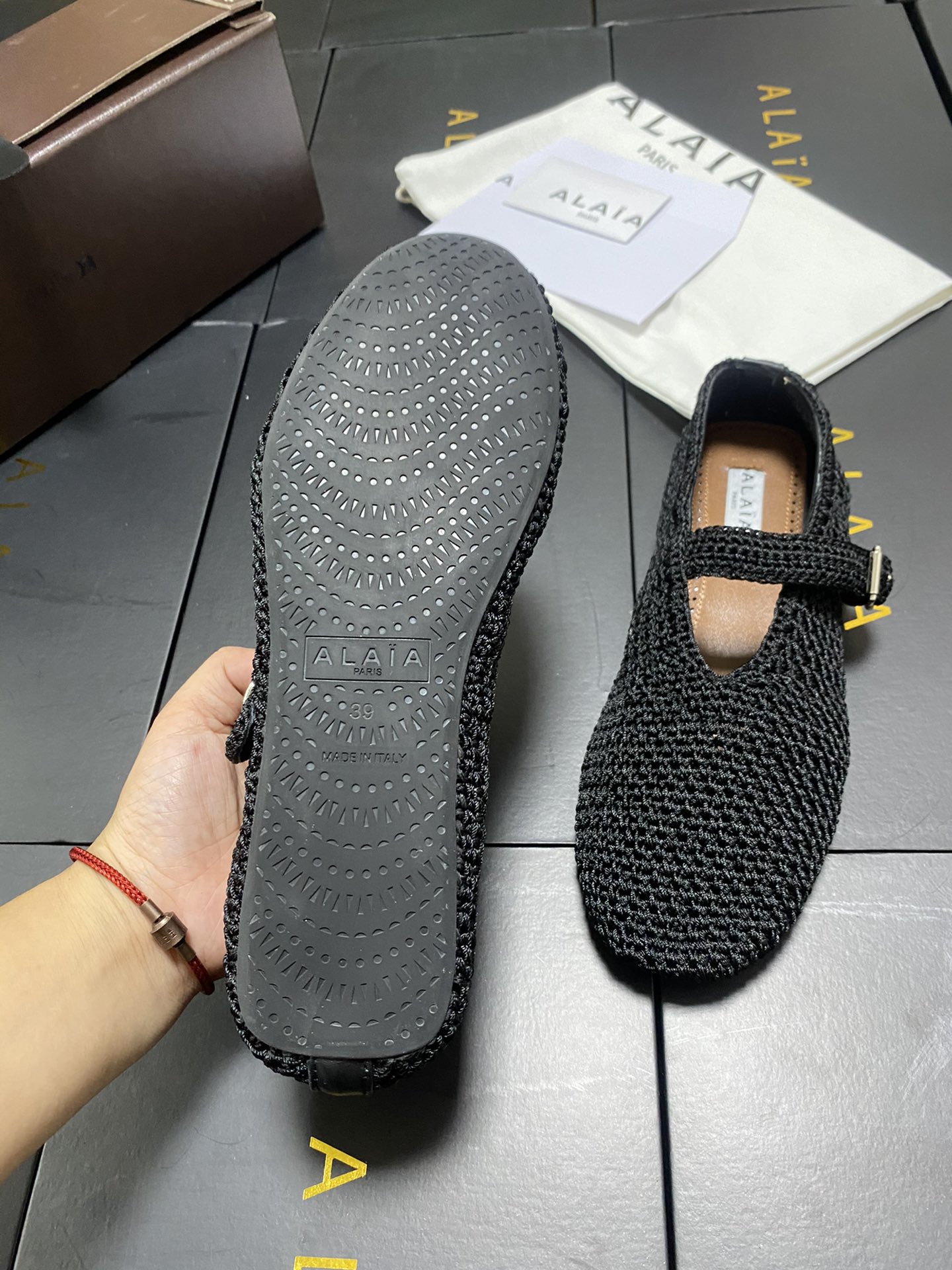 This shoes is AAAAA 1:1 quality (superb). Materials used are identical to the original ones. Alaia trademark marks are indistinguishable to the authentic. Photos take by actual shoes, what you receive will be 100% same with our photos.