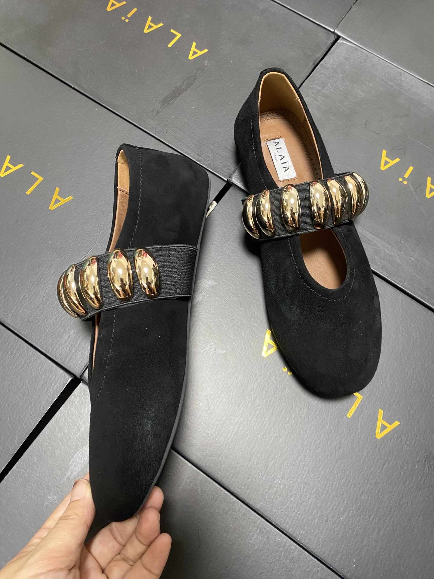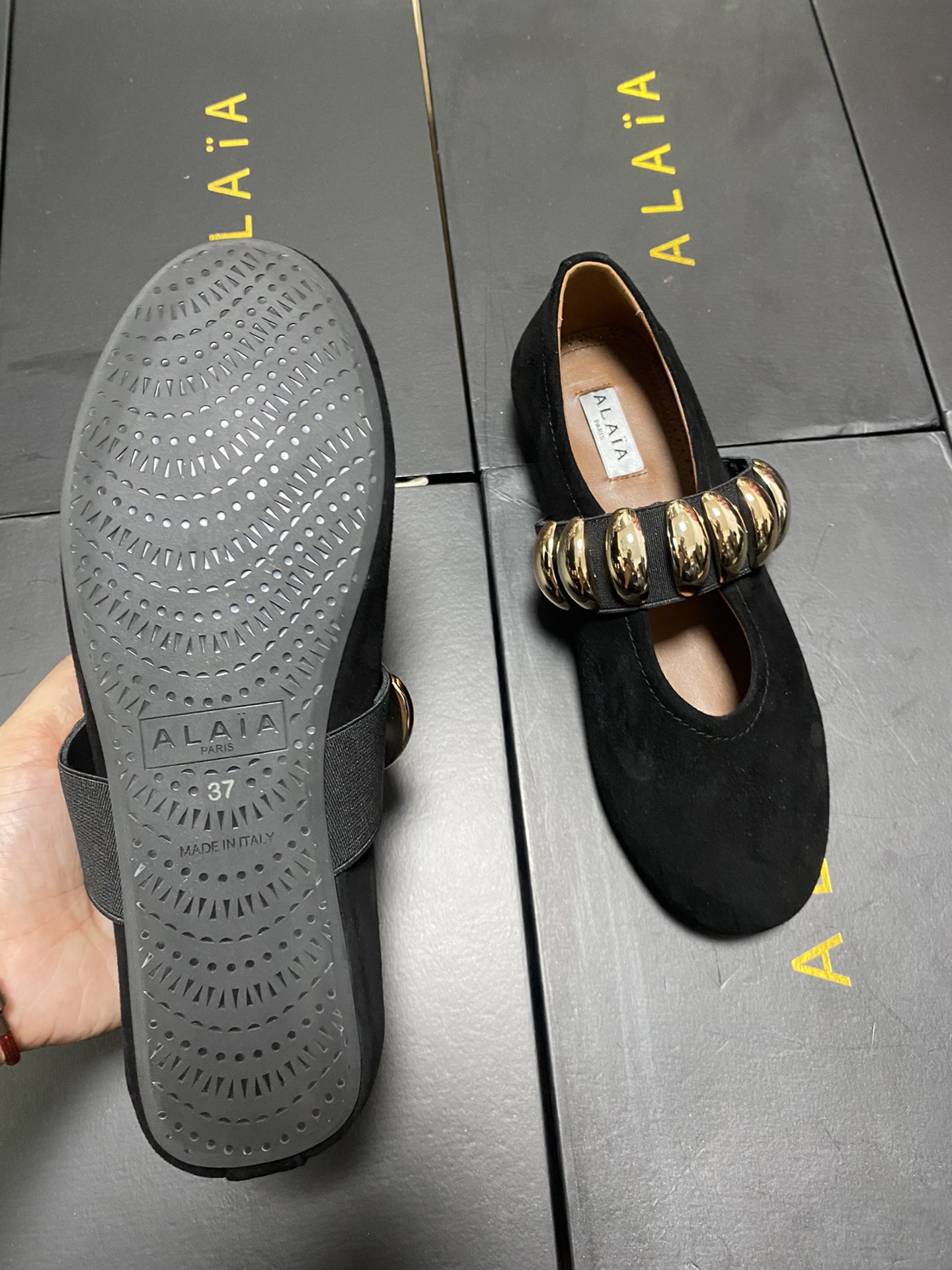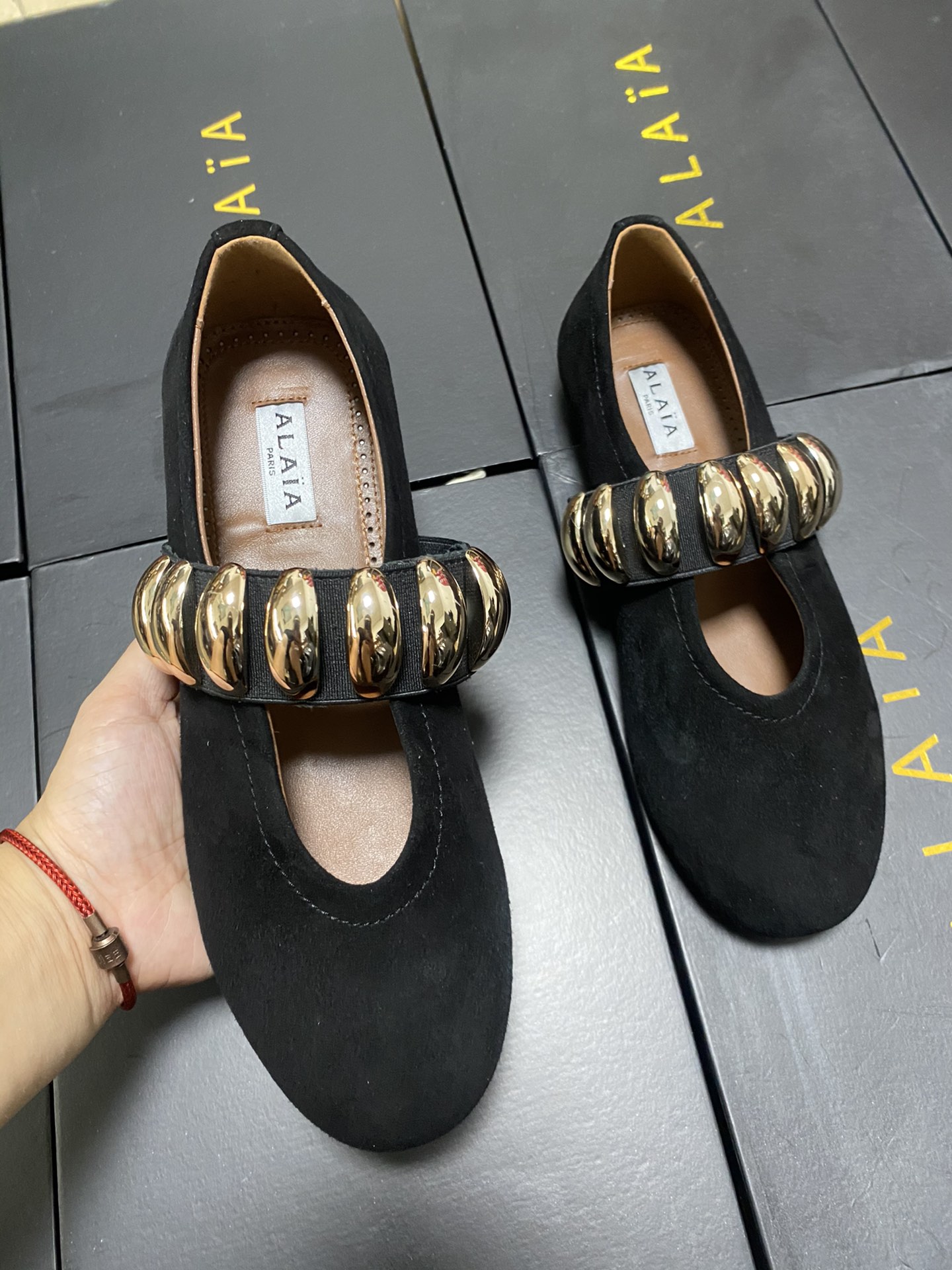This shoes is AAAAA 1:1 quality (superb). Materials used are identical to the original ones. Alaia trademark marks are indistinguishable to the authentic. Photos take by actual shoes, what you receive will be 100% same with our photos.