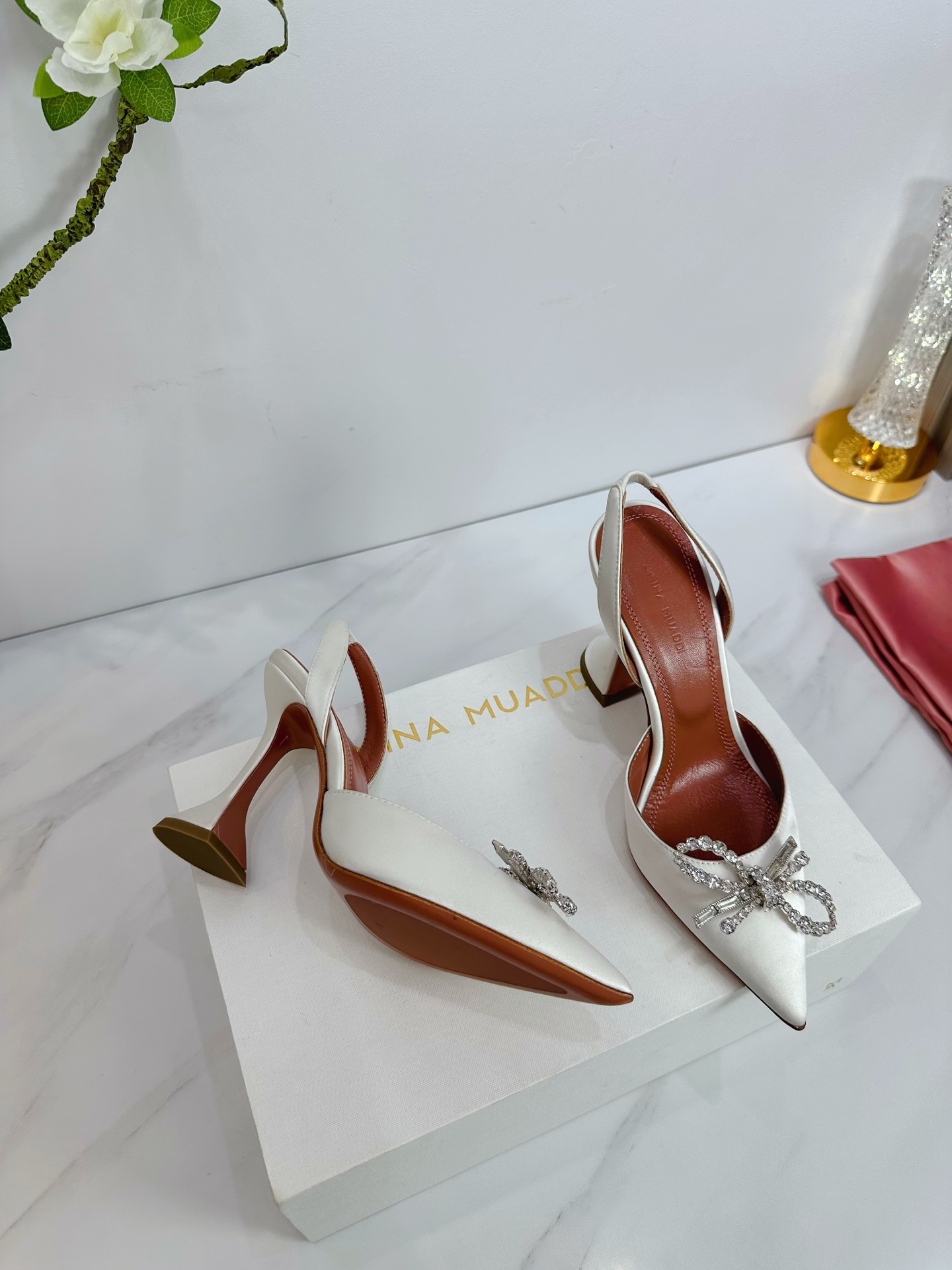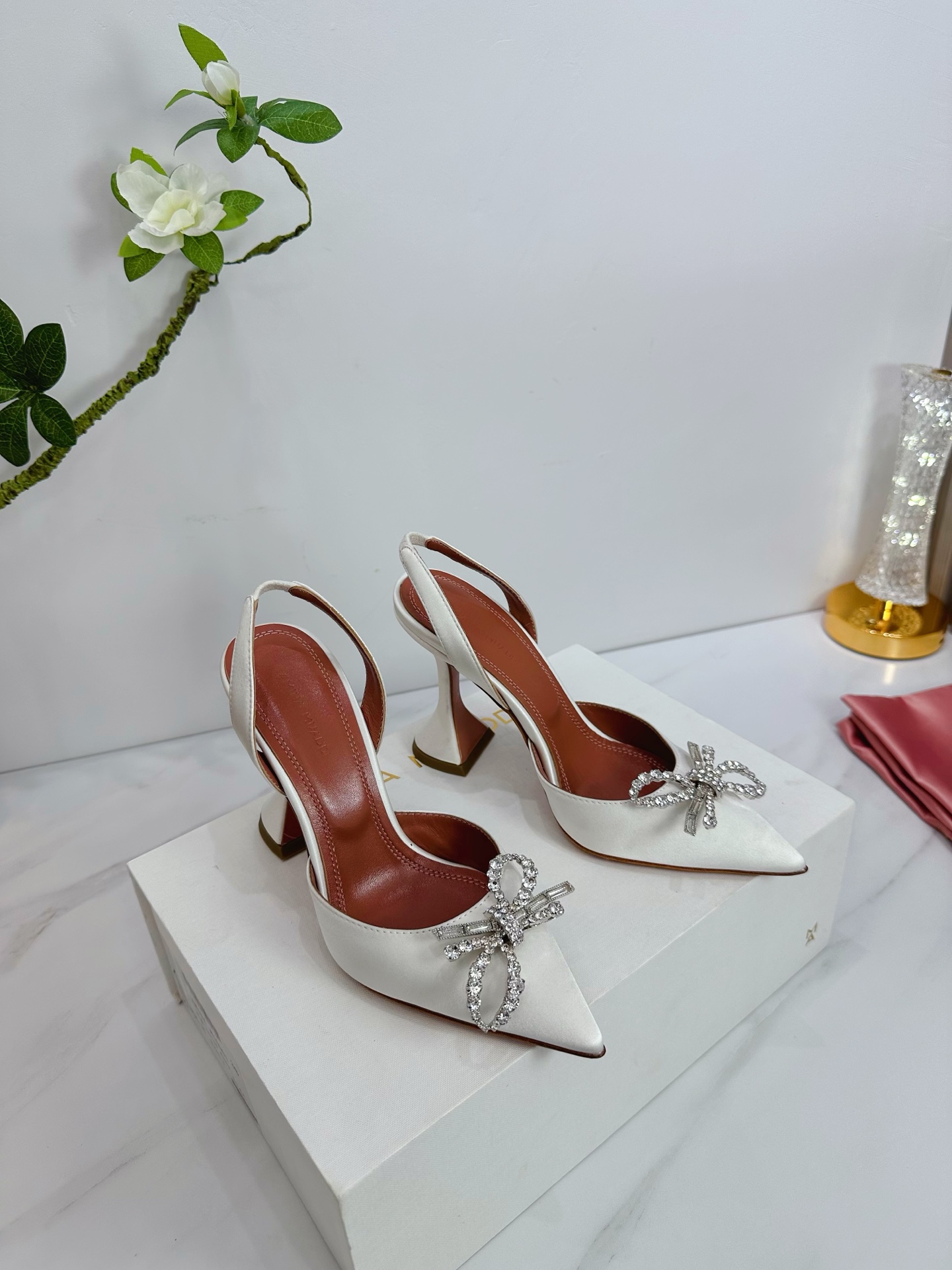This shoes is AAAAA 1:1 quality (superb). Materials used are identical to the original ones. Amina Muaddi trademark marks are indistinguishable to the authentic. Photos take by actual shoes, what you receive will be 100% same with our photos.