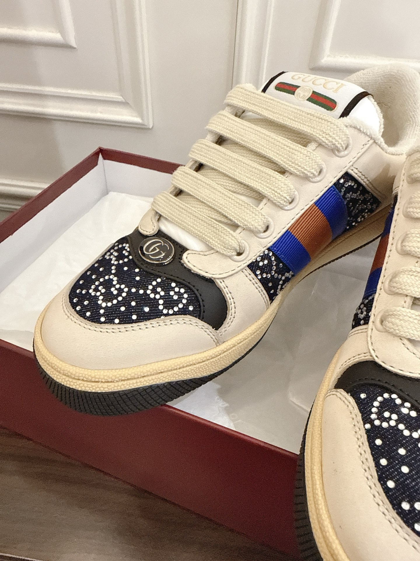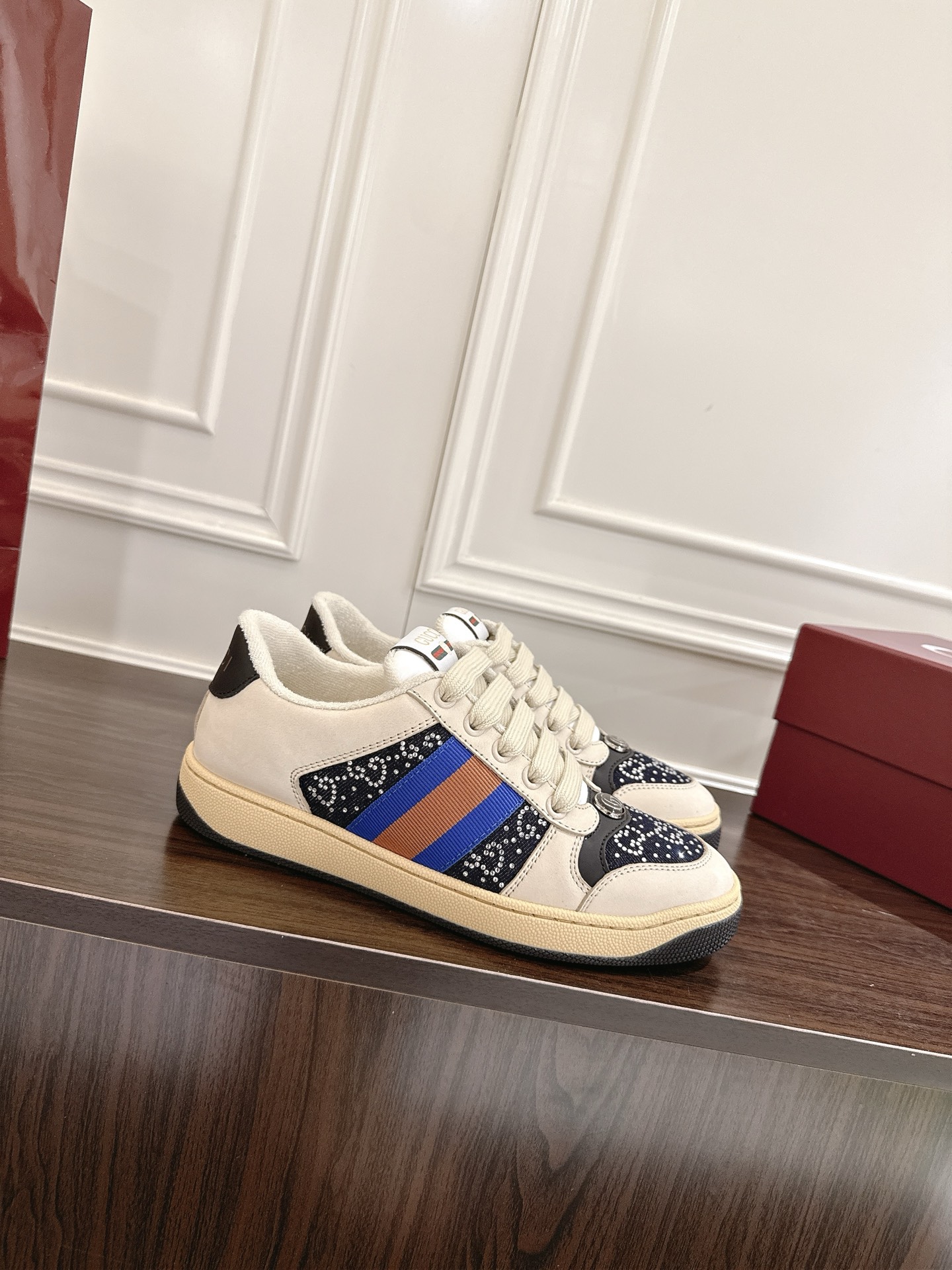 This shoes is AAAAA 1:1 quality (superb). Materials used are identical to the original ones. Gucci trademark marks are indistinguishable to the authentic. Photos take by actual shoes, what you receive will be 100% same with our photos.