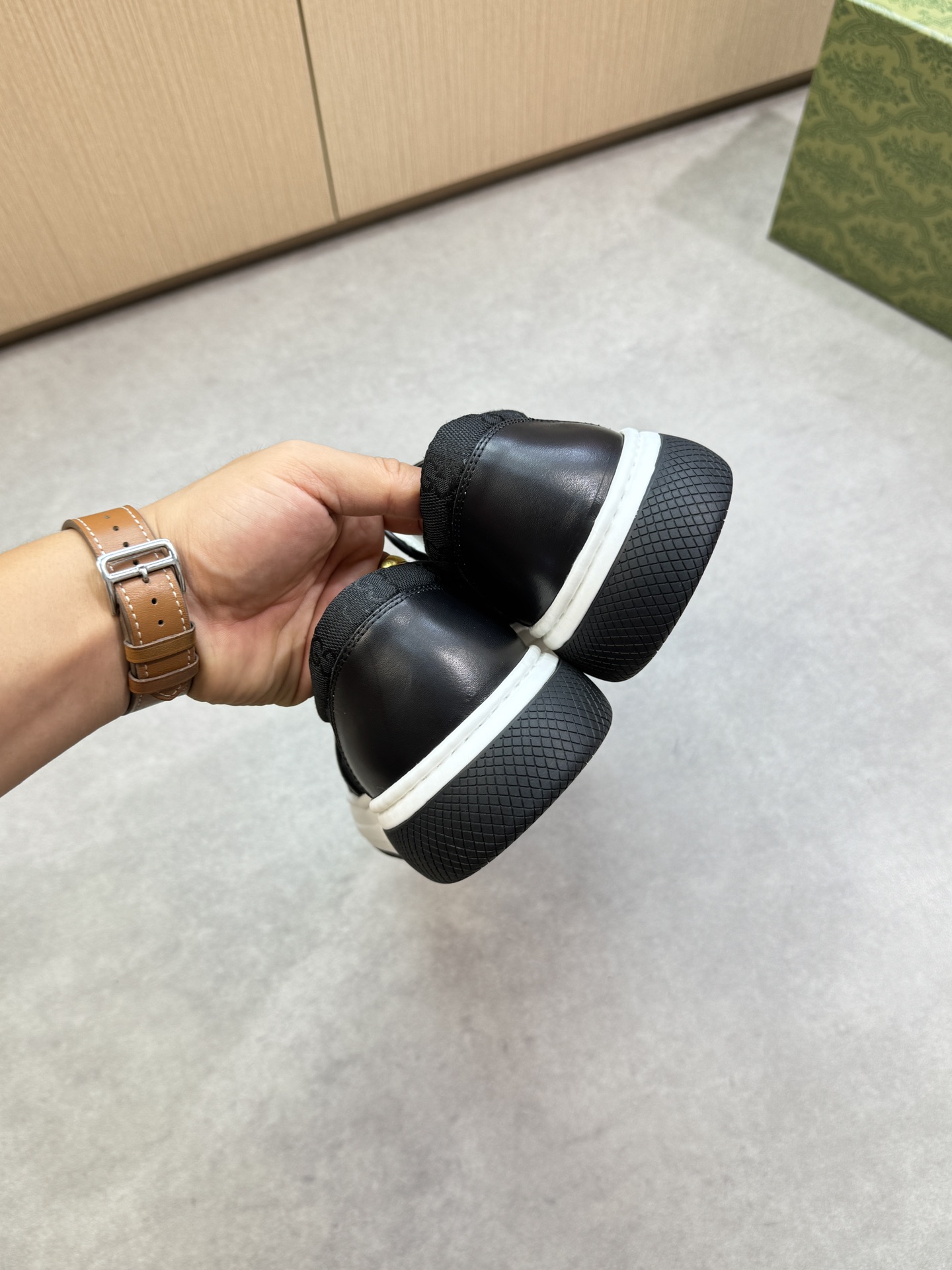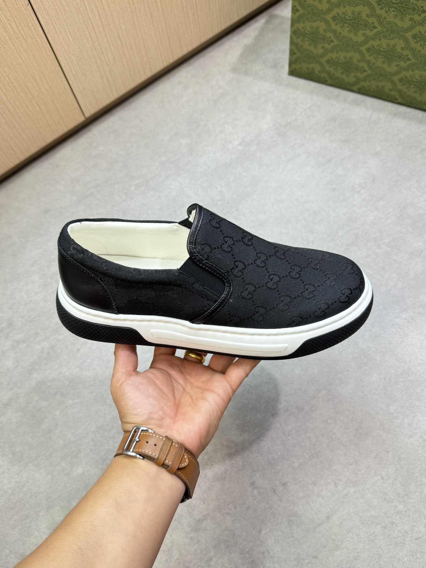 This shoes is AAAAA 1:1 quality (superb). Materials used are identical to the original ones. Gucci trademark marks are indistinguishable to the authentic. Photos take by actual shoes, what you receive will be 100% same with our photos.