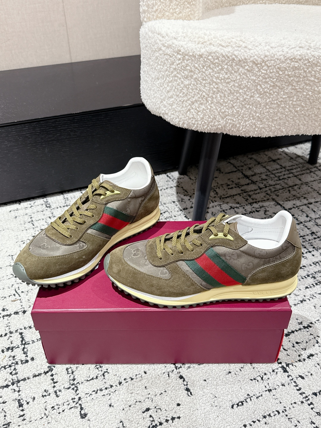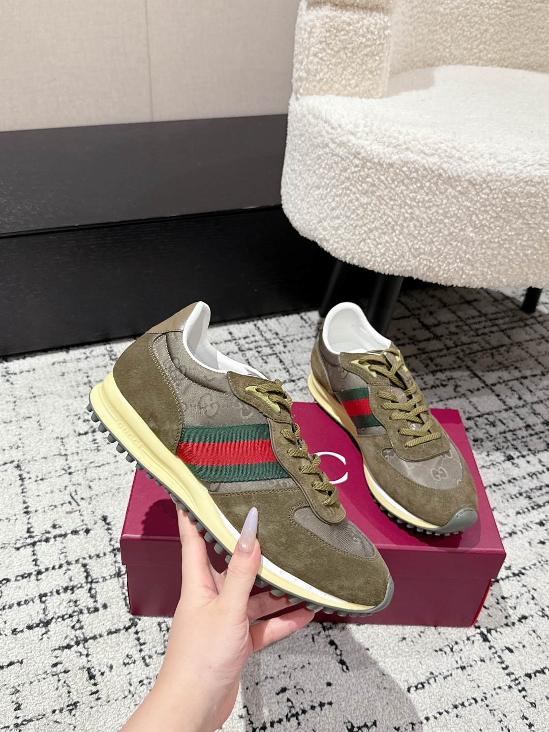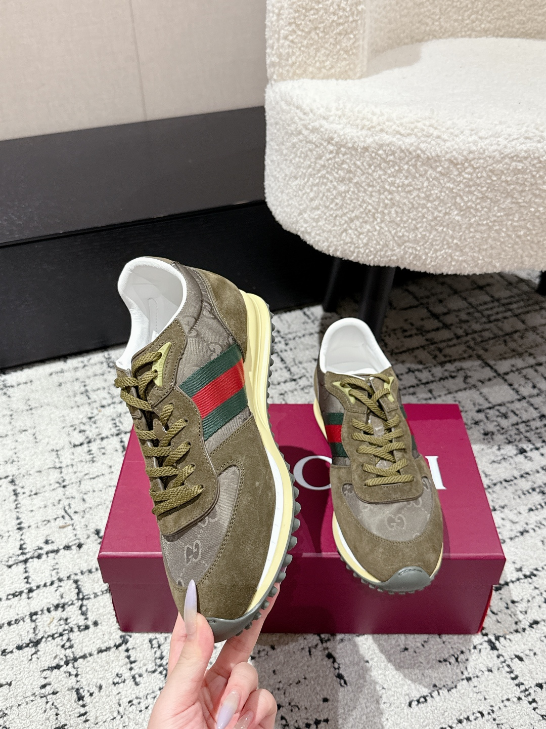 This shoes is AAAAA 1:1 quality (superb). Materials used are identical to the original ones. Gucci trademark marks are indistinguishable to the authentic. Photos take by actual shoes, what you receive will be 100% same with our photos.