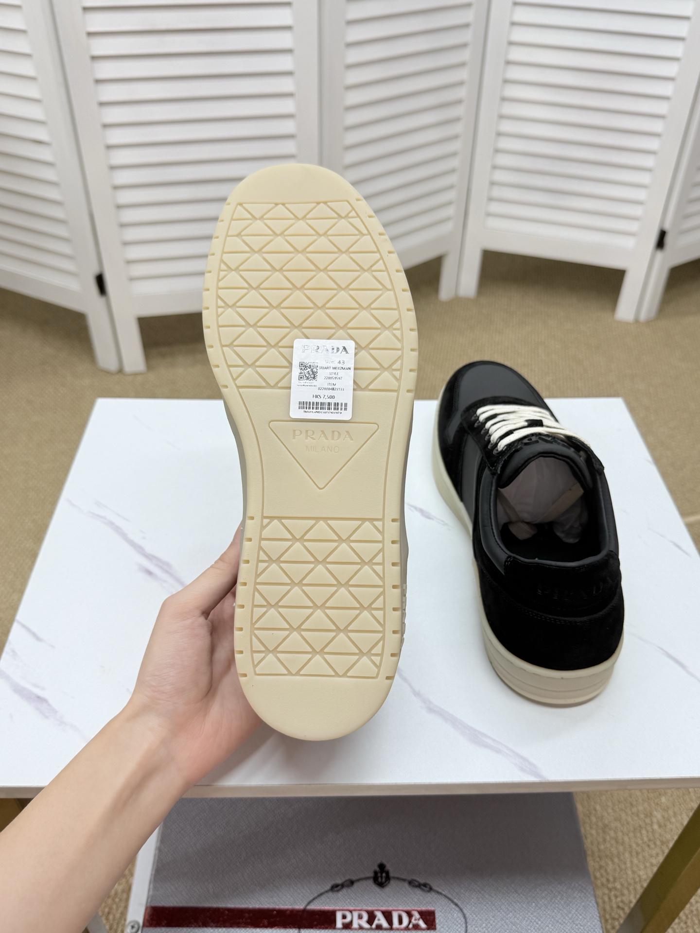 This shoes is AAAAA 1:1 quality (superb). Materials used are identical to the original ones. Prada trademark marks are indistinguishable to the authentic. Photos take by actual shoes, what you receive will be 100% same with our photos.