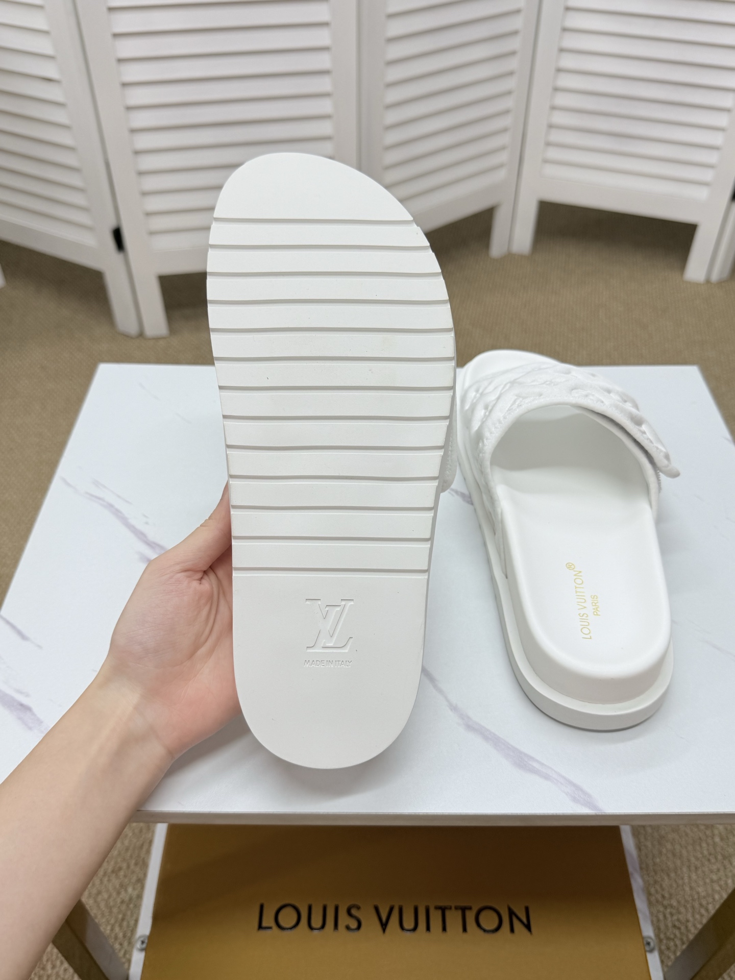 This shoes is AAAAA 1:1 quality (superb). Materials used are identical to the original ones. Louis Vuitton trademark marks are indistinguishable to the authentic. Photos take by actual shoes, what you receive will be 100% same with our photos.