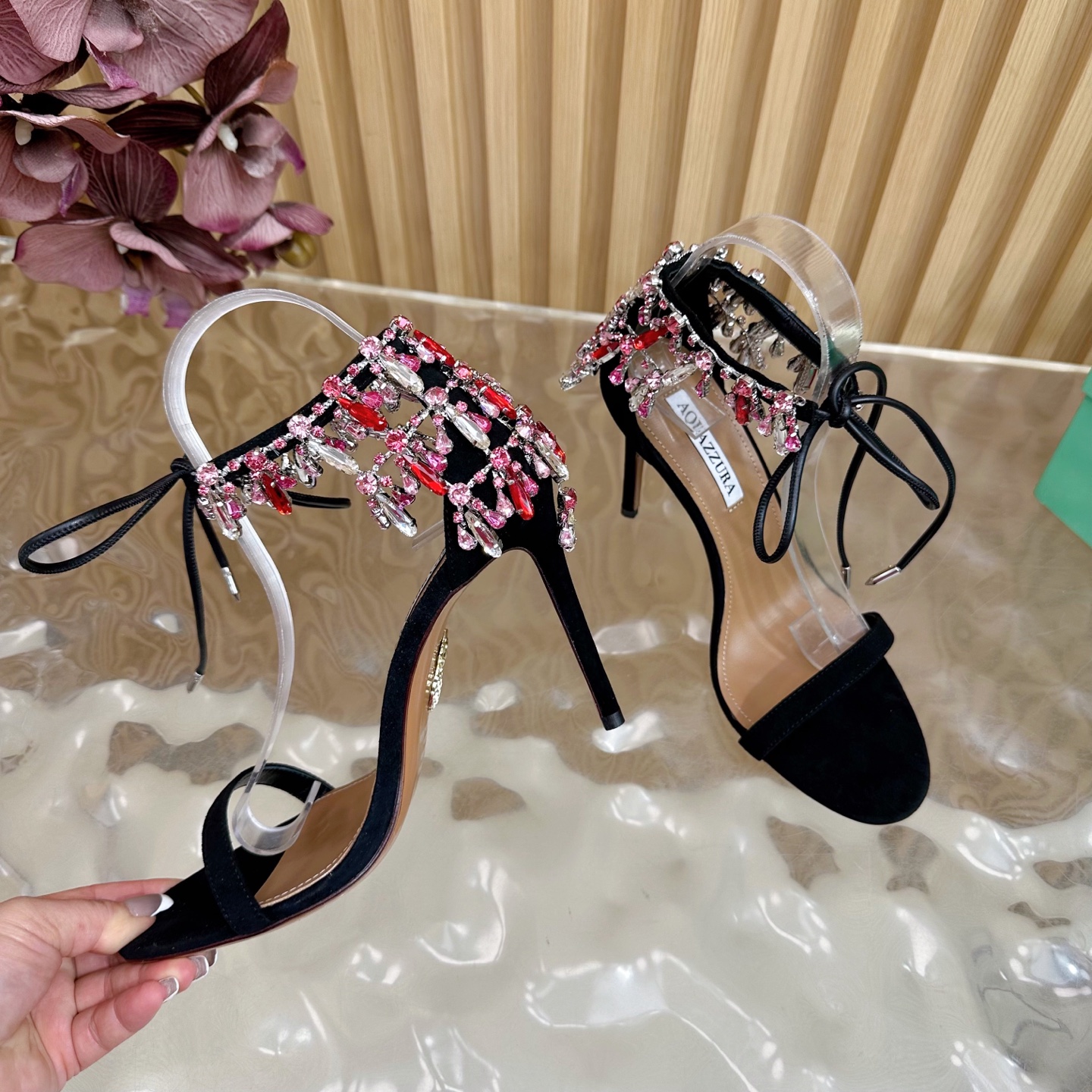 This shoes is AAAAA 1:1 quality (superb). Materials used are identical to the original ones. Aquazzura trademark marks are indistinguishable to the authentic. Photos take by actual shoes, what you receive will be 100% same with our photos.