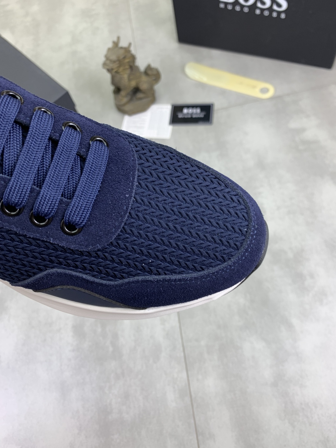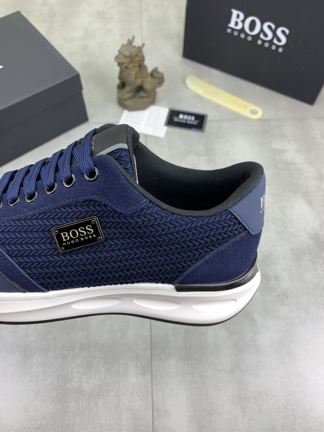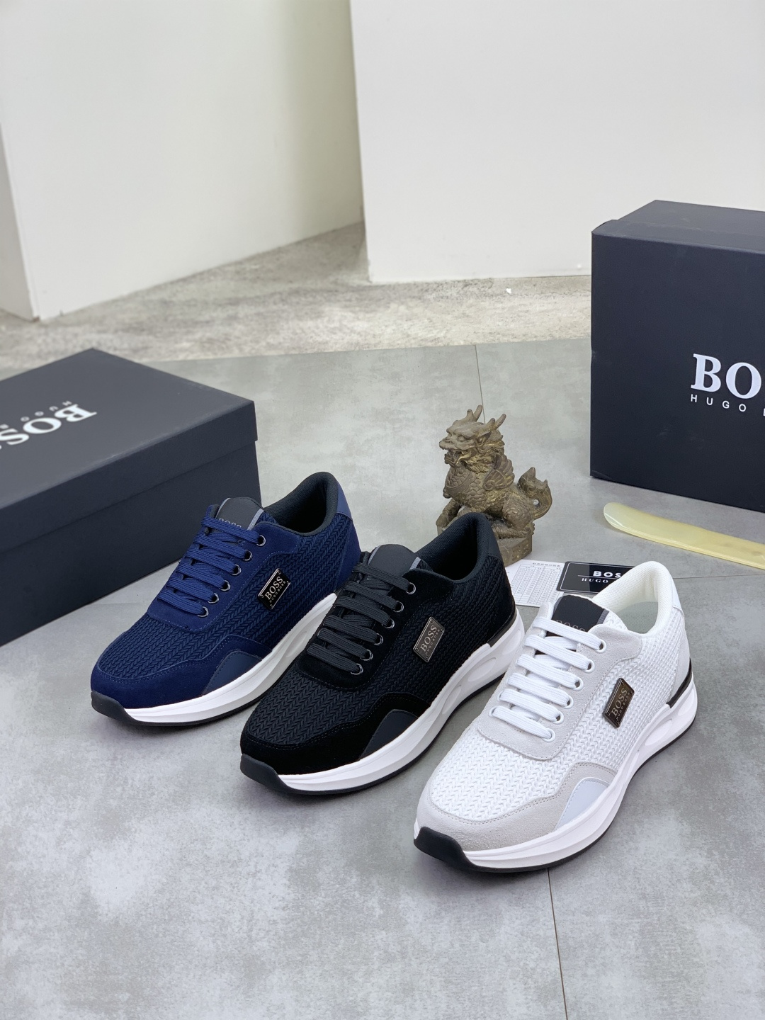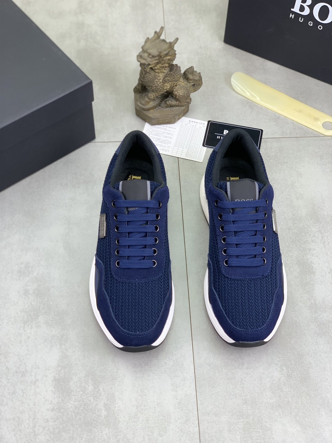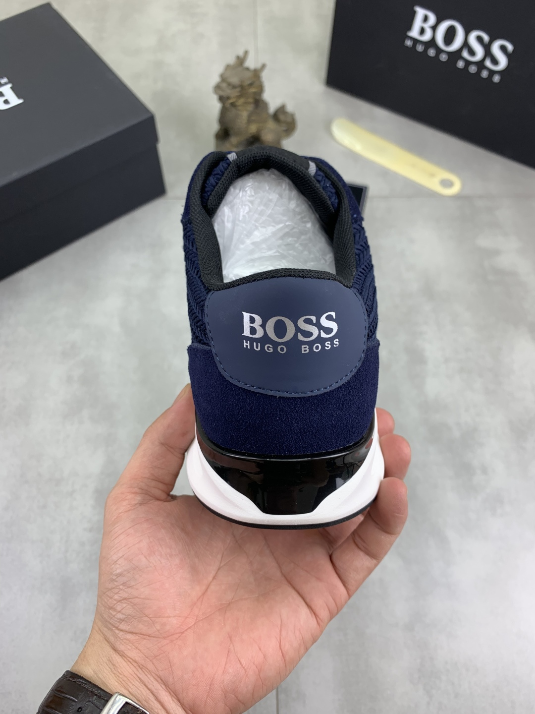 This shoes is AAAAA 1:1 quality (superb). Materials used are identical to the original ones. BOSS trademark marks are indistinguishable to the authentic. Photos take by actual shoes, what you receive will be 100% same with our photos.